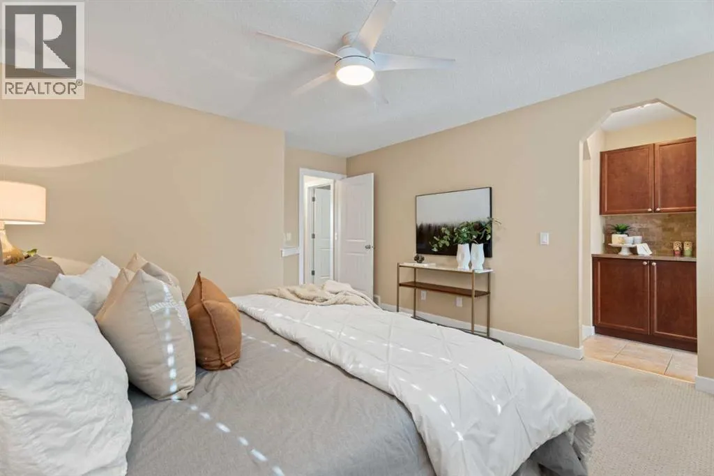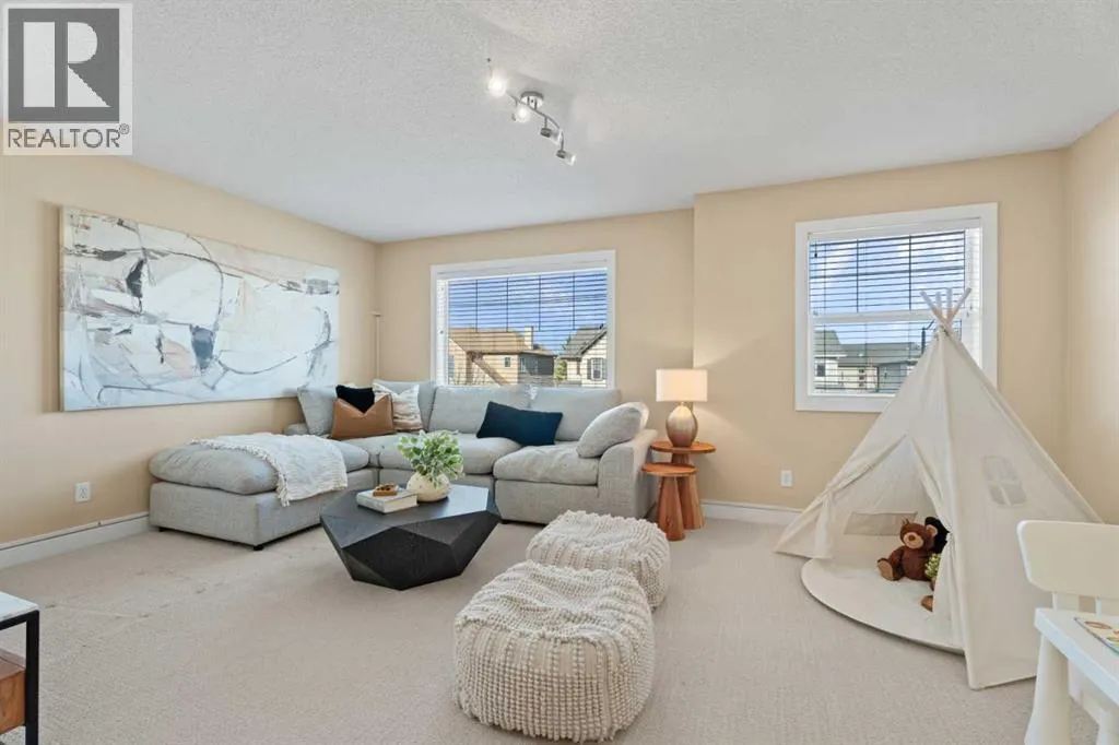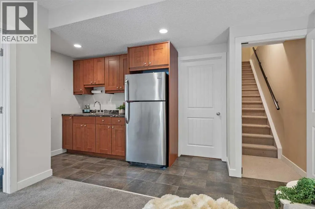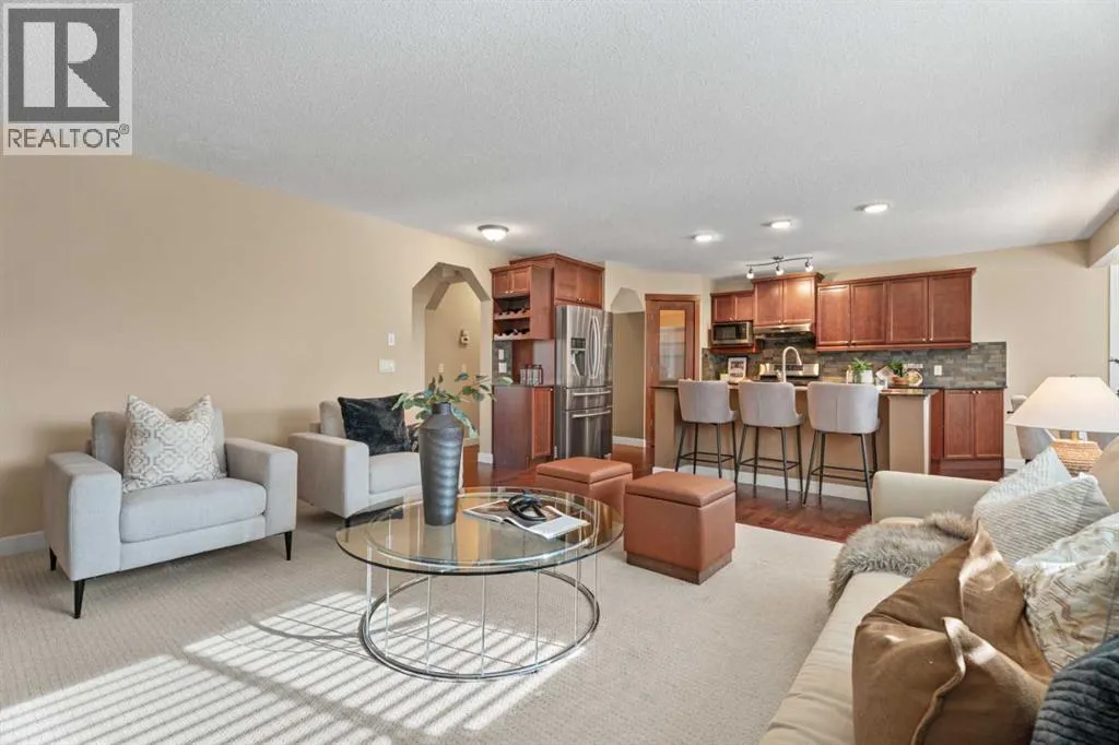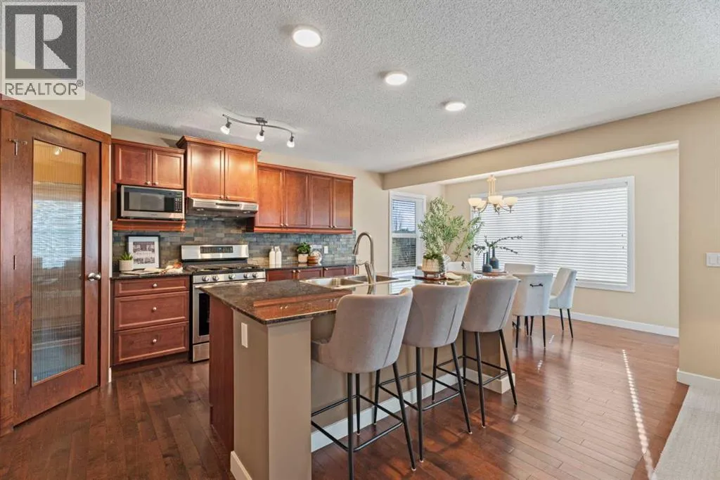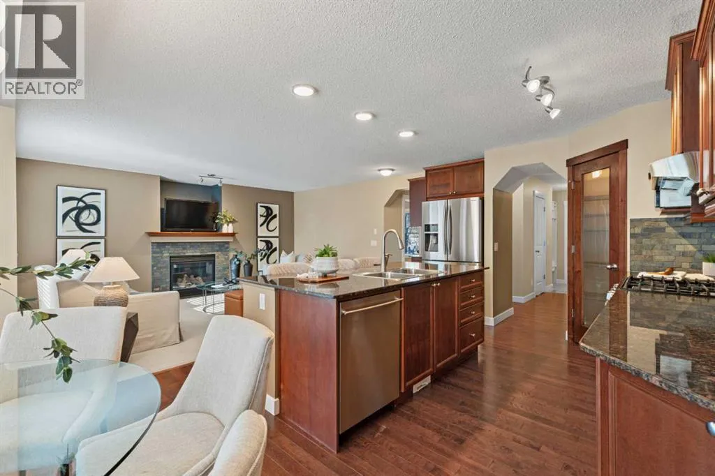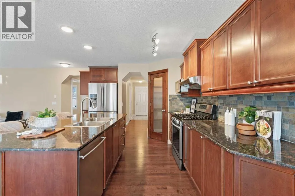*Open House Saturday, March 28, 3-4 pm* Welcome to this beautifully maintained 2174 sqft two-storey walkout in one of the most sought-after neighbourhoods in Okotoks, close to schools and amenities. This 4 bed, 3.5 bath home with air conditioning offers a great functional layout and a professionally landscaped, private yard. The open-concept main floor features an awesome chef's kitchen with granite countertops, solid wood cabinetry, stainless steel appliances, a gas stove, and a large corner pantry with ample storage! The kitchen island has room for a few kids to eat their breakfast at, its open to the kitchen table nook and has a really cozy living room, with the fireplace as the main focal point, all overlooking the beautifully landscaped, west-facing backyard. Upstairs, youâll find a spacious bonus room, central den area(great for computer desk and for doing homework), large upper laundry room, and three generous sized bedrooms. The large primary bedroom has a huge walk-in closet, a versatile coffee/juice bar with counter & cabinet, and a massive ensuite with a soaker tub, double sinks, and a stand-alone shower. The fully finished walkout basement provides a bright, private living space ideal for extended family or guests, complete with a kitchenette, fridge, carpet and heated tiles, 2nd large primary bedroom, and a full bathroom ensuite with a shower. Outside, enjoy a private, west-facing yard with mature trees, a gas fire pit with a granite surround included, and backing onto the main pathway system in Okotoks, walk or bike anywhere from here. Located close to parks, schools, off-leash areas, and more, this is a perfect family home in Drake Landing. (id:27476)