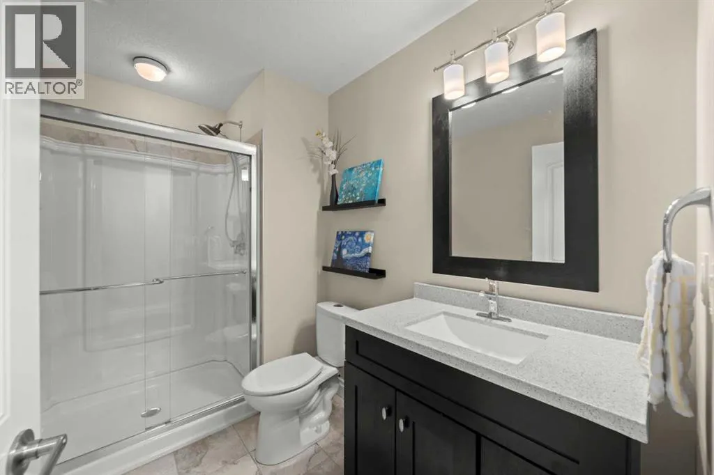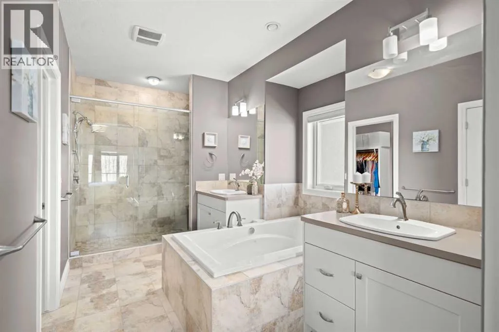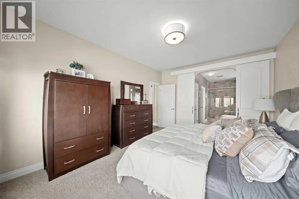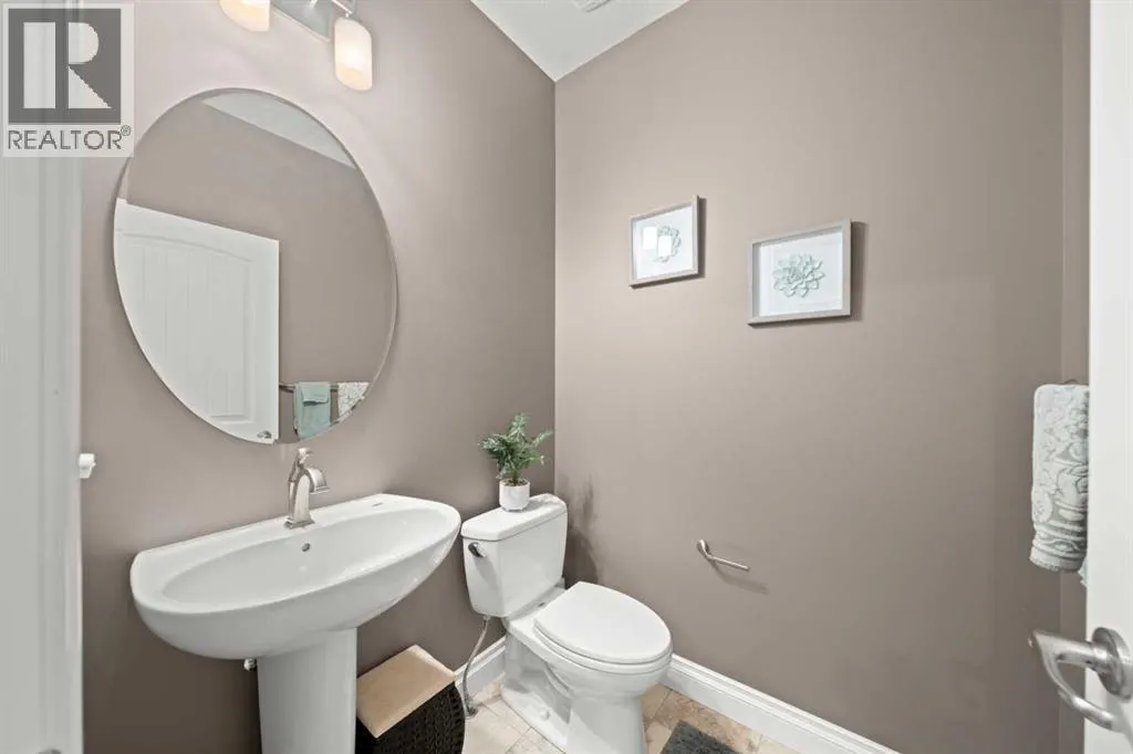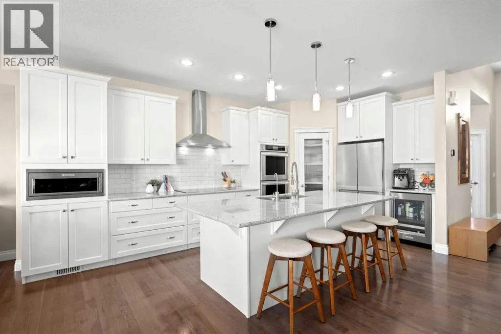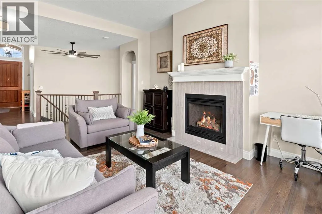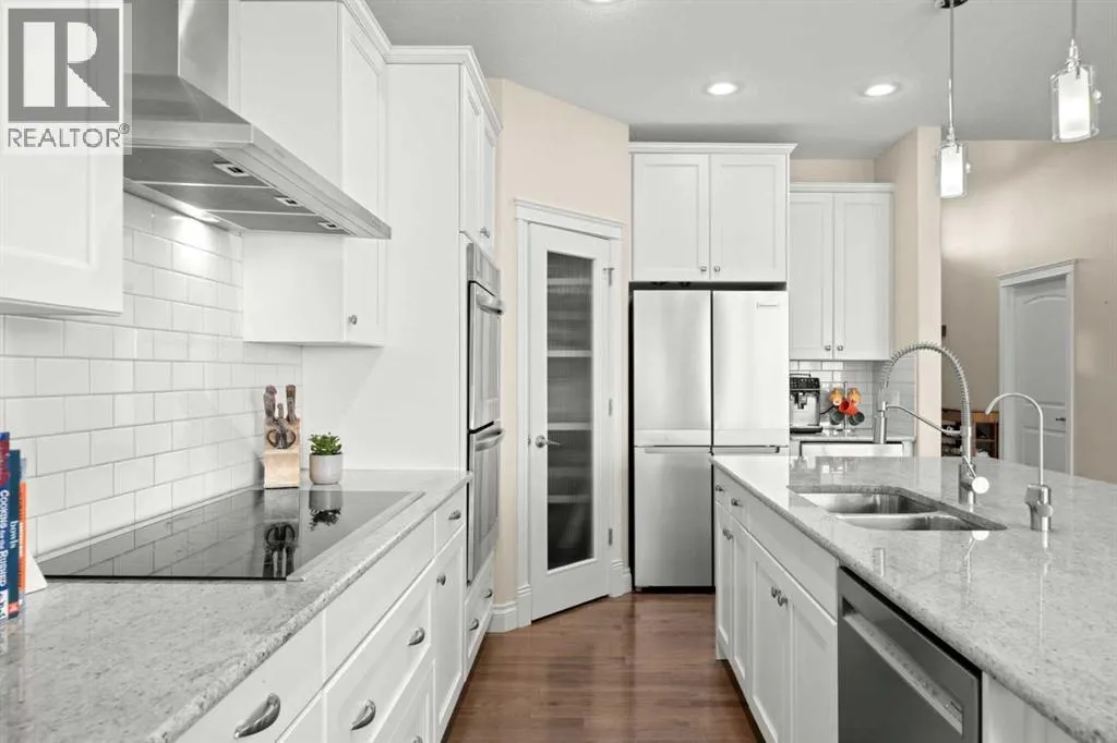 Welcome to a home that just feels right the moment you walk in.Tucked quietly into a cul de sac in Air Ranch, this beautifully maintained walkout bungalow offers a sense of ease and comfort that is felt in every space. From the warm hardwood floors underfoot to the natural light that fills the main living area, this home invites you to slow down and stay awhile.The kitchen naturally becomes the heart of the home, with a generous island where morning coffees turn into after school catch ups and evenings flow seamlessly into time with family and friends. Just beyond, the living space opens onto a full width upper deck, perfect for quiet mornings, summer evenings, and everything in between.And then there is the walkout level, a true extension of the home.With two spacious bedrooms, a full bathroom, and a large inviting rec room, it creates the perfect retreat for teens to call their own. Movie nights, study space, and friends coming and going with the ease of direct access to the backyard. The included Murphy bed adds flexibility for guests or a home office when needed.Step outside to a covered patio and a beautifully sized pie shaped lot where life flows effortlessly indoors and out. It is easy to imagine long summer evenings, kids moving freely, and quiet moments under the stars.This home also offers thoughtful upgrades that make everyday living that much better, including permanent exterior gemstone lighting that adds year round ambiance, air conditioning for warm summer days, irrigation to keep the yard looking its best, and a water softener for added comfort.An oversized garage provides plenty of room for vehicles, storage, or hobbies.Move in ready and designed for real life, this is a home where families grow, where teens have space to thrive, and where everyday moments feel just a little more special.Welcome to 20 Ranchers Green. (id:27476)