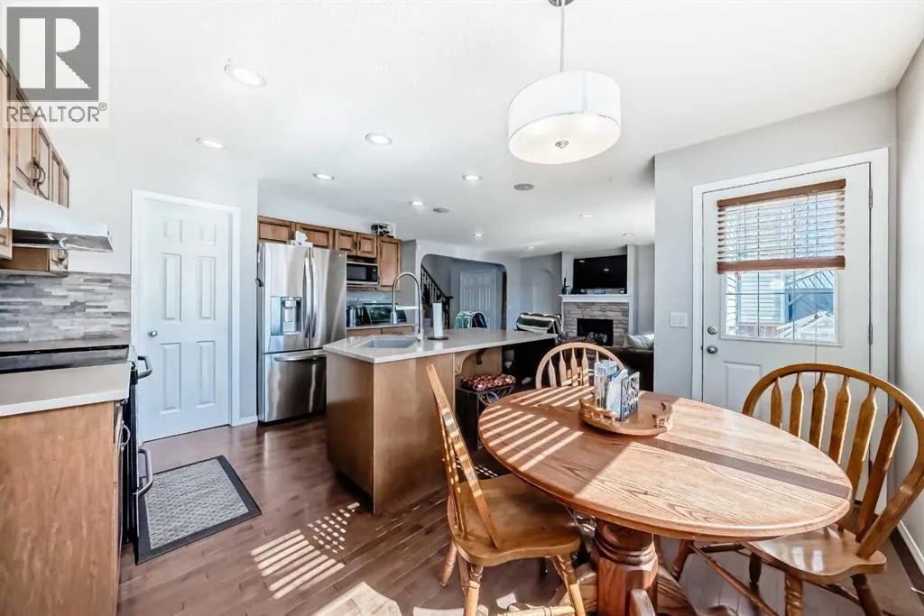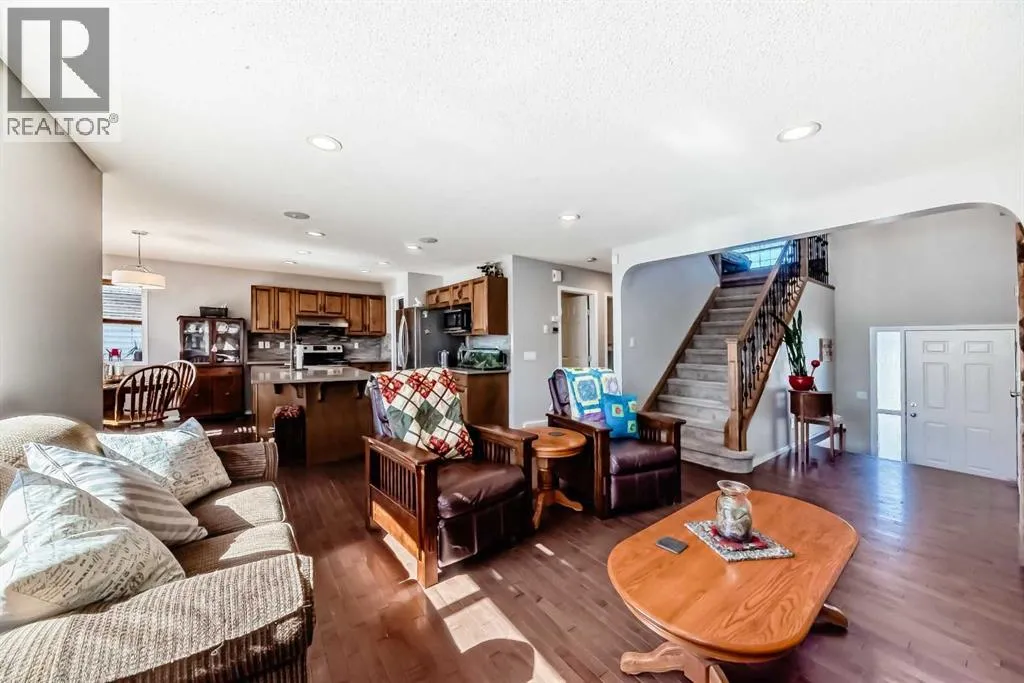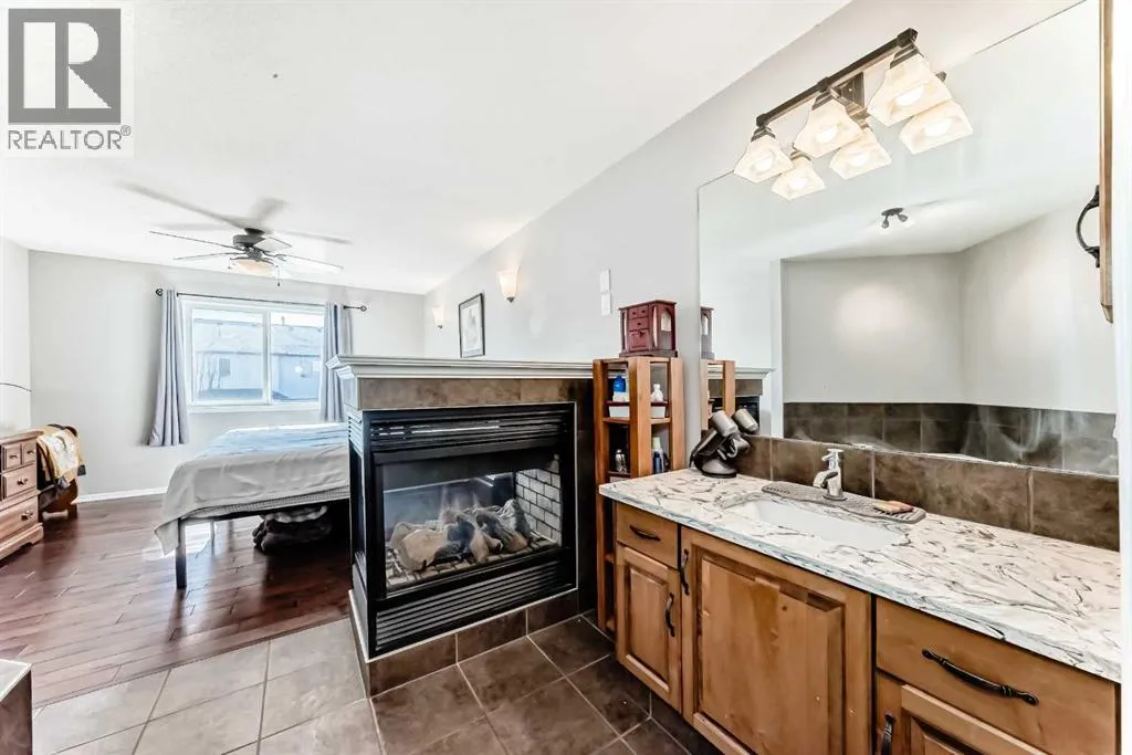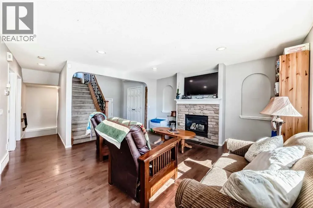 Welcome to 377 Cimarron Blvd â a beautifully updated 2-storey family home in the highly sought-after Cimarron community of Okotoks. Step inside and be instantly captivated by the bright, open-concept main floor where warm hardwood flooring guides you through sun-drenched spaces filled with natural light from large south-facing windows. A striking stone fireplace anchors the living room while the functional kitchen boasts a generous island, making every meal and gathering effortless and joyful.Upstairs youâll find three spacious bedrooms and a luxurious primary suite featuring an ensuite bathroom with both a deep soaker tub, a separate shower and a two way fireplace! The versatile bonus room with soaring vaulted ceilings is a true standout, offering endless possibilities as a home office, playroom, or peaceful retreat.This home has been meticulously maintained and upgraded for modern living with central air conditioning, fresh hardwood flooring throughout the upper level, a newly finished basement, new carpeting, a brand-new 50-gallon hot water heater, tamper-proof electrical outlets, plus a newer roof, pressure-treated wood deck and fencing, low-maintenance xeriscape landscaping, LED lighting, and added attic insulation. There is a full solar panel array on the roof, this is a $25,000 system that is paid off and comes with the home, it will save a small family approximately $3,000 a year in usage and transmission fees!The private backyard is an absolute highlight, complete with a spacious pressure-treated deck perfect for summer BBQs and a convenient RV or trailer parking pad with direct fence-gate access.Living in Okotoks delivers the ultimate lifestyle â small-town friendliness paired with big-city amenities â and Cimarron shines as a welcoming, family-oriented neighbourhood filled with excellent schools, parks, playgrounds, walking trails, easy commutes to Calgary, and breathtaking Rocky Mountain views on the horizon.Donât miss this incredible opportunity! B ook your private showing today and discover why 377 Cimarron Blvd is the perfect place to call home (id:27476)