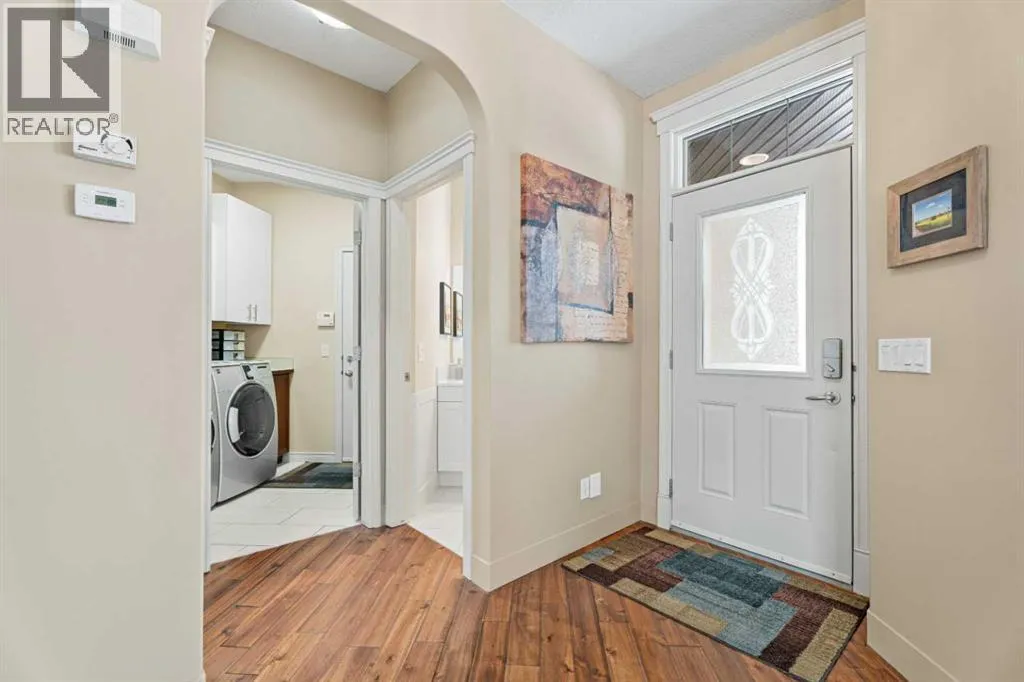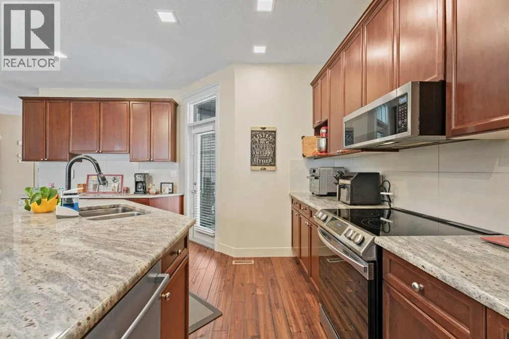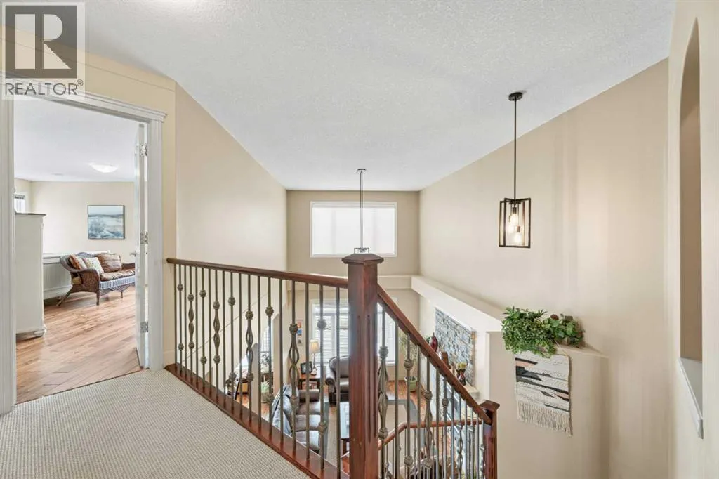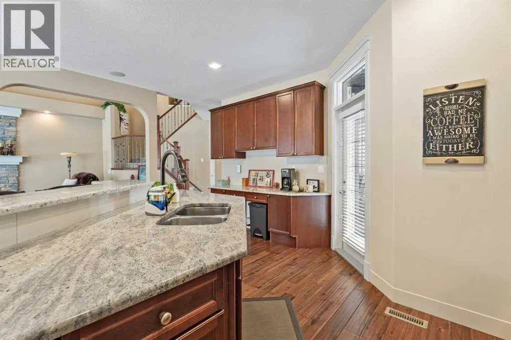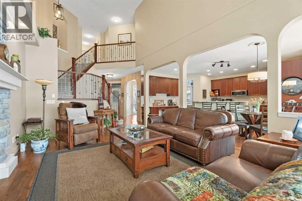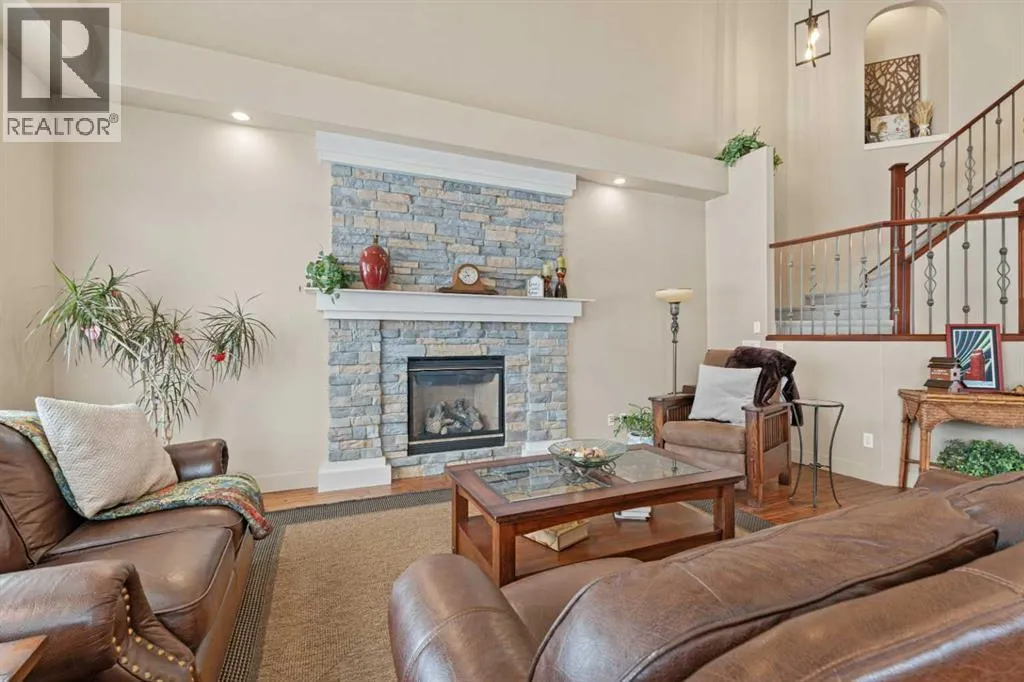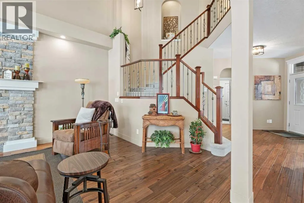 Welcome to this extensively renovated 2-storey former Sterling Showhome offering 3,179 sq ft of refined living space on all 3 levels, ideally positioned on a private corner lot siding and backing onto pathways and greenspace. With no detail overlooked, this is a true turnkey home where quality craftsmanship and thoughtful upgrades are evident throughout. From the moment you arrive, the wraparound front porch and mature, newly refreshed landscaping create standout curb appeal. Inside, youâre greeted by a grand staircase, soaring ceilings, and expansive windows that flood the home with natural light. Rich acacia hardwood flooring, tile and carpet, and a striking stone fireplace anchor the open-concept main floor. The fully upgraded kitchen is both functional and impressive, featuring granite countertops, extensive cabinetry, roll-out storage, a large pantry, and a generous island designed for everyday living and entertaining. Your choice: Kitchen gourmet eating or Family Dining in a Formal setting in the Dining room. Upstairs, the spacious primary retreat offers a spa-inspired ensuite and walk-in closet, complemented by two additional well-sized bedrooms and a full bath. The fully renovated basement (2025) expands your living space with a large family room, additional bedroom, full bathroom, and excellent storage options. The heated, fully finished garage is a rare bonus, complete with cabinetry, upgraded lighting, hot & cold water, new door springs (2026), and a hoist system for a lightweight folding trailer. Enjoy parking for up to 5 vehicles and the added convenience of winter snow removal on the street. Perfectly located just steps to parks, pathways, schools, and within walking distance to shopping and restaurants, this home offers a lifestyle that is as functional as it is beautiful. This home has been comprehensively updated for peace of mind and modern comfort, including: New hot water tank (2025), Full interior repaint (2025), New lighting throughout, Rebuilt decks, new fencing with deer barrier & gate, New landscaping with grass and perennial gardens, Central air conditioning & water softener, Central vacuum system (id:27476)