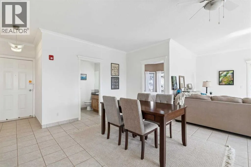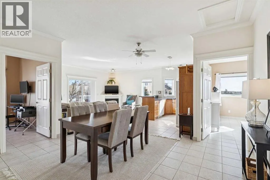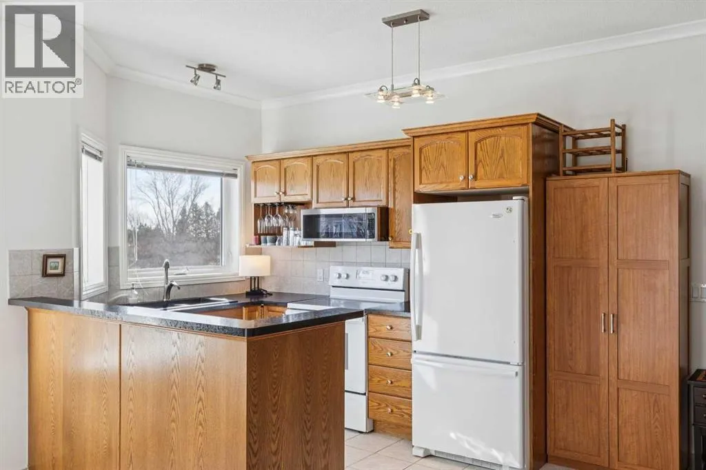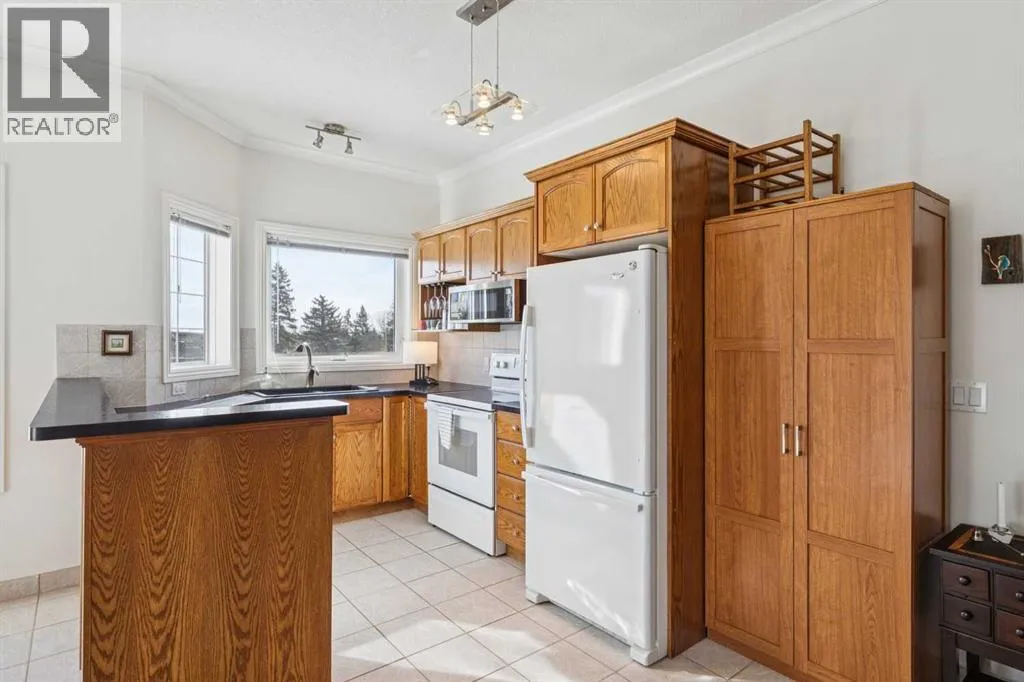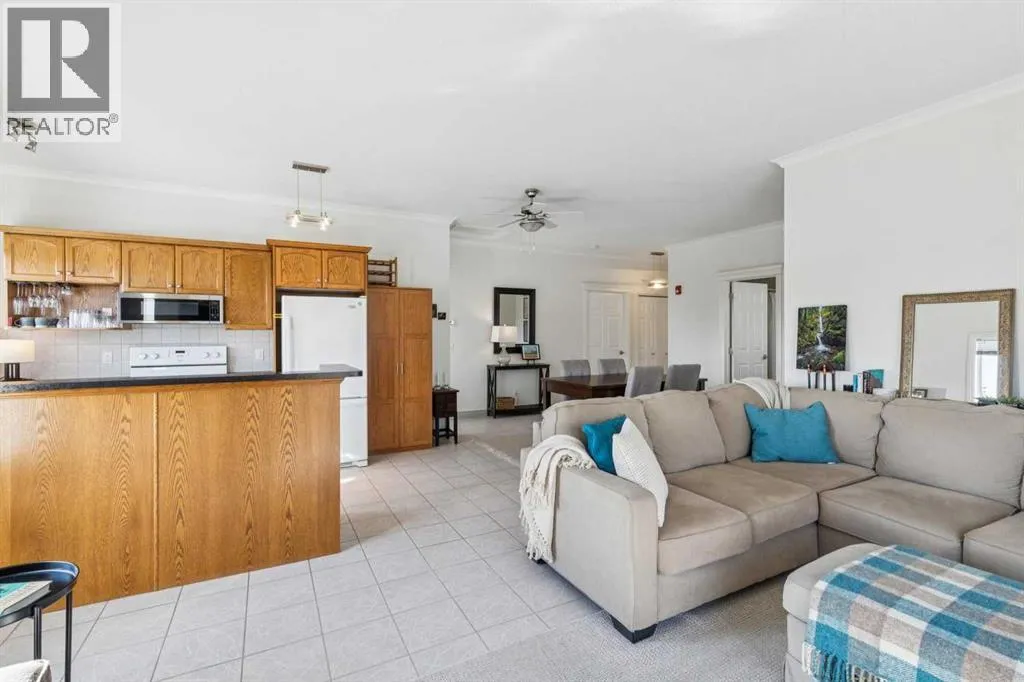 Welcome to this beautifully maintained 2-bedroom, 2-bathroom top-floor corner unit, offering one of the largest floor plans in the building. This bright and inviting home features 9-foot ceilings, elegant crown and cornice mouldings, and a cozy corner fireplace that anchors the living space. The thoughtful layout is complemented by durable tile flooring throughout, making it both stylish and highly functional. Enjoy year-round comfort with in-floor heating, and step outside to your spacious private deck overlooking a mature, treed green space. A perfect spot to relax or entertain. The building itself is exceptionally well cared for and self-managed, offering peace of mind and pride of ownership throughout. Additional features include: Elevator access, oversized doorways for enhanced accessibility, covered rear parking, on-site visitor parking, and a large on-site secured storage unit. Located just steps from historic downtown, youâll love being close to schools, local coffee shops, boutique shopping, and scenic river pathways. Immaculate, move-in ready, and offering incredible value, this is one you donât want to miss. (id:27476)