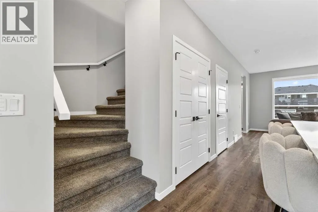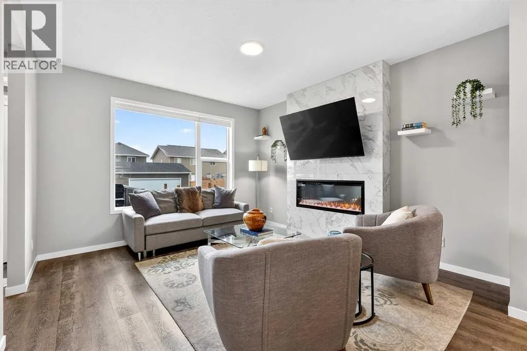 Welcome to this immaculate, air-conditioned semi-detached two-storey in the highly desirable community of Wedderburn, offering over 1,400 sq. ft. of thoughtfully designed living space with 2 bedrooms and 2.5 bathrooms on a 2,952 sq. ft. lot. With new fencing, low-maintenance landscaping, and charming architectural details, this home delivers both curb appeal and everyday comfort. Step inside to a welcoming foyer with 9â knockdown ceilings, neutral tones, and durable laminate flooring that flows throughout the main level. The dining area greets you first, creating a warm and inviting space for family meals and gatherings. From here, the layout flows seamlessly into the sleek, chef-inspired kitchen, featuring gorgeous two-tone cabinetry, quartz countertops, stainless steel appliances, a spacious island with breakfast bar seating, and a convenient pantry, perfect for both entertaining and everyday living. At the back of the home, the bright and comfortable living room offers a cozy retreat with an electric fireplace and remote-controlled blinds throughout, while large windows bring in plenty of natural light. A practical mudroom with a built-in bench leads directly to the deck and backyard, and a 2-piece powder room completes the main level. Upstairs, youâll find a versatile office or study area and a dedicated laundry room with wire shelving. The upper level features two spacious bedrooms, each with its own private ensuite, offering comfort, privacy, and flexibilityâperfect for family members, guests, or a roommate arrangement. The full, undeveloped basement offers incredible potential for future development and already includes rough-in plumbing, making it easy to add an additional bathroom and expand the living space to suit your needs. Outside, the south-facing backyard extends your living space with a sunny deck perfect for summer barbecues, relaxing evenings, or spending time with children and pets. Located close to shopping, parks, schools, and everyday amenitie s, with convenient access to Banister Drive and Northridge Drive, this beautifully maintained home offers the perfect combination of comfort, functionality, and community living. Move-in ready and meticulously cared for, this Wedderburn home is ready to welcome its next chapter. (id:27476)