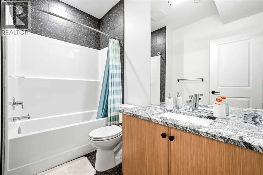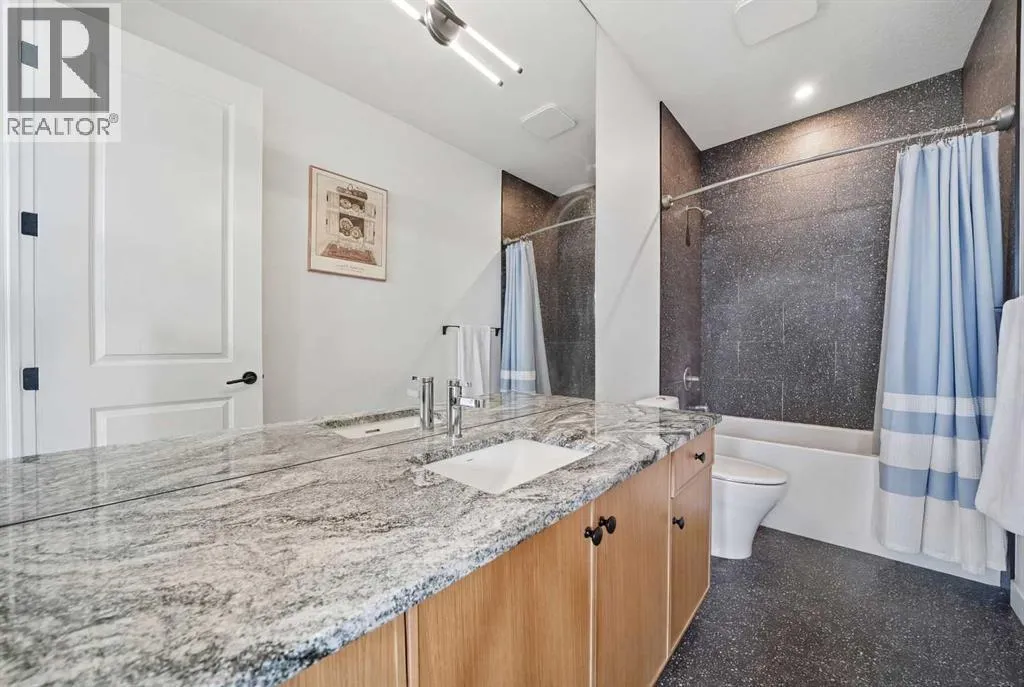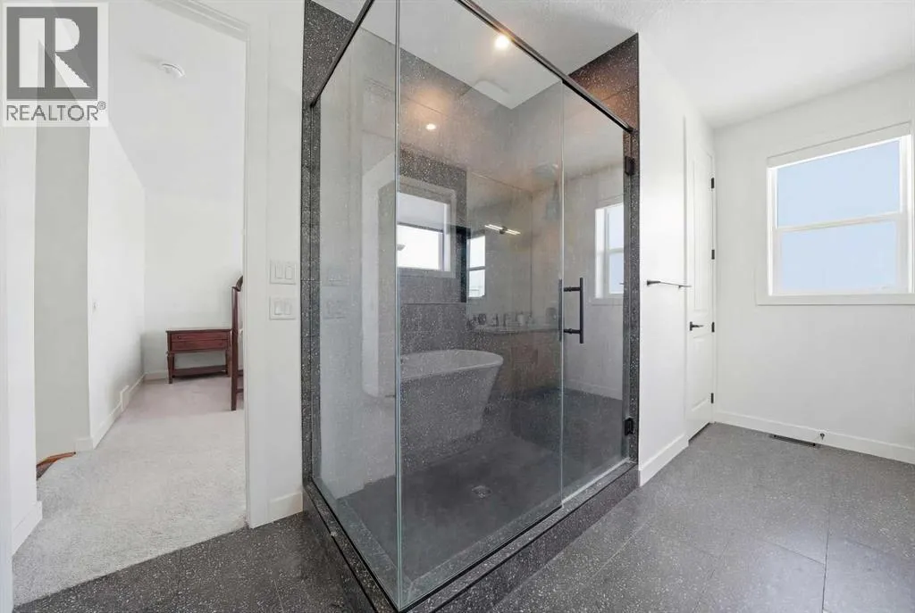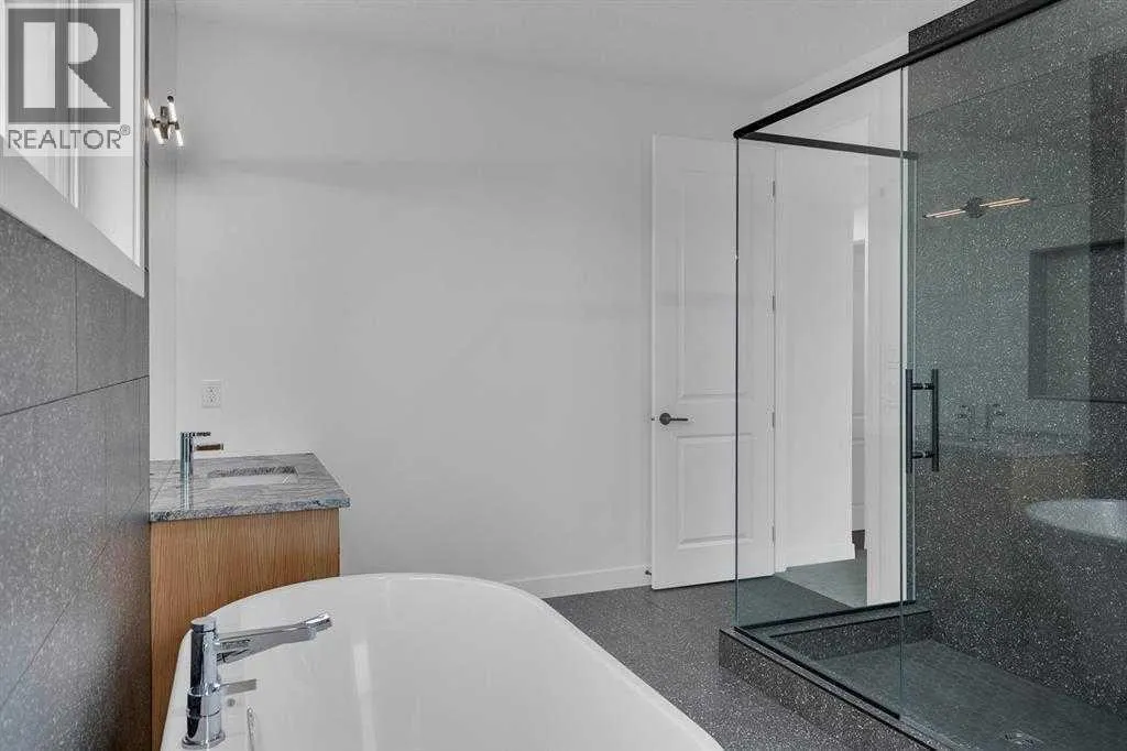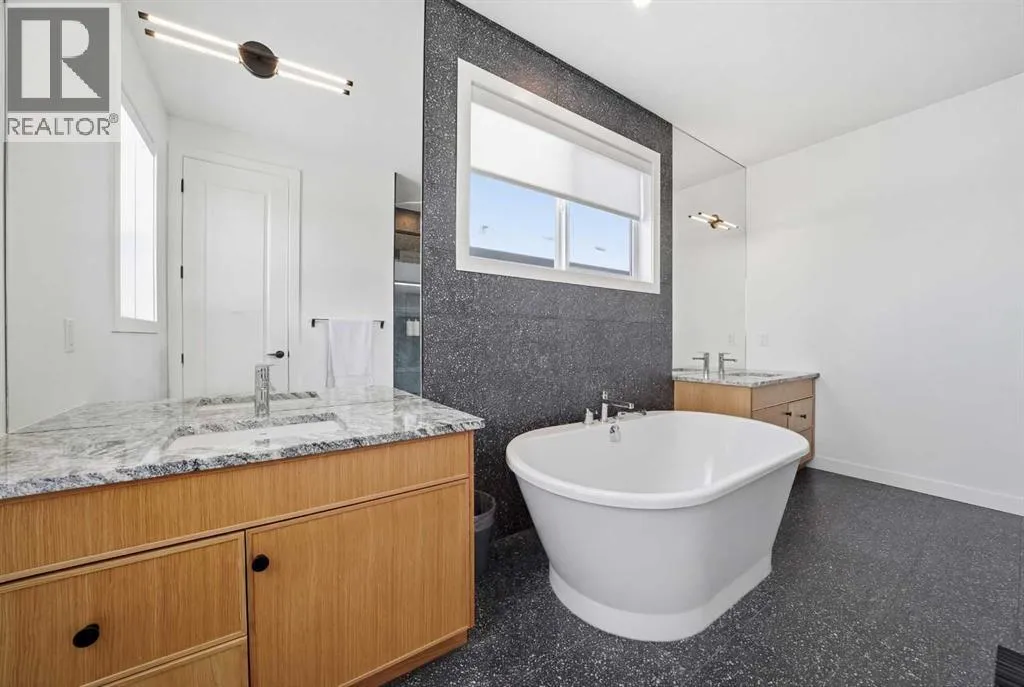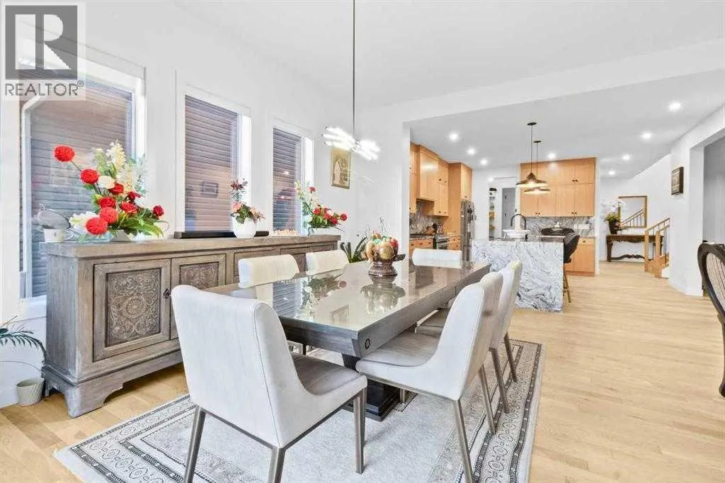 Welcome to this exceptional, fully upgraded home in the heart of beautiful Okotoksâoffering quality construction and opulent features. Designed with both style and function in mind. Upon entry, this home makes an immediate impression with its soaring vaulted entry and 9â ceilings spanning all three levels, including the basement. The rear living and dining areas elevate the experience even further with impressive 10â ceilings and expansive windows that flood the space with natural light, creating an open and inviting atmosphere.The chef-inspired kitchen is a true showpiece, featuring premium KitchenAid appliances, a Hansgrohe faucet, rift-cut white oak cabinetry with stacked uppers, a custom hood fan, and striking Viscount White granite waterfall countertops. A matching granite backsplash and custom fireplace surround tie the space together with a sophisticated finish.Thoughtful upgrades continue throughout, including 8â interior doors on the main and upper floors, triple-pane casement windows, an oversized 8â patio door, and sleek black spindle railings. Mirage white oak hardwood floors extend through the main level and staircase, adding warmth and timeless elegance. The home is illuminated by designer Kuzco lighting, backed by the 5-year Alberta New Home Warranty, while roller blinds throughout provide both privacy and style.Upstairs, youâll find four generously sized bedrooms, a central bonus room, and the convenience of upper-floor laundry. The primary suite offers a private retreat with dual walk-in closets and plenty of space to unwind. The ensuite and bathrooms throughout the home are beautifully finished with fully tiled showers, a freestanding tub, high-end Toto and Moen fixtures, and full-height mirrors that enhance the sense of space.The lower level is partially developed with a completed 4-piece bathroom and a fifth bedroom, while over 700 sq. ft. remains for your personal visionâcomplete with a wet bar rough-in, ideal for a future media room, rec reation space, or home gym.Additional highlights include built-in ceiling speakers in the living room, Lutron Caseta smart lighting controls, and a double attached garage for year-round comfort and convenience. Step outside to enjoy the expansive custom-built 18â x 26â cedar deckâperfect for relaxing or entertaining on warm summer evenings.This is a rare opportunity to own a meticulously upgraded, move-in-ready home in one of Okotoksâ most desirable settingsâwithout the delays of building from scratch. (id:27476)