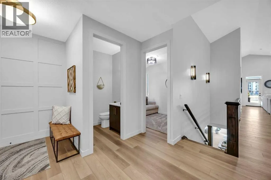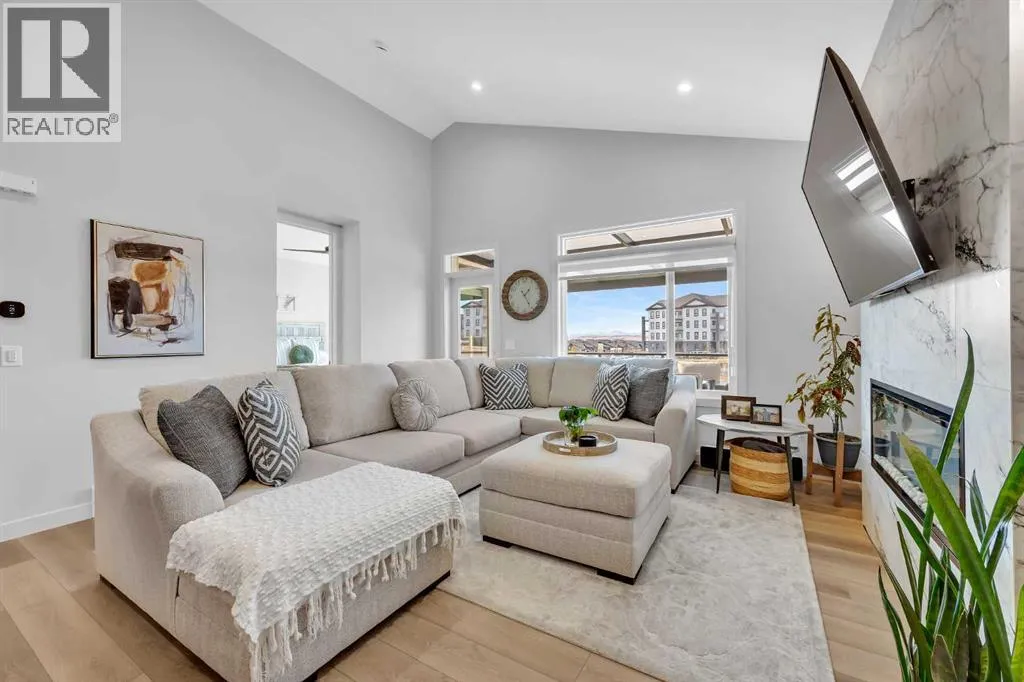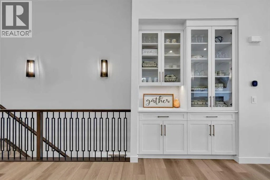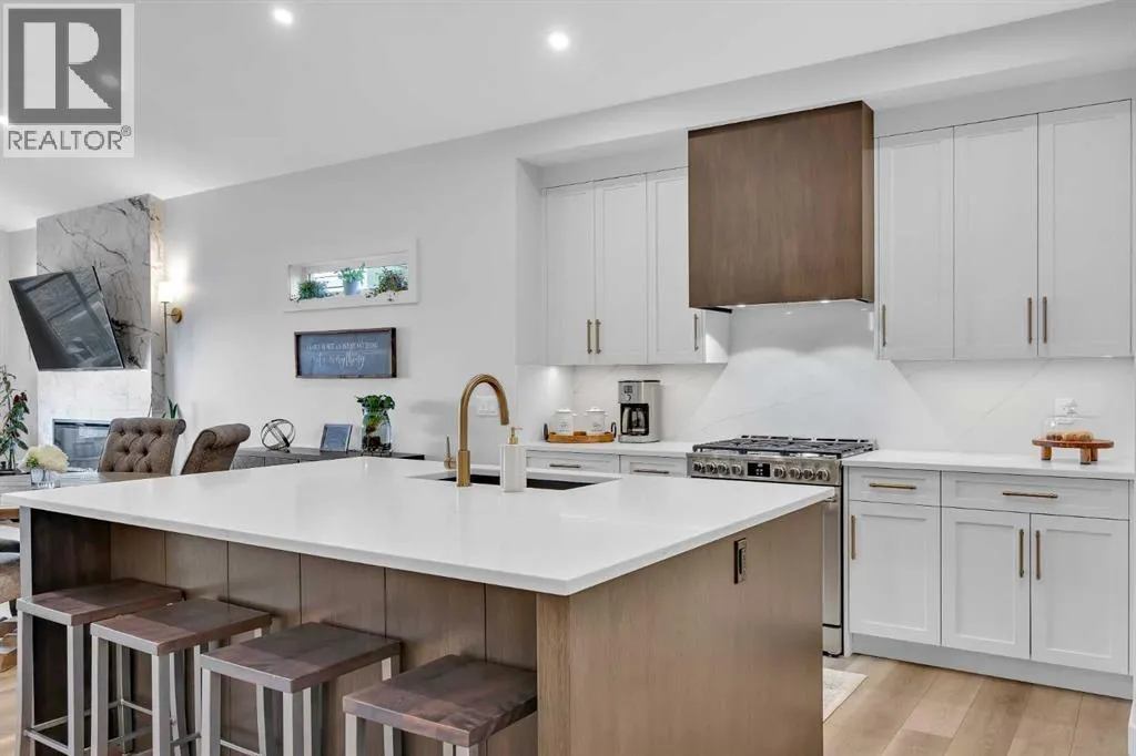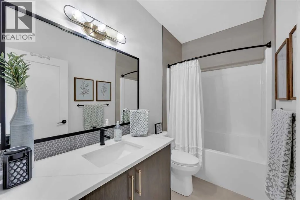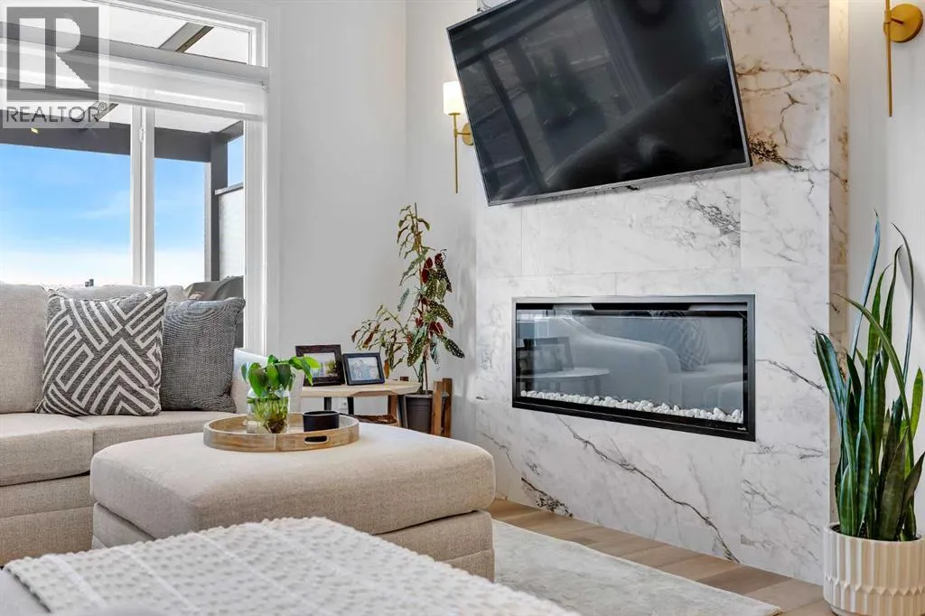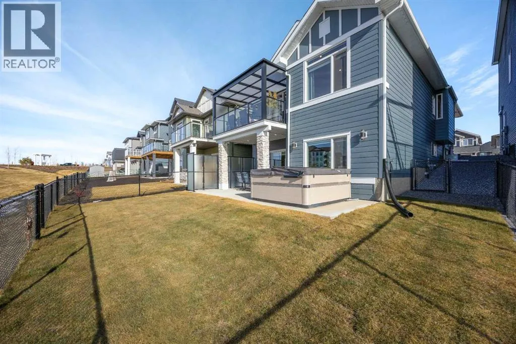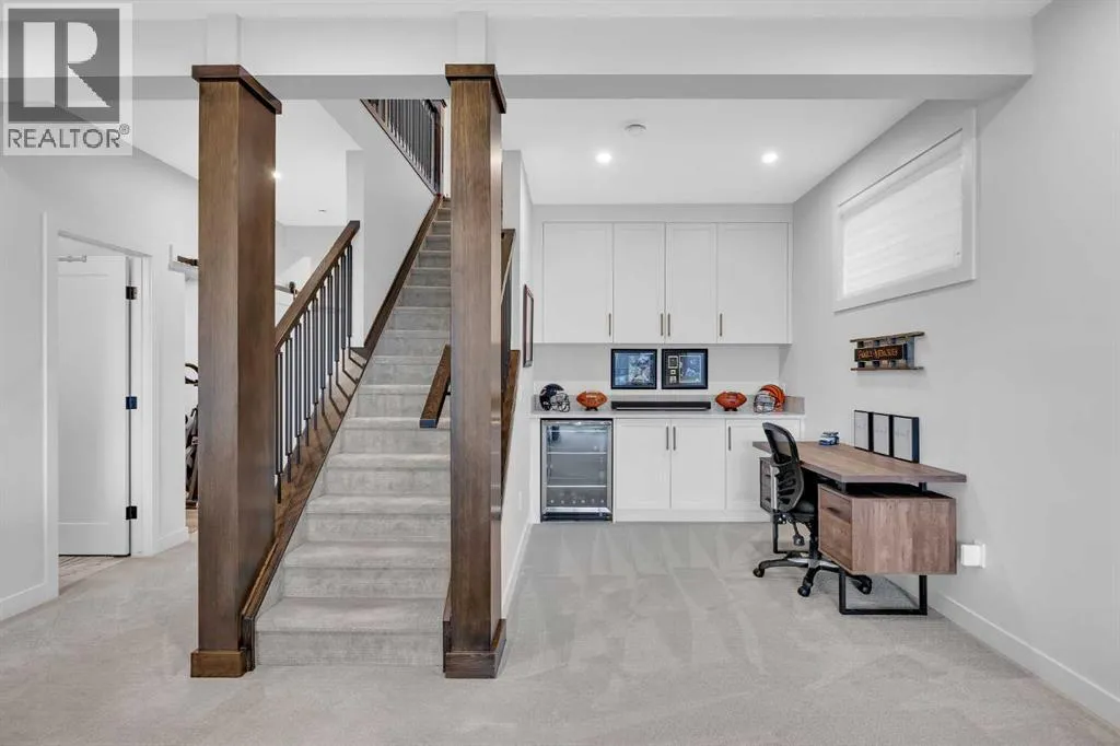 Welcome to this stunning walkout bungalow in Wedderburn, Okotoks, offering over 2,500 square feet of developed living space, mountain views, and a layout designed for both everyday living and entertaining. Featuring three bedrooms, two and a half bathrooms, a main floor den, a dedicated gym, and a fully finished walkout basement with a built-in dry bar, this home presents a rare opportunity to own a highly upgraded bungalow in one of Okotoksâ most desirable and growing communities. The main level is defined by soaring vaulted ceilings and expansive windows that fill the home with natural light. At the center of the space is an oversized chef-inspired kitchen designed to impress, complete with quartz countertops, a large island, full height cabinetry, a walk-in pantry, upgraded built-in appliances, and a custom hood fan. A built-in hutch adds both function and character, while the open concept layout connects seamlessly to the dining and living areas. The great room is anchored by a sleek linear fireplace and opens directly onto the main floor deck, creating an ideal setting for indoor-outdoor living and entertaining. The primary suite is thoughtfully positioned for privacy and offers a spacious walk-in closet and a beautifully finished ensuite featuring dual vanities, a soaker tub, and a fully tiled shower. A main floor den provides flexibility for a home office, study, or quiet retreat. The mudroom and laundry area are well designed with built-in cabinetry, quartz counters, and excellent storage, and connect directly to the double attached garage for everyday convenience. The fully finished walkout basement extends the living space with two generously sized bedrooms, a full bathroom, a dedicated gym, and a large recreation area with a second fireplace and built-in dry bar. Step outside to the lower patio and enjoy the seamless connection to the outdoors that walkout living provides. Located in Wedderburn, Okotoks, this home offers access to pathways, parks, and nea rby amenities, with convenient access to Calgary. This is a rare opportunity to own a move-in ready walkout bungalow with elevated finishes, functional design, and exceptional living space. (id:27476)