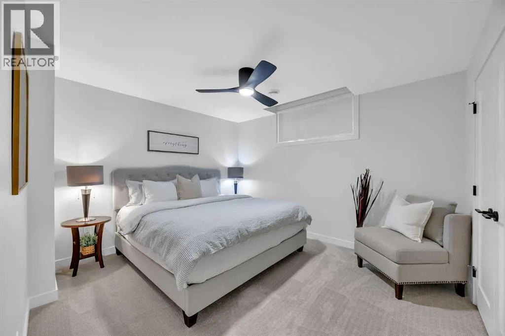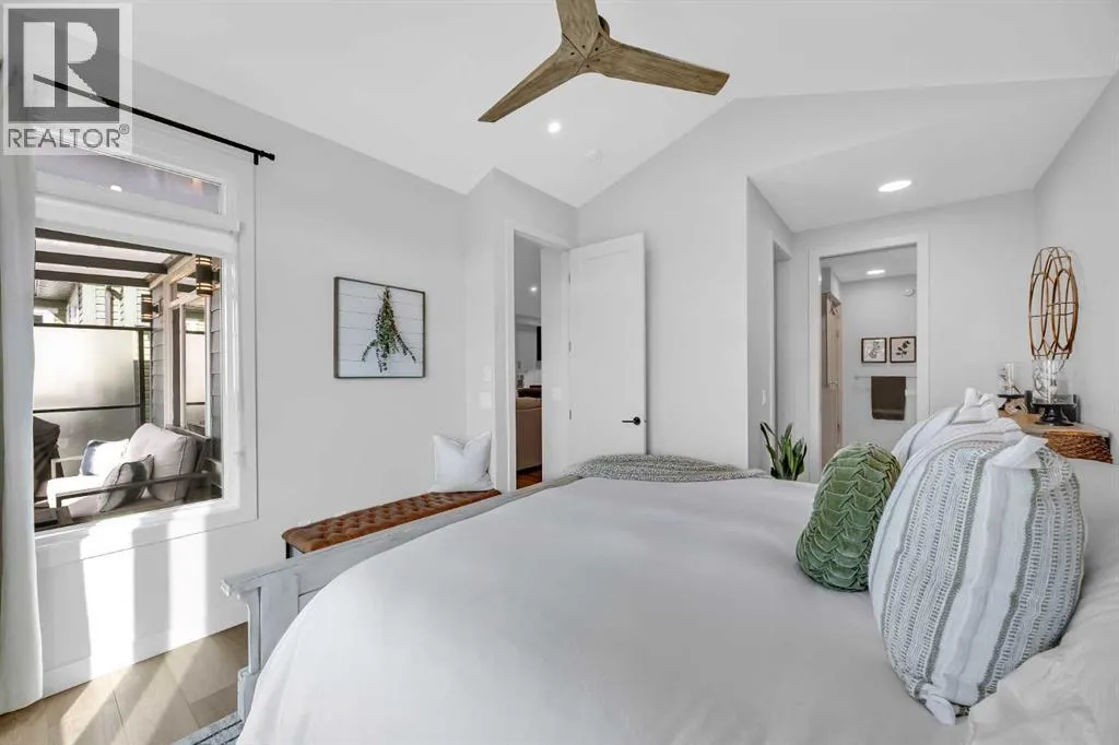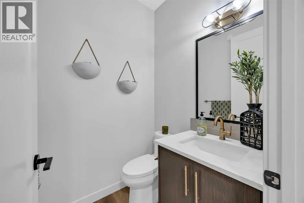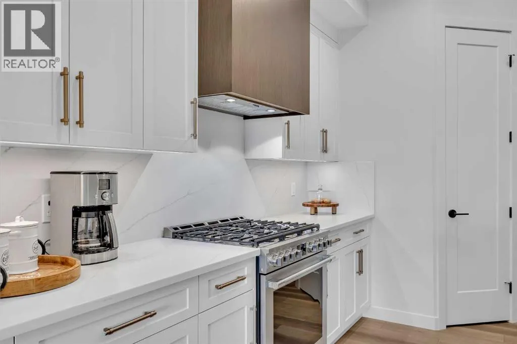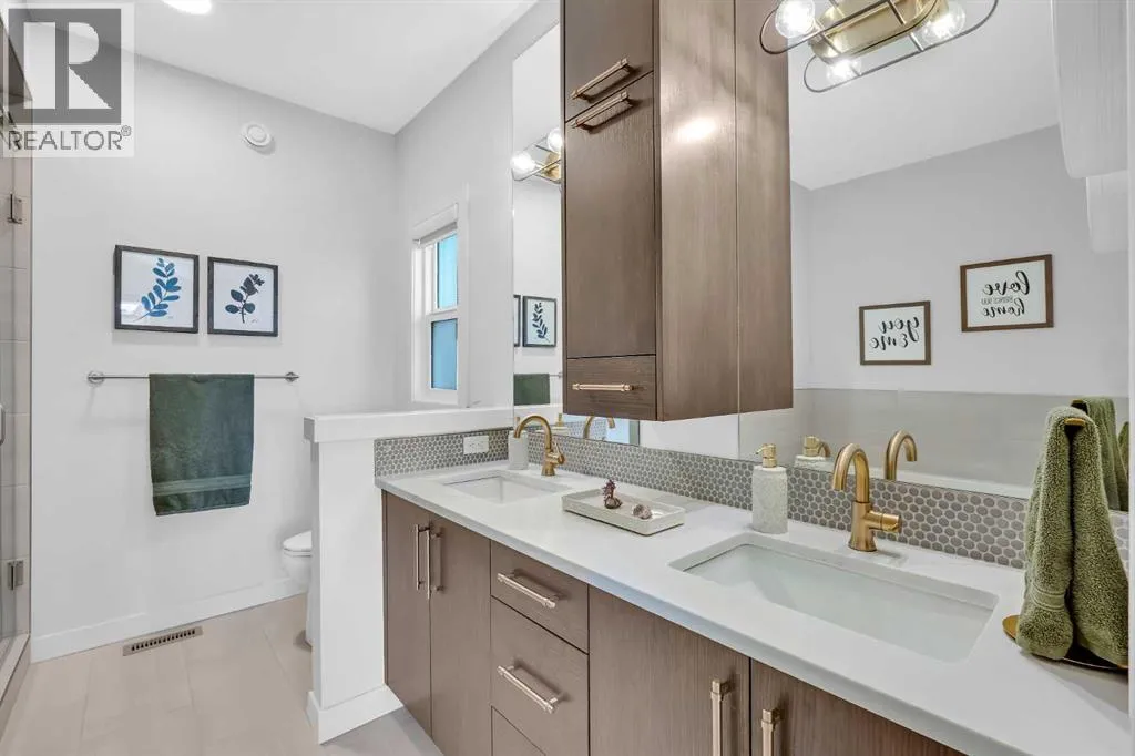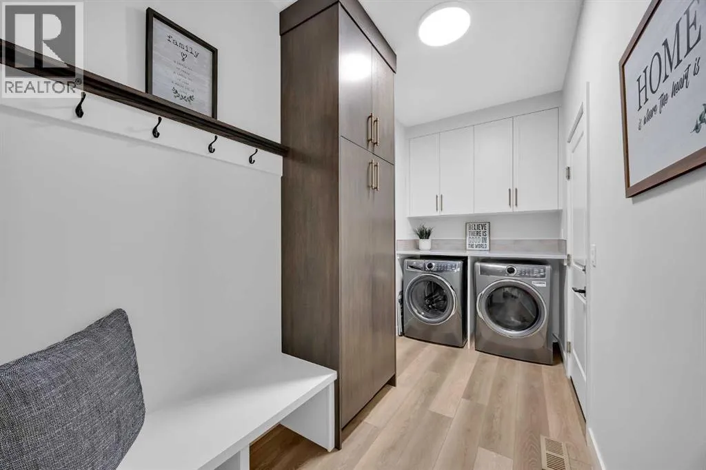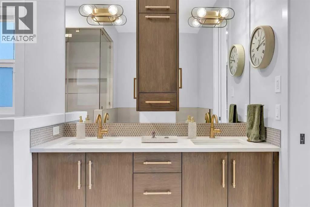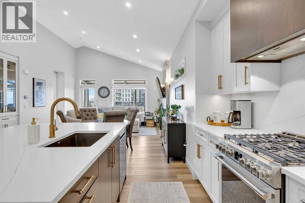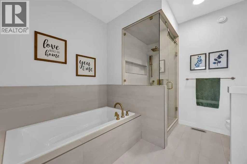Welcome to this stunning walkout bungalow in Wedderburn, Okotoks, offering over 2,500 square feet of developed living space, mountain views, and a layout designed for both everyday living and entertaining. Featuring three bedrooms, two and a half bathrooms, a main floor den, a dedicated gym, and a fully finished walkout basement with a built-in dry bar, this home presents a rare opportunity to own a highly upgraded bungalow in one of Okotoksâ most desirable and growing communities. The main level is defined by soaring vaulted ceilings and expansive windows that fill the home with natural light. At the center of the space is an oversized chef-inspired kitchen designed to impress, complete with quartz countertops, a large island, full height cabinetry, a walk-in pantry, upgraded built-in appliances, and a custom hood fan. A built-in hutch adds both function and character, while the open concept layout connects seamlessly to the dining and living areas. The great room is anchored by a sleek linear fireplace and opens directly onto the main floor deck, creating an ideal setting for indoor-outdoor living and entertaining. The primary suite is thoughtfully positioned for privacy and offers a spacious walk-in closet and a beautifully finished ensuite featuring dual vanities, a soaker tub, and a fully tiled shower. A main floor den provides flexibility for a home office, study, or quiet retreat. The mudroom and laundry area are well designed with built-in cabinetry, quartz counters, and excellent storage, and connect directly to the double attached garage for everyday convenience. The fully finished walkout basement extends the living space with two generously sized bedrooms, a full bathroom, a dedicated gym, and a large recreation area with a second fireplace and built-in dry bar. Step outside to the lower patio and enjoy the seamless connection to the outdoors that walkout living provides. Located in Wedderburn, Okotoks, this home offers access to pathways, parks, and nea rby amenities, with convenient access to Calgary. This is a rare opportunity to own a move-in ready walkout bungalow with elevated finishes, functional design, and exceptional living space. (id:27476)
