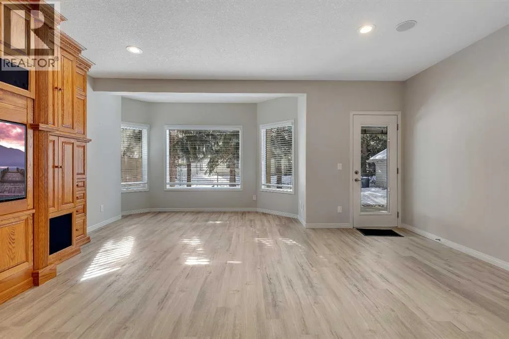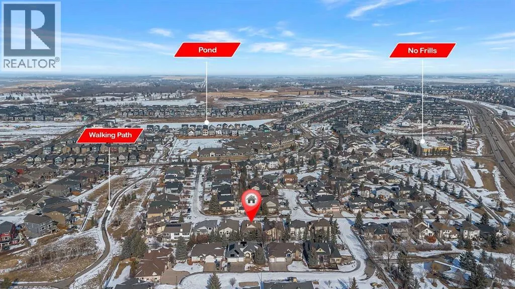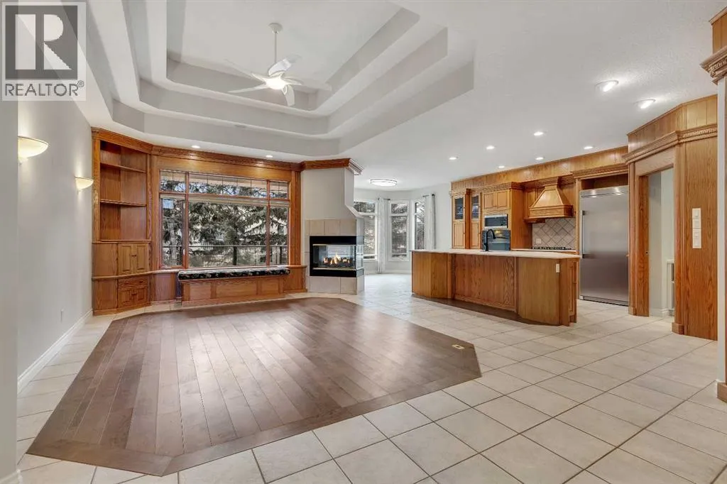 Welcome to this beautifully renovated 1,605 sq. ft. fully finished walkout bungalow in the highly desirable Sandstone community of Okotoks. Offering exceptional craftsmanship, thoughtful design, and pride of ownership throughout, this home truly stands out. From the moment you arrive, youâll notice the attention to detail. The spacious front entry welcomes you into an impressive open-concept main floor featuring gleaming hardwood floors, 9-foot ceilings, and a dramatic tiered cathedral ceiling in the great room. Large windows flood the space with natural light, while a striking three-sided fireplace creates warmth and elegance between the living , kitchen and dining areas. The custom kitchen is a true showpiece, complete with a massive island, porcelain countertops, solid wood cabinetry, high-end built-in appliances, a butlerâs pantry with sink, and a convenient walk-through pantry. The bright nook area leads to a full-sized deck â perfect for entertaining or relaxing outdoors. In addition to the primary retreat, the main floor also features a private den â ideal for a home office, library, or flex space. The spacious primary bedroom offers a walk-in closet with custom built-ins and a luxurious ensuite. Main floor laundry adds everyday convenience. The fully developed walkout basement is equally impressive, featuring in-floor heating, a beautiful built-in fireplace with custom cabinetry, and a spacious family/games room complete with a wet bar â perfect for entertaining. Two generous bedrooms (both with walk-in closets) and a full bathroom complete the lower level. Large windows provide abundant natural light, creating a warm and inviting space. A truly special feature of this property is the separate, private guest accommodation (illegal suite), complete with its own entrance, kitchen, stacked washer and dryer, bedroom, and full bathroom â ideal for extended family, guests, or potential Airbnb use. Additional highlights include a heated garage, mature trees, a priv ate yard, and direct access to walking and biking paths. Located close to schools, amenities, transportation, and serene green spaces. This exceptional home offers luxury, flexibility, and an unbeatable location â a rare opportunity! (id:27476)