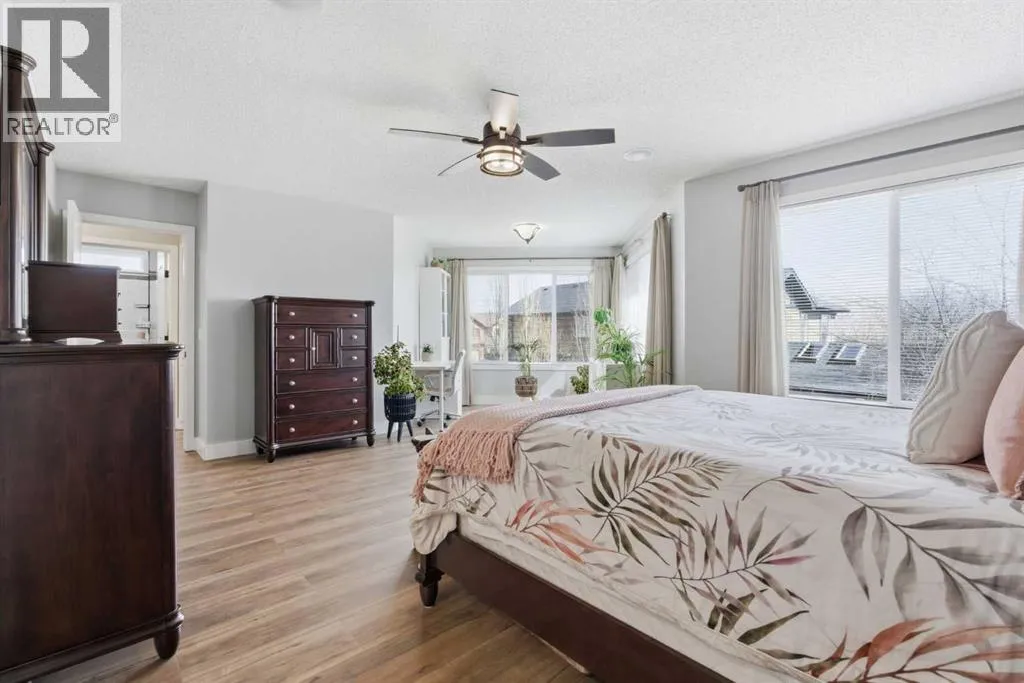 Welcome to a home that seamlessly combines executive luxury with a highly functional layout designed for modern family living in the prestigious Crystal Shores lake and golf community. This residence feels bright, modern, and completely move-in ready with fresh paint throughout, featuring airy 9-foot ceilings and a massive chefâs kitchen with a huge island that overlooks the great room. The "command center" of the main floor includes a massive walk-through pantry leading into an oversized mudroom designed to manage an active household's gear with ease. The front flex room, currently used as a hair salon, offers the perfect quiet space for a home office, music room, or formal dining. The dining nook provides a direct indoor-outdoor flow to a finished deck and a fully landscaped yard equipped with a pre-installed irrigation system. A rare standout feature of this property is the upper-level layout hosting four spacious bedrooms all on a single floor, including an enormous master retreat with a private sanctuary area and a spa-like ensuite featuring dual sinks, a 5-foot shower, and a 6-foot soaker tub. Laundry on this level makes the daily routine effortless for large families. The developed lower level is specifically tailored for multigenerational living or guests, boasting a fifth bedroom, a 3-piece bathroom, custom built-ins, and a partial kitchen for a self-contained feel. Car enthusiasts and hobbyists will appreciate the oversized 26x24 garageâmeasuring 25'4" x 23'11" per the floor planâproviding ample depth and width for large trucks, toys, and a workbench, added bonus, in-floor heat is available for completion. Stay cool all summer with central air conditioning, all while benefiting from exclusive access to Crystal Shores Lake for beach days, fishing, and skating, along with proximity to the Crystal Ridge Golf Club. Total Living Area: 3021 sq.ft. (id:27476)