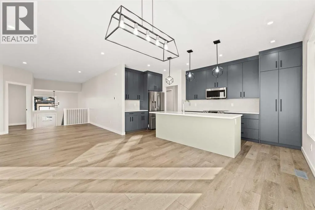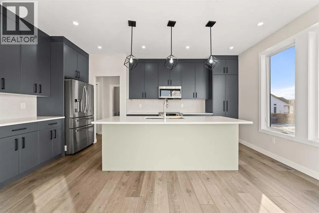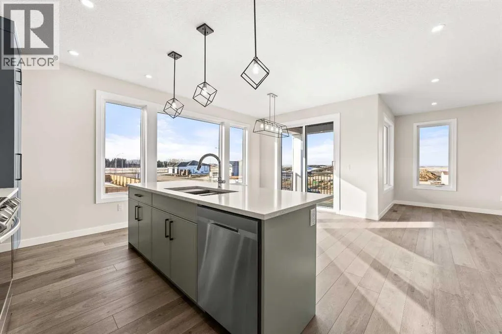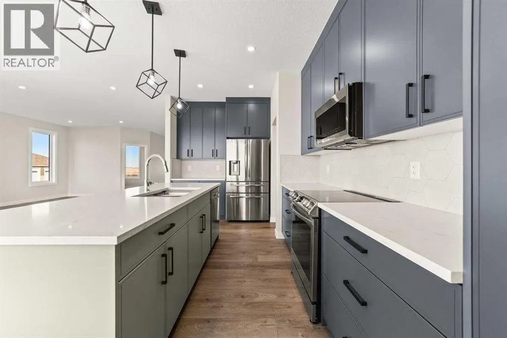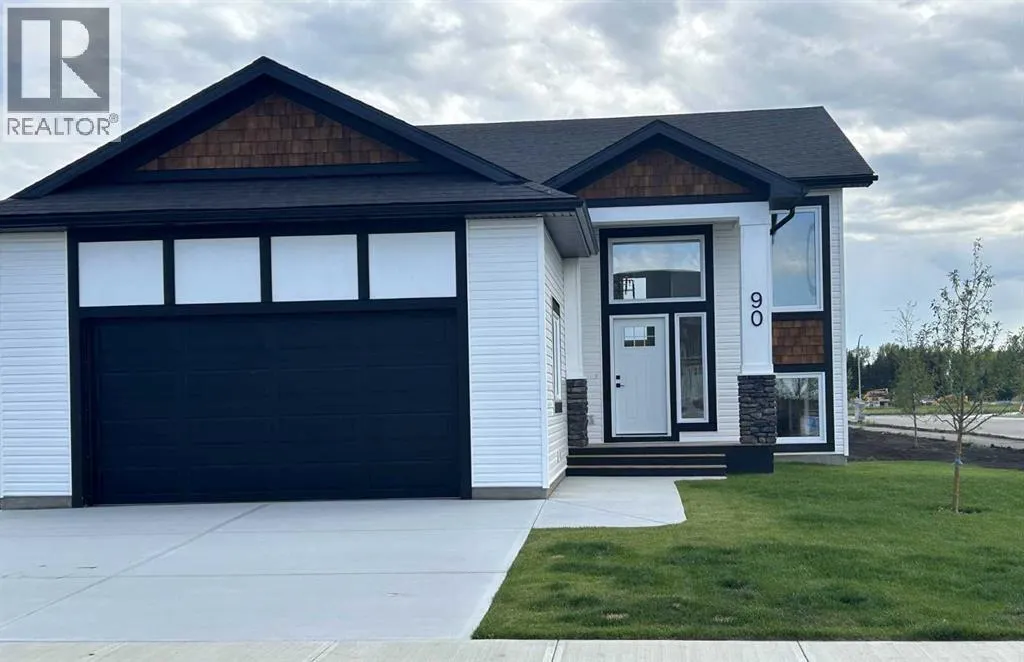 Stunning Brand-New Walk-out Bi-Level in a Family-Friendly NeighborhoodDiscover this beautiful brand-new bi-level home situated on a large corner lot in a desirable family neighborhood. Designed for modern living, this 4-bedroom, 3-bathroom home includes a dedicated office and a walk-out basement, offering both functionality and comfort. Step inside to find high-quality finishes throughout, including ceramic tile, plush carpeting, and luxury vinyl plank flooring. The open-concept main level features a bright office with abundant natural light, perfect for working from home. The spacious living and dining area flows seamlessly into a well-appointed kitchen, complete with a large island, ample cabinetry, and stainless-steel appliancesâfridge, stove, dishwasher, and microwave. A covered deck off the living room provides a great space for outdoor enjoyment. The primary bedroom boasts a walk-in closet and a private 4-piece ensuite, while a second bedroom on this level has convenient access to the main 4-piece bathroom. A thoughtfully designed laundry space, with storage and room for a stackable washer and dryer, is conveniently located between the bedrooms. Downstairs, the walk-out basement is filled with natural light and includes two additional spacious bedrooms, a third 4-piece bathroom, and a large mechanical room. Under-stair storage ensures space is maximized, and direct access to the private backyard makes this lower level both practical and inviting. Additional highlights include a double attached garage with an overhead heater, ideal for cold winter days, and a landscaped yard with a newly planted tree. This home perfectly balances style, space, and functionalityâdon't miss your chance to make it yours! (id:27476)