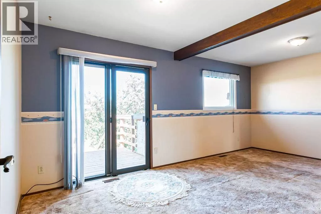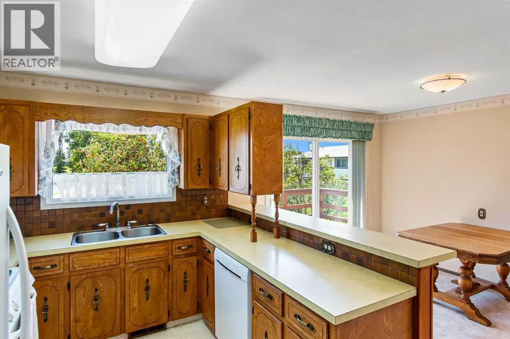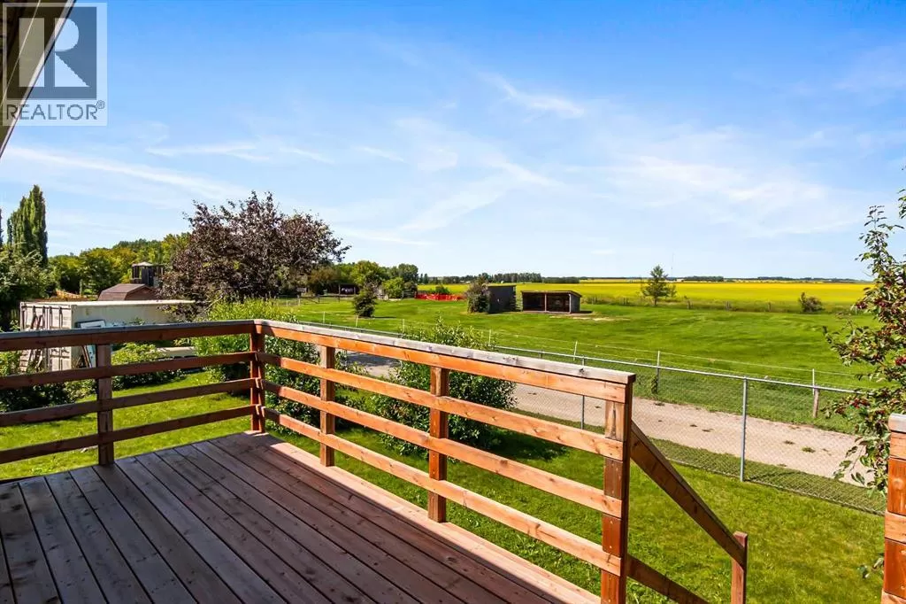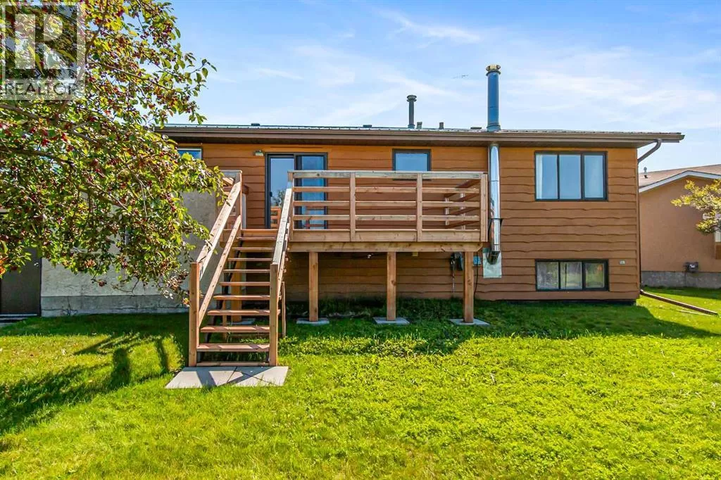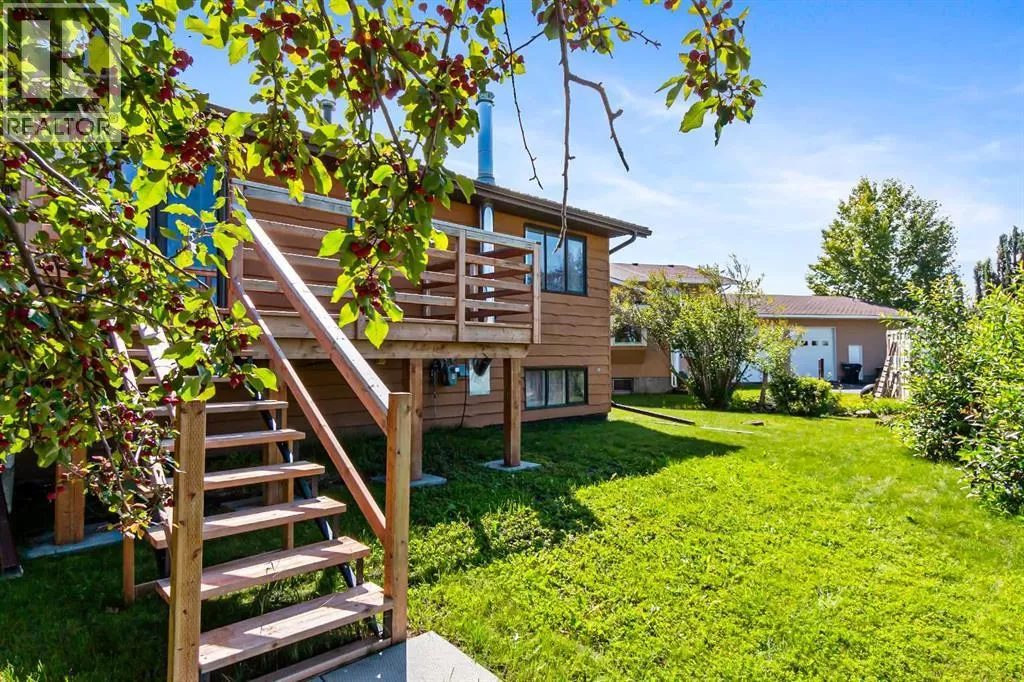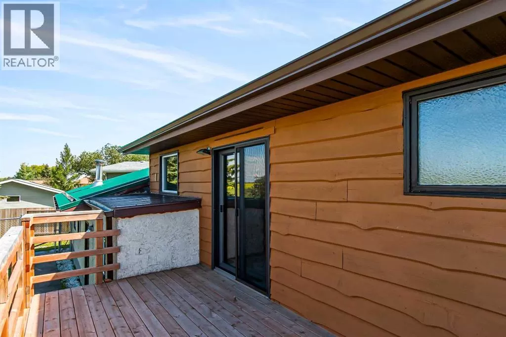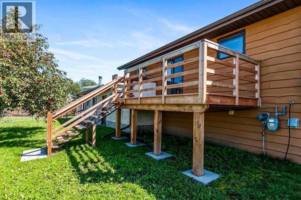 Discover this well maintained 1,178 sq. ft. bi-level home, ideally located in a desirable neighborhood with convenient access to amenities and scenic surroundings. The main floor boasts a spacious living room, dining area, and kitchen. Step outside to a south facing balcony off the kitchen and dining area, or enjoy the large deck off the 2nd bedroom. The primary bedroom and two full bathrooms complete the main living level. The fully finished basement offers even more living space, including a good-sized bedroom, a large recreation room with a cozy wood-burning fireplace, a den, a 3-piece bathroom, and a laundry/storage room with ample storage. A separate basement entrance from the garage adds for extra convenience. The garage has two doors with with 2 openers. Set on a large, irregularly-shaped lot with back-alley access, the backyard backs onto serene farmland, offering privacy and scenic views. The back yard also has ample room for parking. This home blends comfort, functionality, and charm, making it a perfect choice for families or anyone seeking a versatile living space in a great location. (id:27476)
