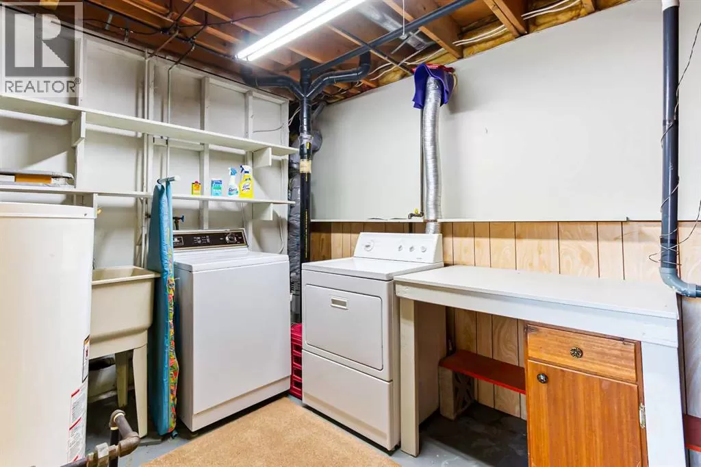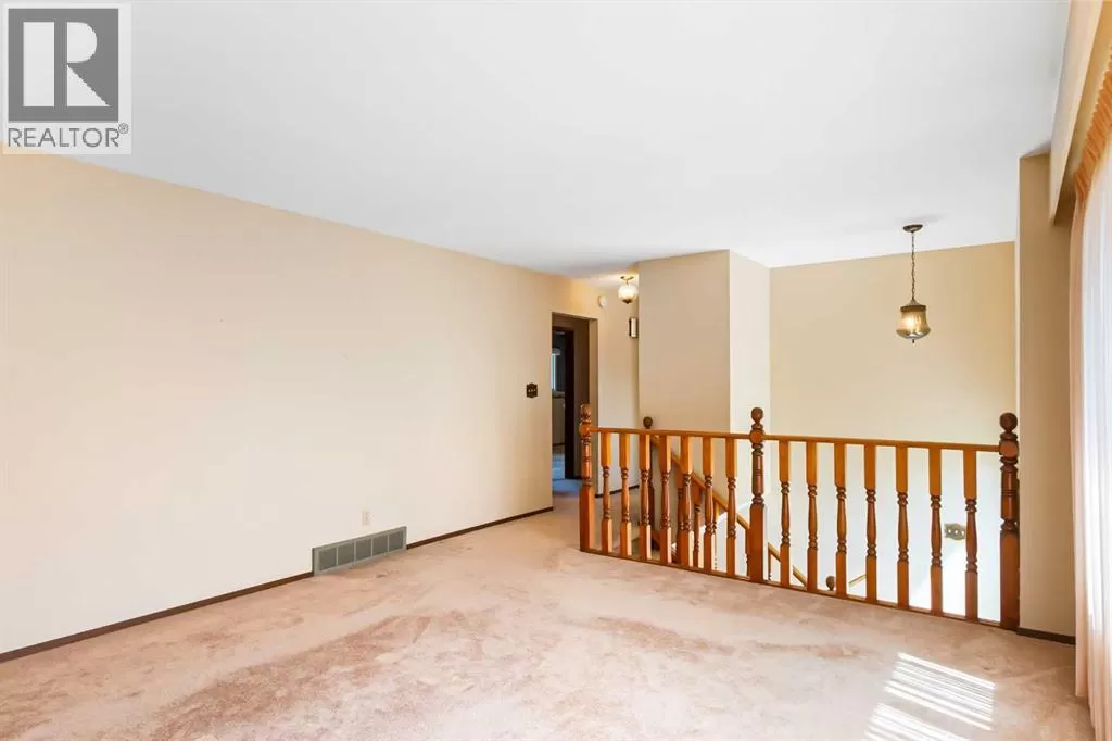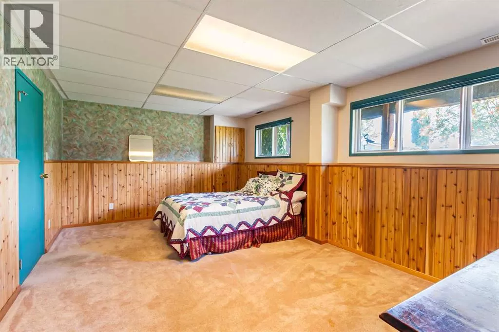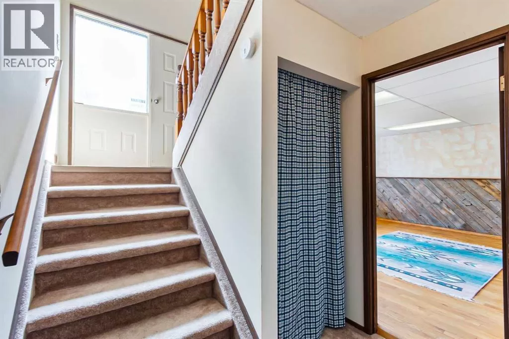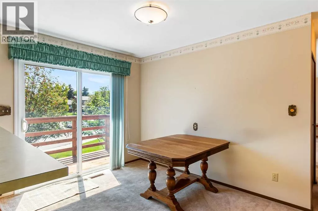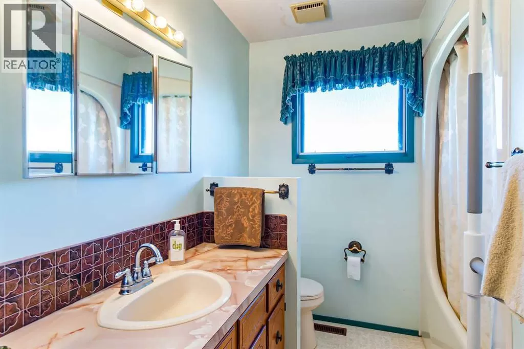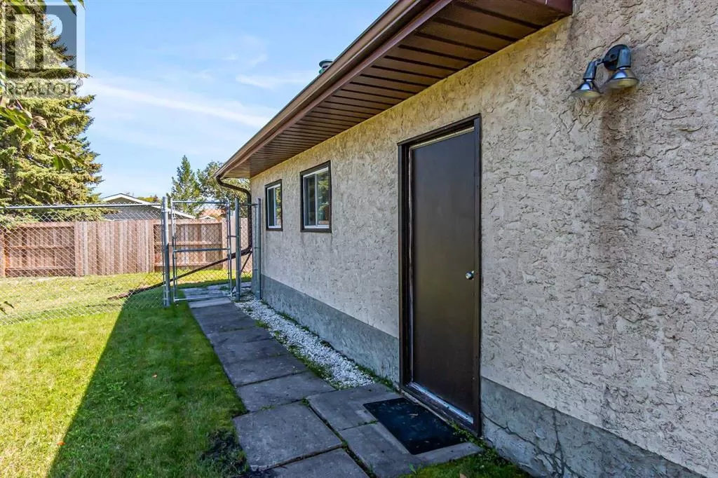 Discover this well maintained 1,178 sq. ft. bi-level home, ideally located in a desirable neighborhood with convenient access to amenities and scenic surroundings. The main floor boasts a spacious living room, dining area, and kitchen. Step outside to a south facing balcony off the kitchen and dining area, or enjoy the large deck off the 2nd bedroom. The primary bedroom and two full bathrooms complete the main living level. The fully finished basement offers even more living space, including a good-sized bedroom, a large recreation room with a cozy wood-burning fireplace, a den, a 3-piece bathroom, and a laundry/storage room with ample storage. A separate basement entrance from the garage adds for extra convenience. The garage has two doors with with 2 openers. Set on a large, irregularly-shaped lot with back-alley access, the backyard backs onto serene farmland, offering privacy and scenic views. The back yard also has ample room for parking. This home blends comfort, functionality, and charm, making it a perfect choice for families or anyone seeking a versatile living space in a great location. (id:27476)