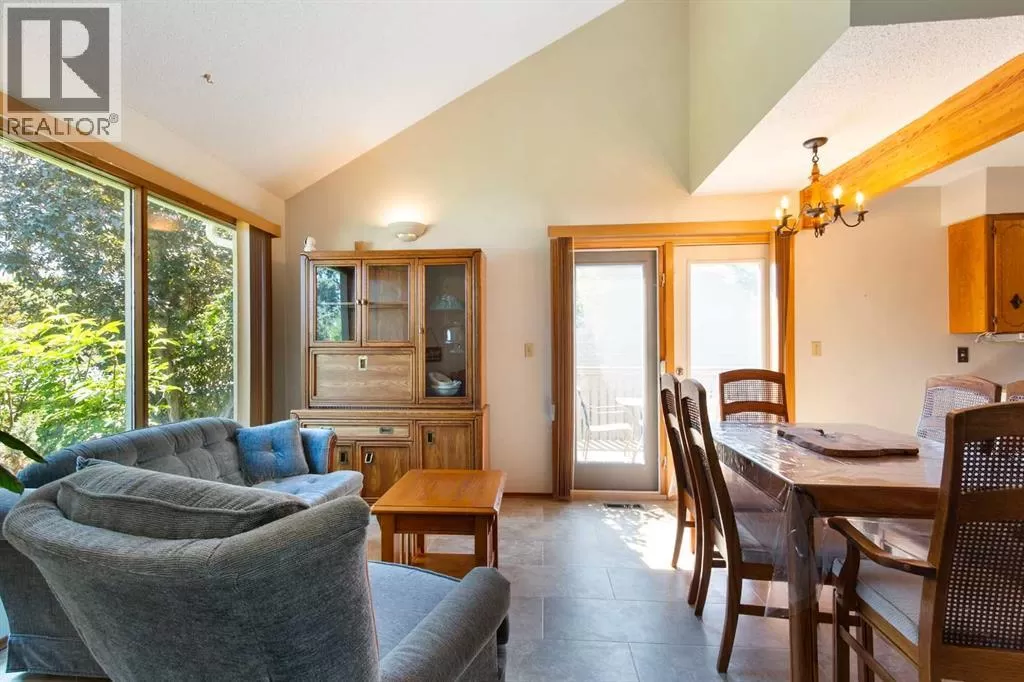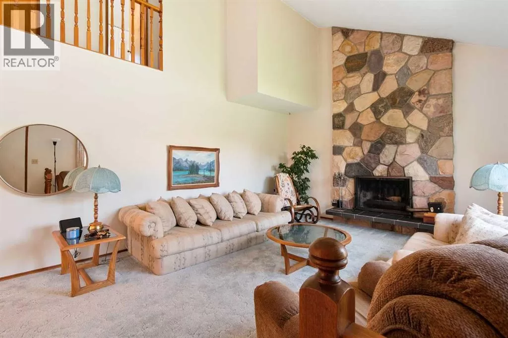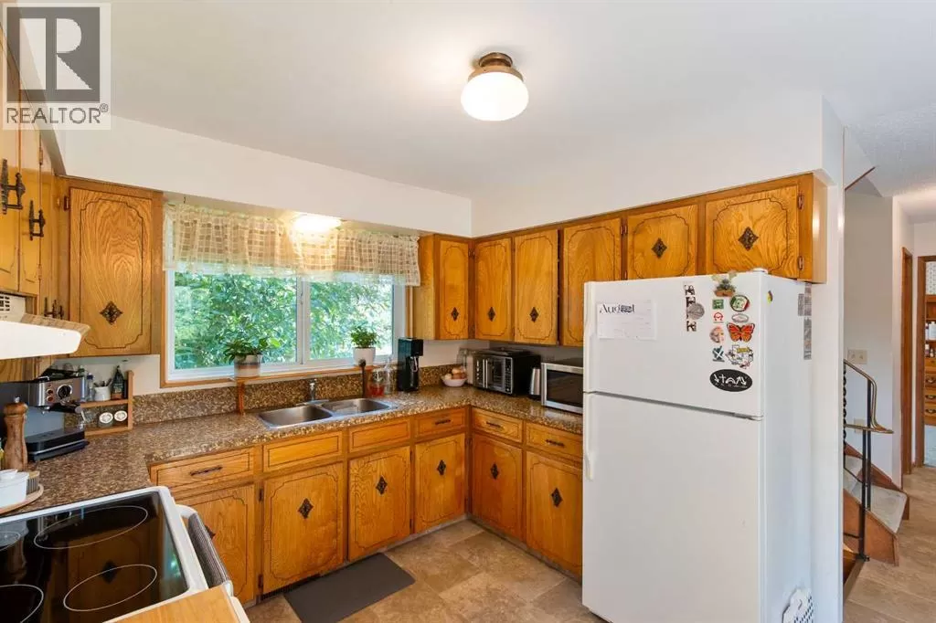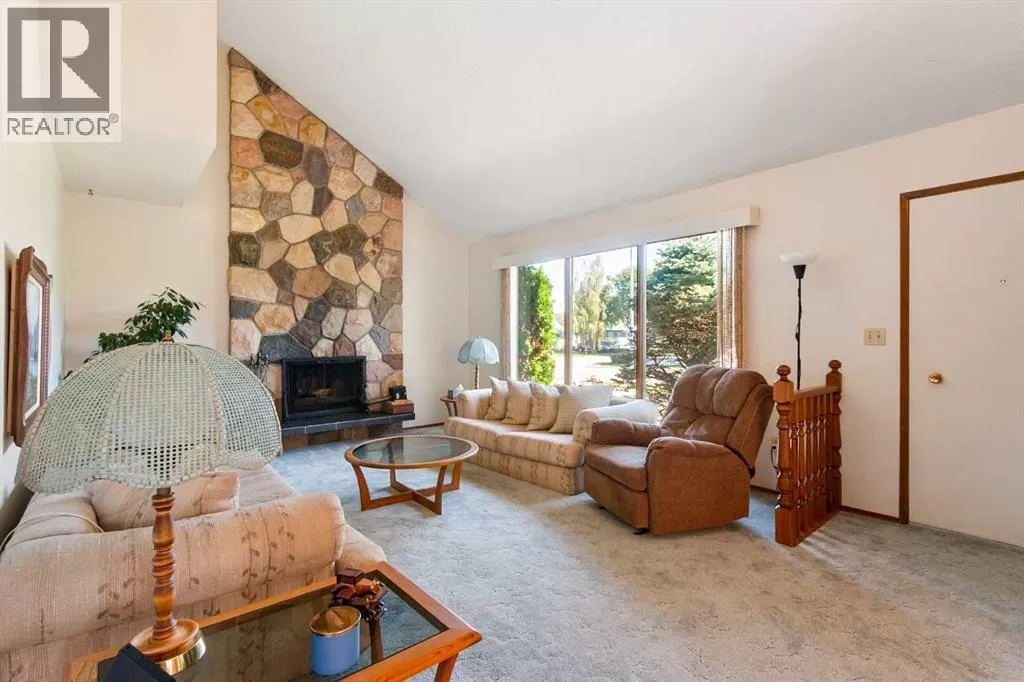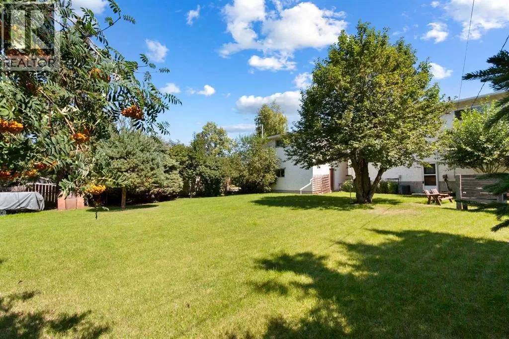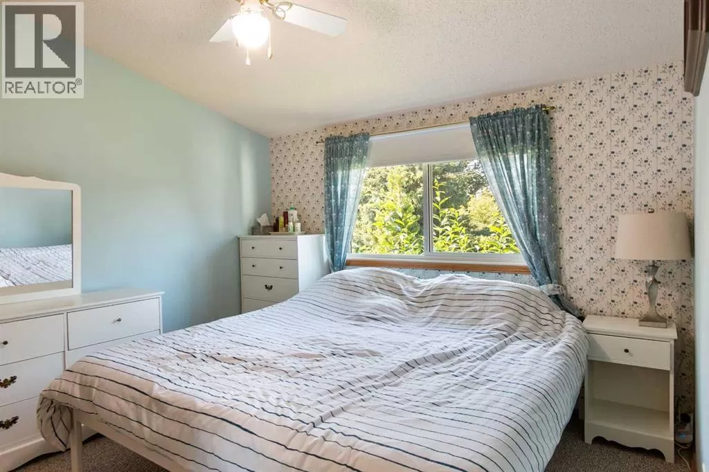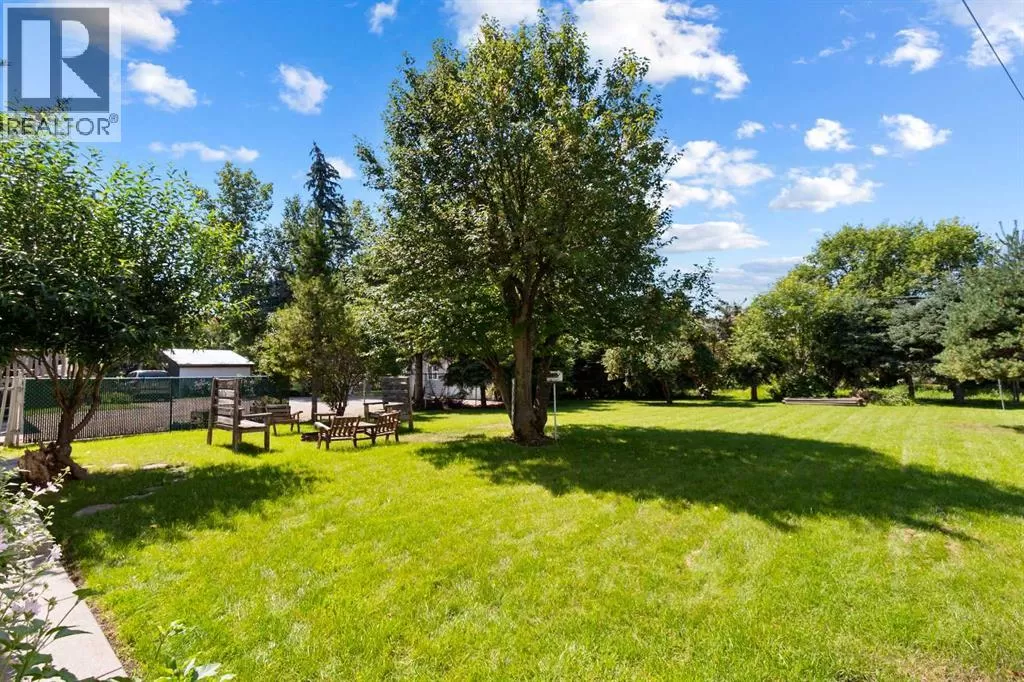 Welcome to this warm and inviting 1.5-storey home offering 1,263 sq. ft. of well-designed living space in a highly desirable part of townâjust a short walk to the Elementary and Middle Schools. The main level features a spacious living room with a cozy wood-burning fireplace, a large dining room with direct access to the back deck, a well-appointed kitchen, a convenient two-piece bathroom, and a main-floor bedroomâideal for guests or a home office. Upstairs, you'll find a generously sized primary bedroom, a full four-piece bathroom, and a third comfortable bedroom with plenty of natural light. The fully finished basement expands your living space with an oversized recreation room (pool table included!), abundant storage options, and a dedicated utility/laundry room. Outside, enjoy a beautifully landscaped and partially fenced backyard that backs onto a 30-foot walkway/utility right-of-way, providing added privacy and space. The detached garage includes a loft areaâperfect for storage or a workshop. (id:27476)