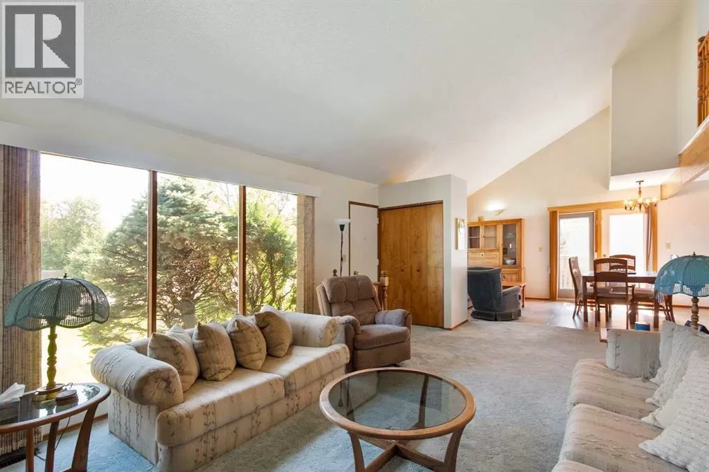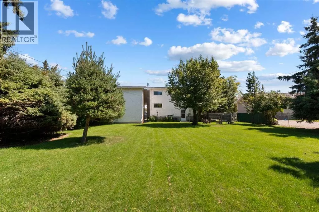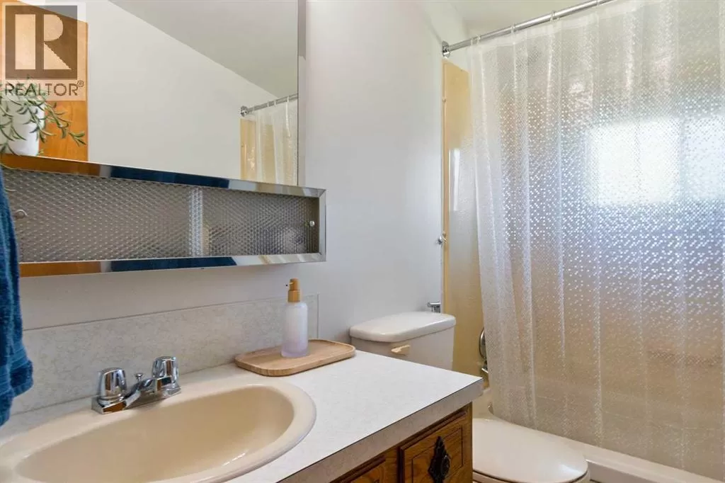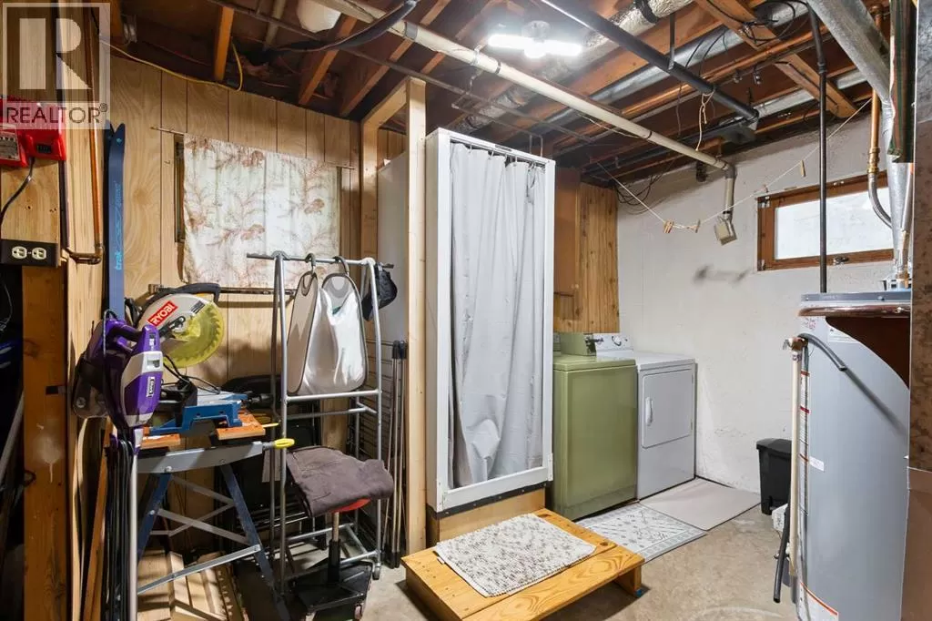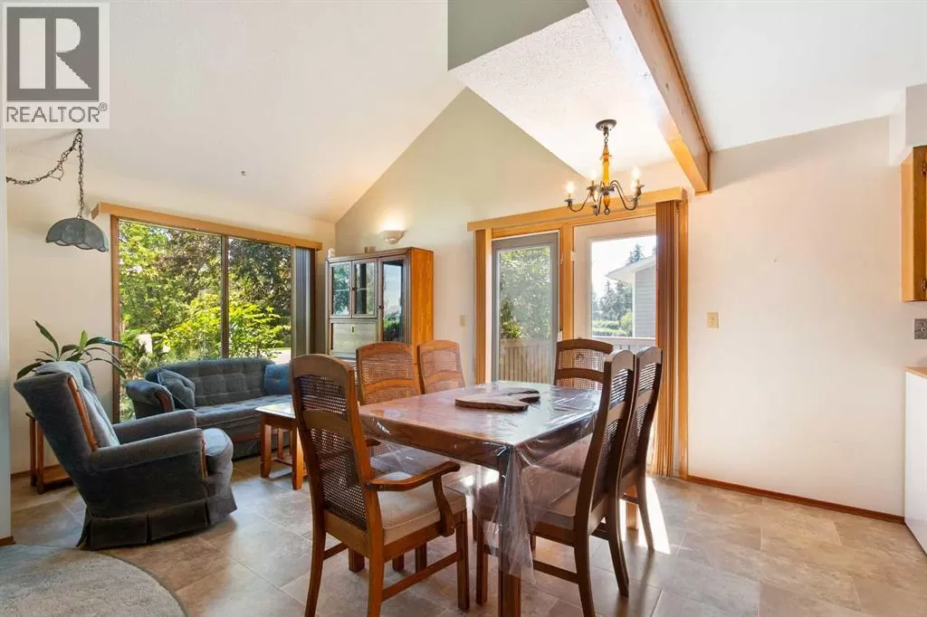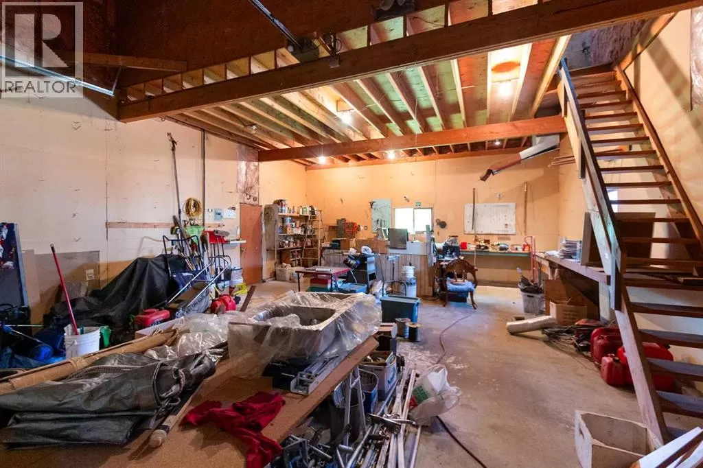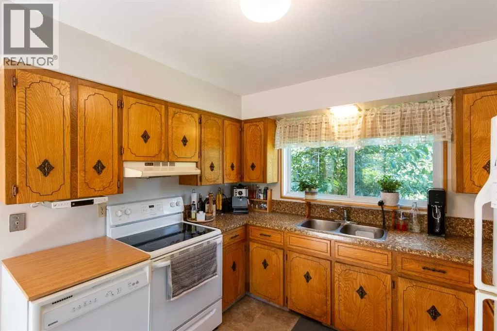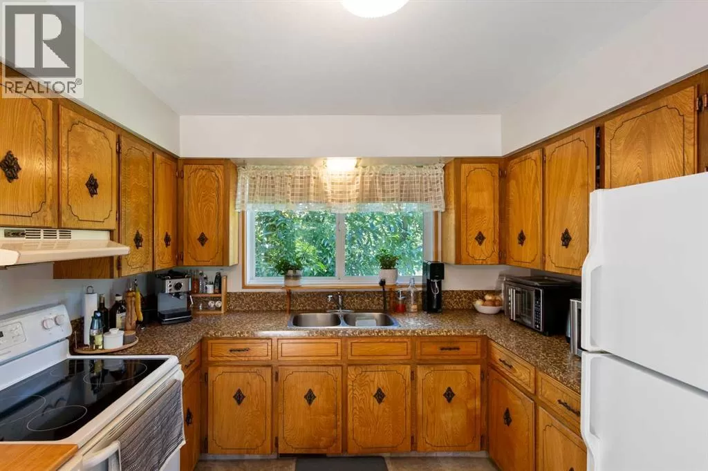 Welcome to this warm and inviting 1.5-storey home offering 1,263 sq. ft. of well-designed living space in a highly desirable part of townâjust a short walk to the Elementary and Middle Schools. The main level features a spacious living room with a cozy wood-burning fireplace, a large dining room with direct access to the back deck, a well-appointed kitchen, a convenient two-piece bathroom, and a main-floor bedroomâideal for guests or a home office. Upstairs, you'll find a generously sized primary bedroom, a full four-piece bathroom, and a third comfortable bedroom with plenty of natural light. The fully finished basement expands your living space with an oversized recreation room (pool table included!), abundant storage options, and a dedicated utility/laundry room. Outside, enjoy a beautifully landscaped and partially fenced backyard that backs onto a 30-foot walkway/utility right-of-way, providing added privacy and space. The detached garage includes a loft areaâperfect for storage or a workshop. (id:27476)