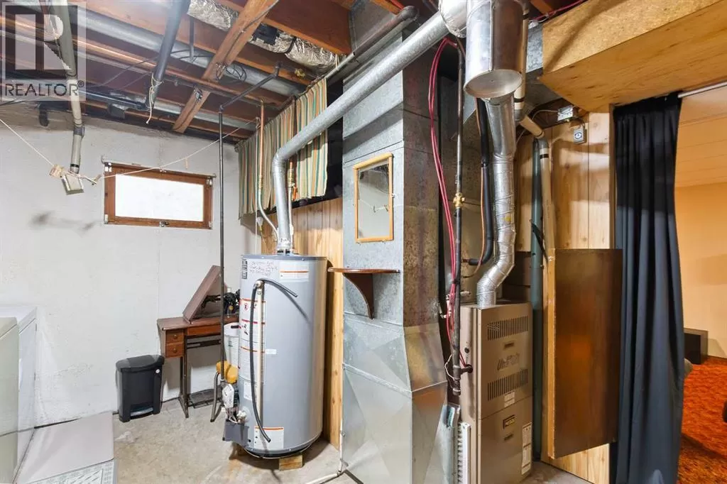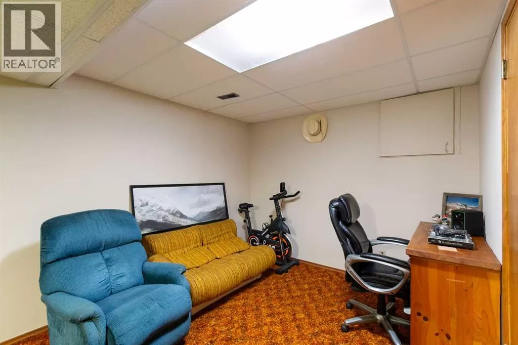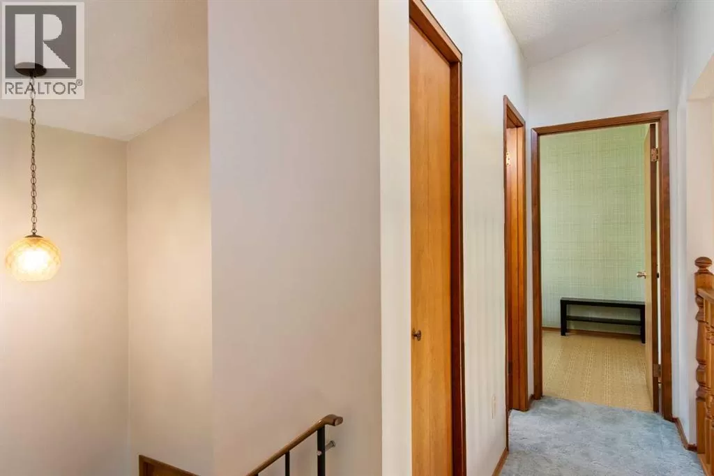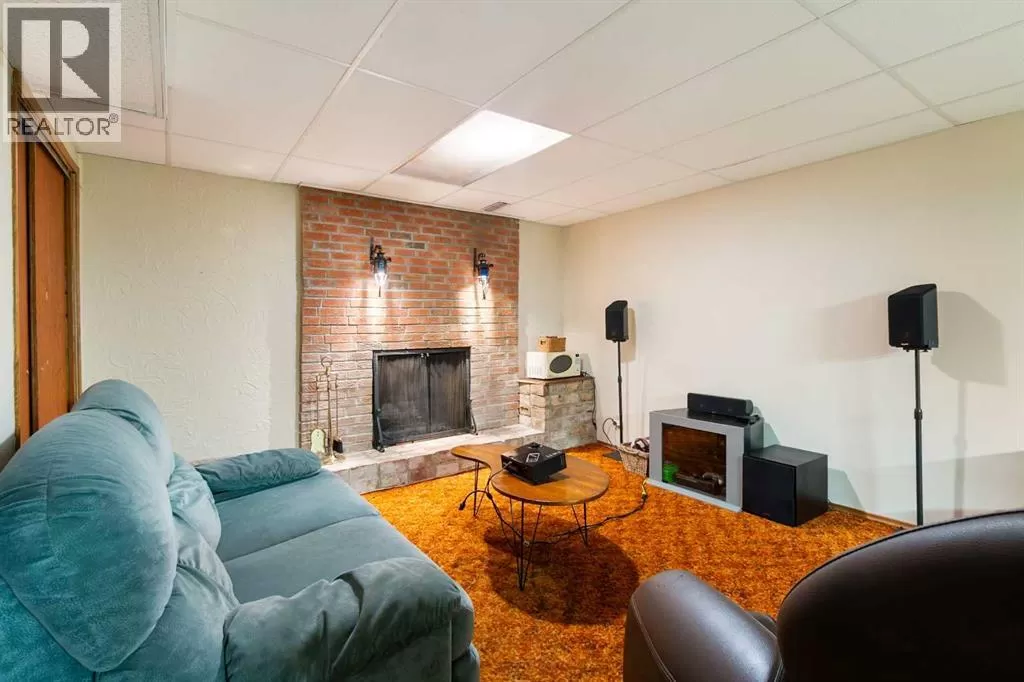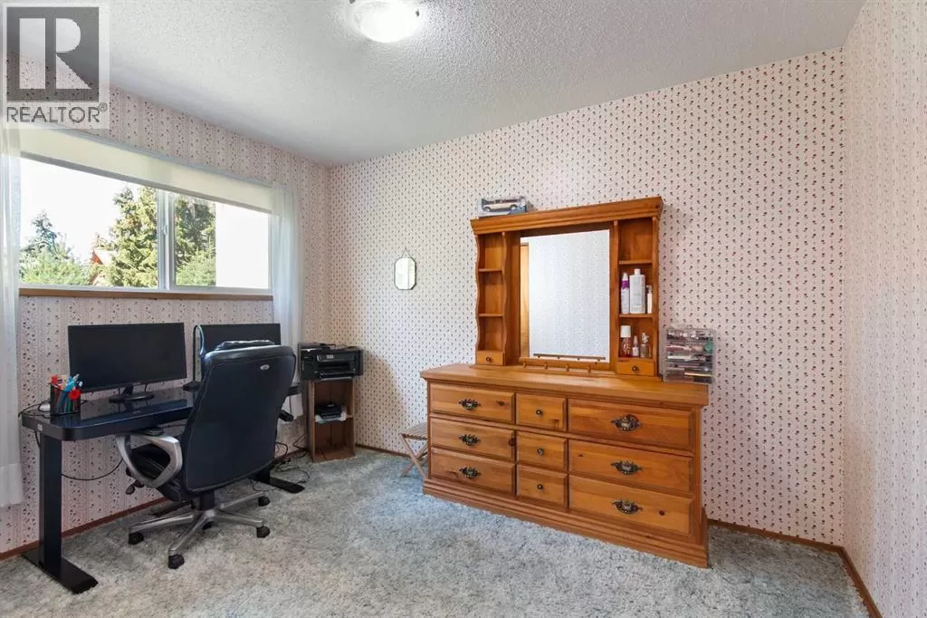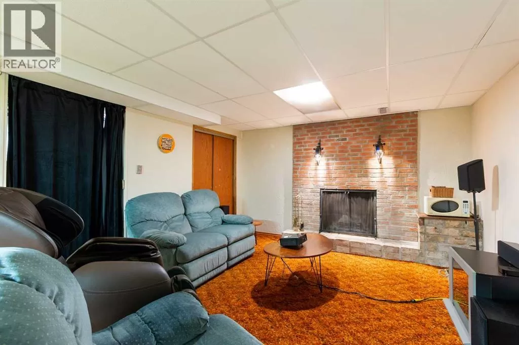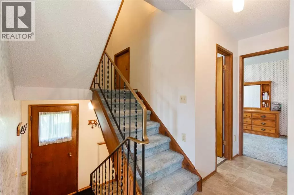 Welcome to this warm and inviting 1.5-storey home offering 1,263 sq. ft. of well-designed living space in a highly desirable part of townâjust a short walk to the Elementary and Middle Schools. The main level features a spacious living room with a cozy wood-burning fireplace, a large dining room with direct access to the back deck, a well-appointed kitchen, a convenient two-piece bathroom, and a main-floor bedroomâideal for guests or a home office. Upstairs, you'll find a generously sized primary bedroom, a full four-piece bathroom, and a third comfortable bedroom with plenty of natural light. The fully finished basement expands your living space with an oversized recreation room (pool table included!), abundant storage options, and a dedicated utility/laundry room. Outside, enjoy a beautifully landscaped and partially fenced backyard that backs onto a 30-foot walkway/utility right-of-way, providing added privacy and space. The detached garage includes a loft areaâperfect for storage or a workshop. (id:27476)