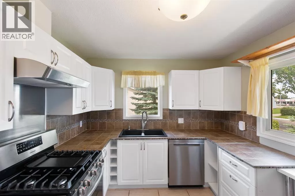 Beautifully Updated 2+2 Bedroom Bungalow in Prime Location! Well-maintained bungalow featuring numerous upgrades over the past 12 years, including a new kitchen, updated flooring, countertops, paint, and some new windows. Bright and functional main floor with two bedrooms and a modern kitchen with a gas stove. Fully developed basement includes a large family room featuring a wood burning stove, one bedroom, 3 pc bathroom with a huge shower, and windows that meet egress requirements. 4th bedroom in the basement - currently set up as walk-in closet. Furnace, hot water on demand, sump pump are also updated. Fenced rear yard is private and includes room for an RV. Double detached garage is heated (propane - which could easily be converted to gas) Additional updates include 2024 garage shingles replaced and shed added for extra storage. Situated on a quiet street, close to schools and amenities, this home offers excellent value for families or investors. Call your favourite realtor for a private showing today. (id:27476)