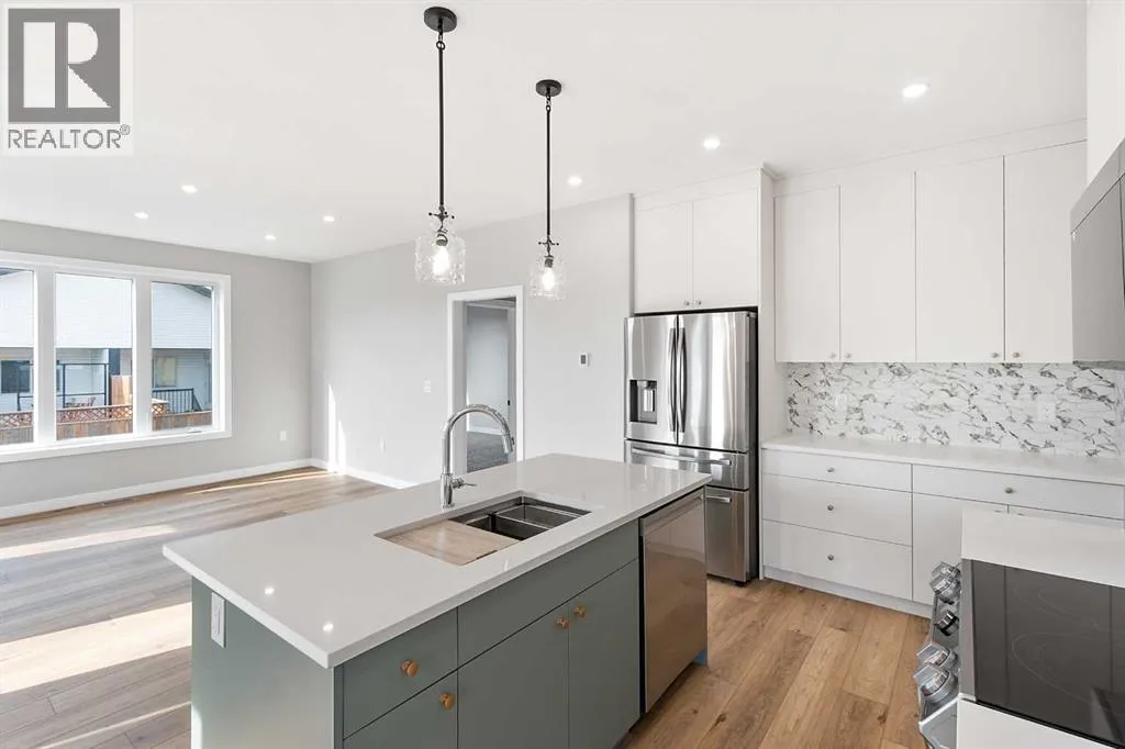 Welcome to this beautifully crafted newly completed bungalow, offering style, space, and incredible income potential with a fully legal basement suite featuring its own private entrance. The main floor boasts a bright and open layout, complete with a spacious primary bedroom featuring a walk-in closet and a private 3-piece ensuite. An additional generously sized bedroom, a four-piece main bathroom, and a convenient main floor laundry room offer both comfort and practicality. The open-concept kitchen, living room, and dining area are perfect for entertaining, with direct access to the back deck and yardâideal for outdoor gatherings and relaxing evenings. The legal basement suite has its own separate side entrance, making it perfect for extended family or rental income. Downstairs, you'll find two spacious bedrooms, a full 4-piece bathroom, a large kitchen and rec room, plus a dedicated laundry area. A large utility room and ample storage space round out this well-designed legal suite. The yard is complete with grass and a tree. Whether you're looking for a multi-generational home, a mortgage helper, or an excellent investment opportunity, this property delivers on all fronts. (id:27476)