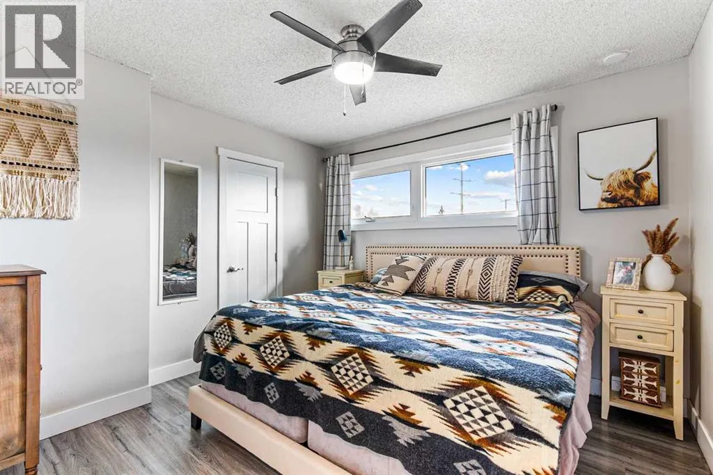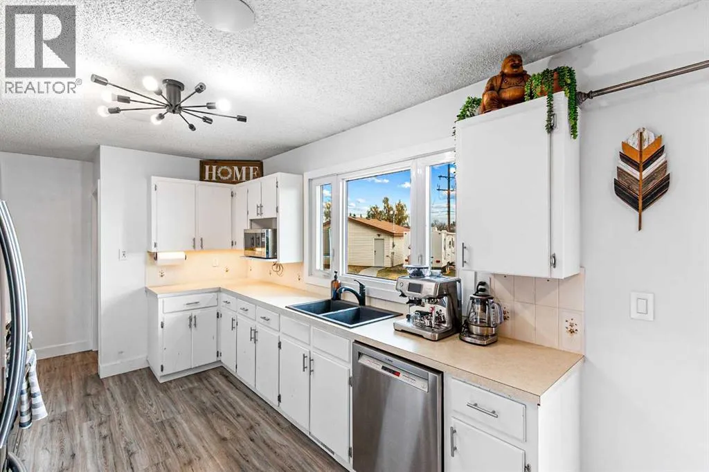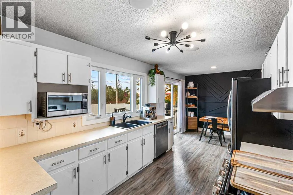 Welcome to this beautifully updated 5-bedroom, 2-bath bungalow located in a quiet cul-de-sac on a massive lot. With 1,146 sq.ft above grade and a professionally finished basement by Normark Homes, this home is ideal for families seeking space, comfort, and quality updates. The main floor features a large living room with electric fireplace, bright kitchen with newer appliances, and dining area with sliding doors leading to a spacious deck and patio. Also, on the main is the primary bedroom, plus two more well-sized bedrooms and 3-piece bath with toe kick lighting. Downstairs, the fully renovated basement offers two additional bedrooms, a 4-piece bath with electric in-floor heating and toe-kick lighting, a large rec room with electric fireplace, and generous laundry/utility space. Outside, enjoy the recently re-sodded yard, vinyl fencing for privacy, RV parking, and a double detached garage that has overheat heat in it! The backyard backs onto a walkway and alley, offering extra space and separation. Recent upgrades throughout make this home truly move-in ready. Donât miss your opportunity to own a spacious, modern family home in a prime location! (id:27476)