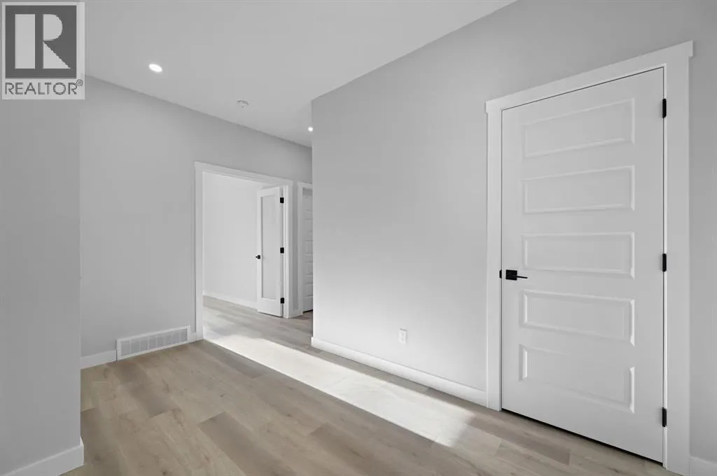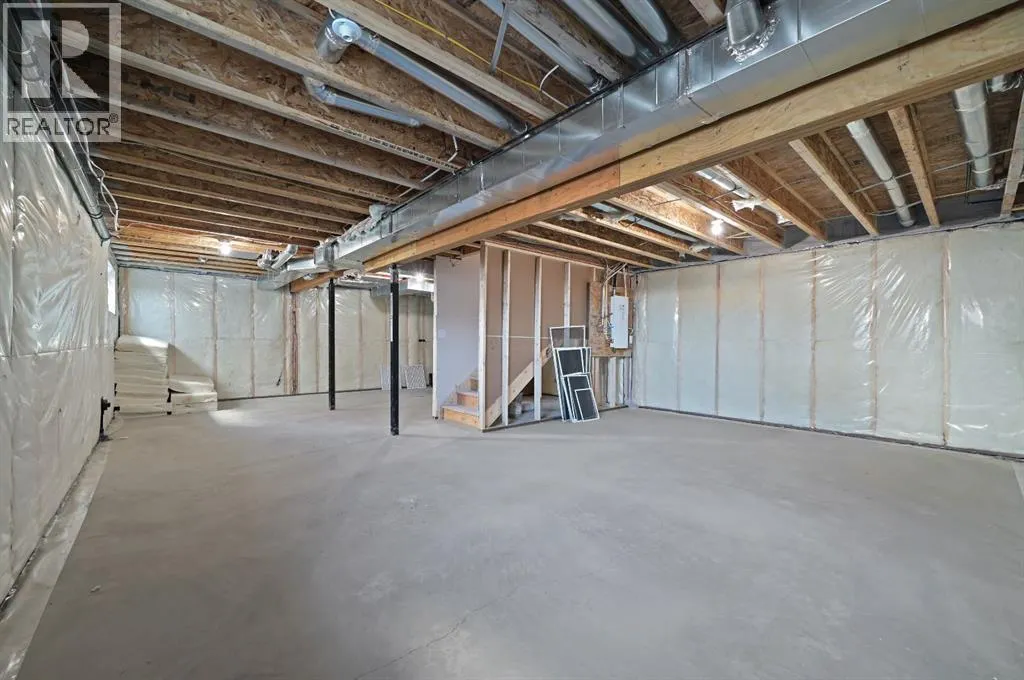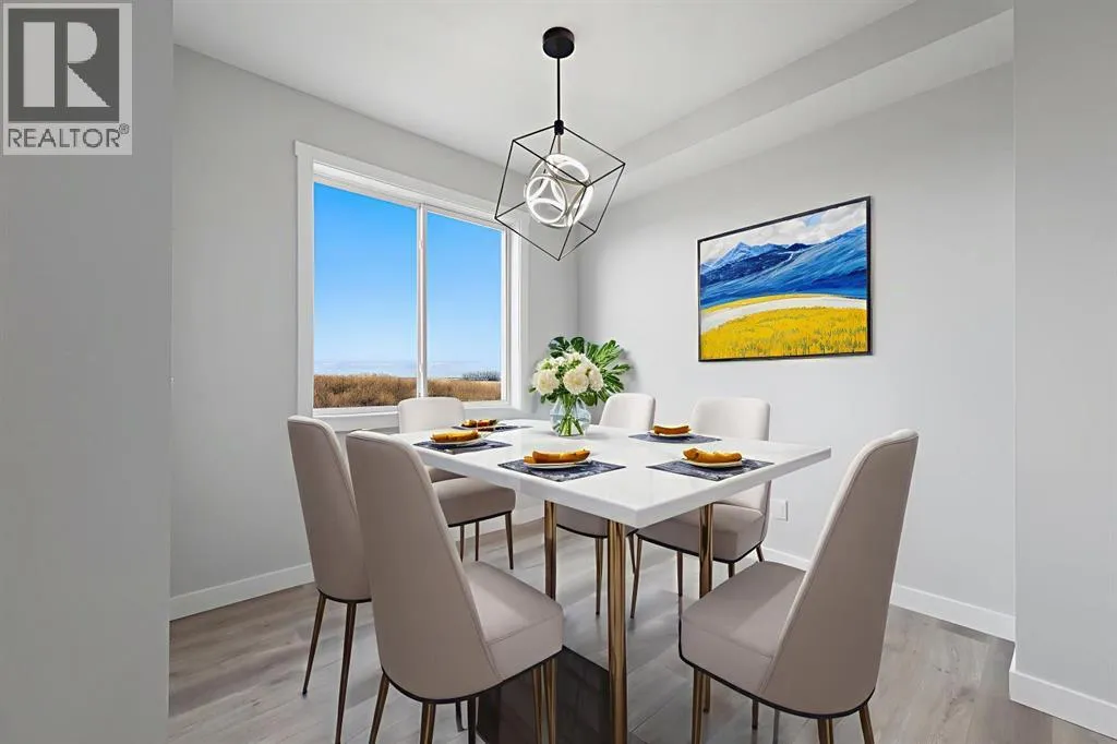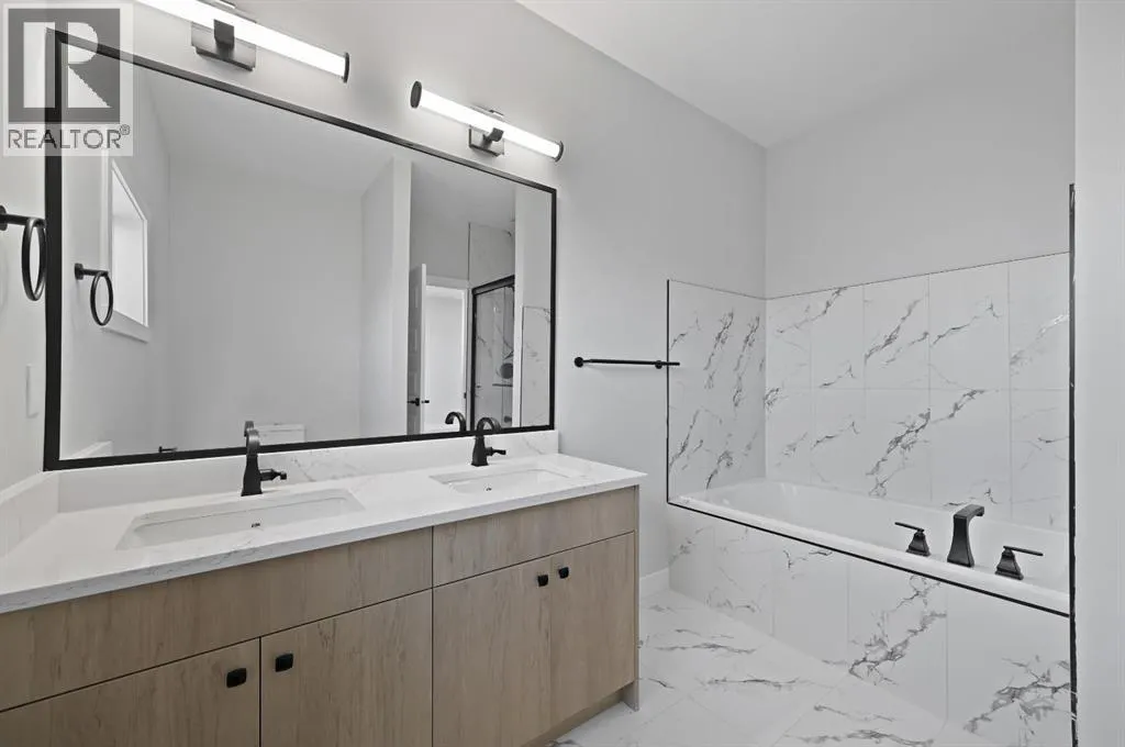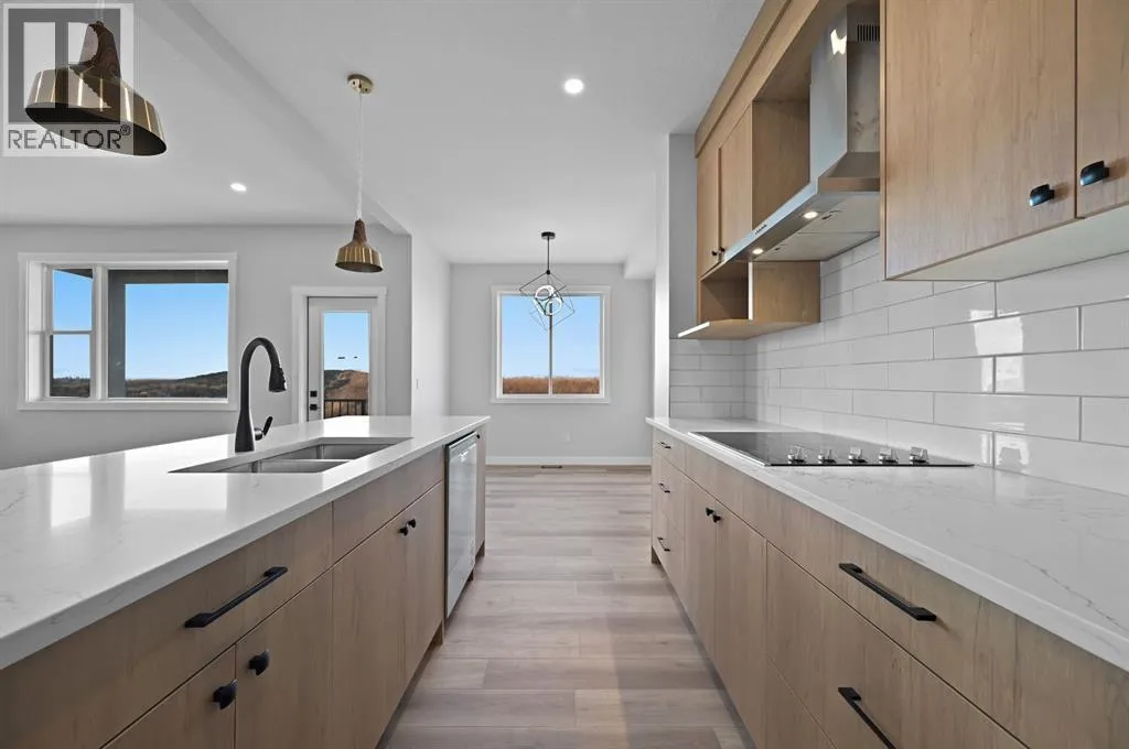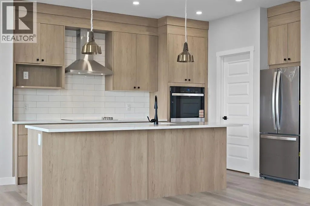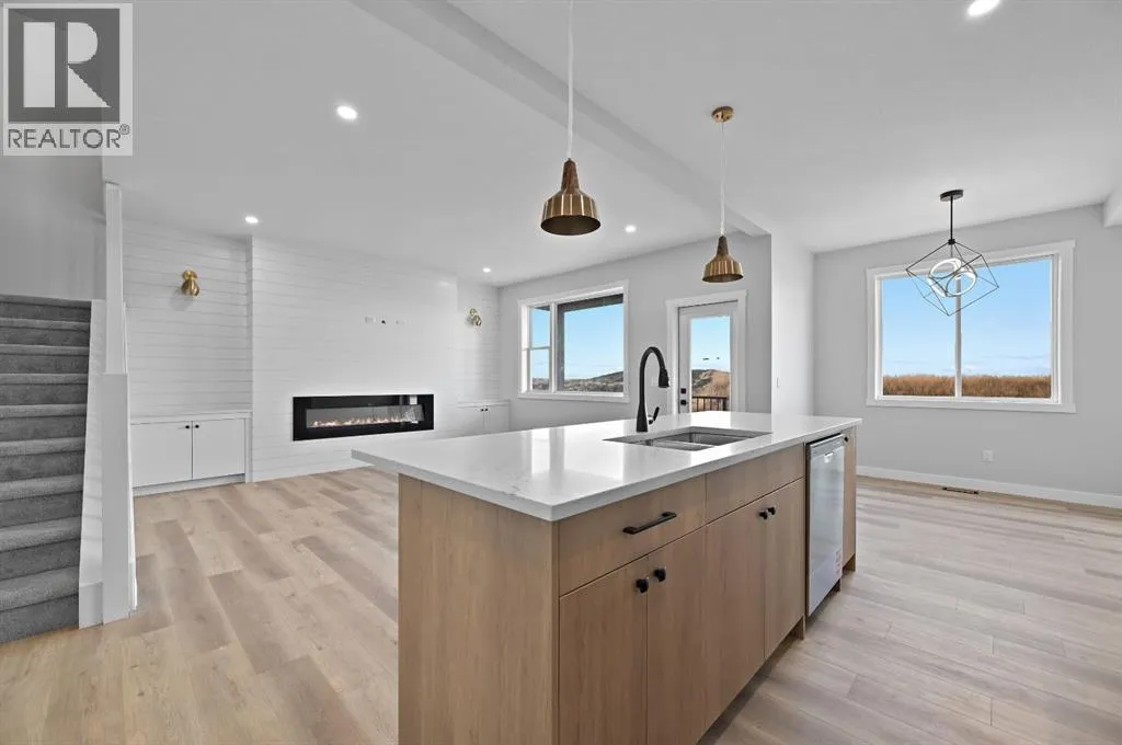 Welcome to this stunning 3-bedroom plus den, 2.5-bathroom home designed with style, comfort, and versatility in mind. From its neutral tones to its high-end finishes, every detail reflects modern craftsmanship and thoughtful design.Step inside to an inviting open-concept main floor featuring luxury vinyl plank flooring and an impressive white wood-accented wall in the family room, complete with a large remote-controlled electric fireplace and built-in speakers. The chefâs kitchen showcases white quartz countertops, elegant white tile backsplash, and contemporary cabinetry â a perfect blend of simplicity and sophistication. A bright dining area with a modern LED chandelier adds a touch of glamour, while the den with double doors provides the perfect space for a home office or guest bedroom.Upstairs, an extra-wide staircase leads to the spacious bonus room â ideal for movie nights or relaxing evenings â featuring another elegant white accent wall. The primary suite is a true retreat, boasting large windows, a generous walk-in closet, and a luxurious 5-piece ensuite with dual sinks, a soaker tub, and a striking white-and-black tiled shower. Two additional bedrooms offer ample space and natural light, complemented by soft, plush carpeting and a convenient upper-level laundry room.The home also offers a side entrance with income potential, and the basement includes rough-ins to easily add two more bedrooms in the future. Thoughtful touches like black Moen fixtures throughout elevate the homeâs luxurious feel. The triple attached garage comes equipped with gas and electrical hookups, ready for heat â perfect for Alberta winters.This home truly balances modern beauty, smart design, and functional living â ready for your family to move in and enjoy. (id:27476)