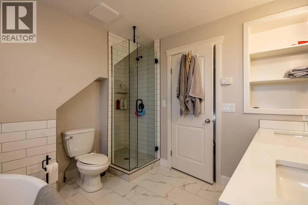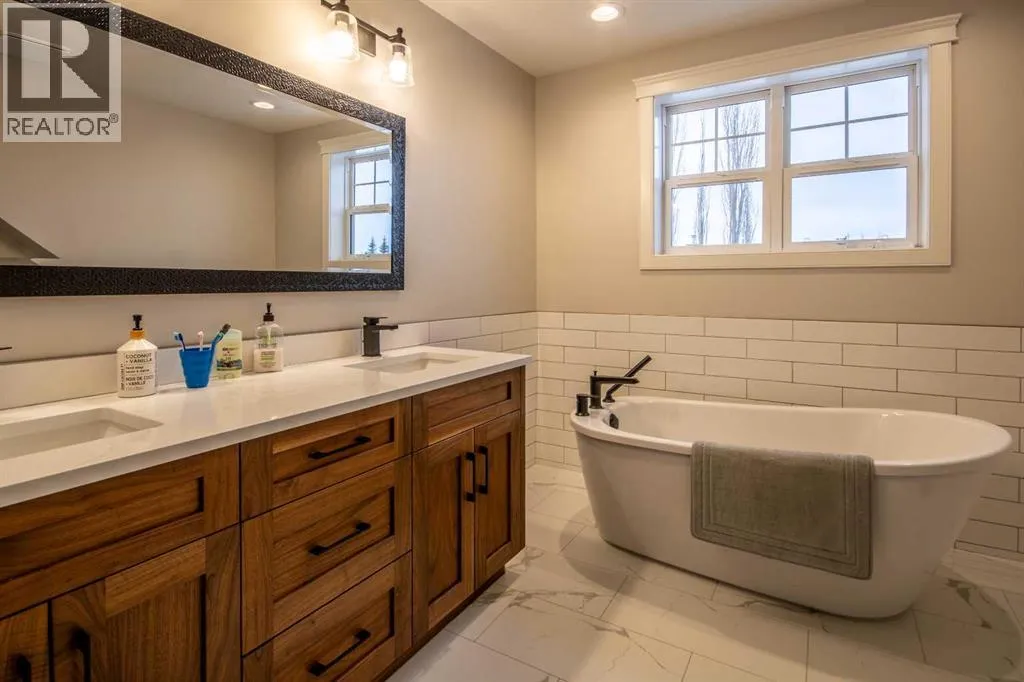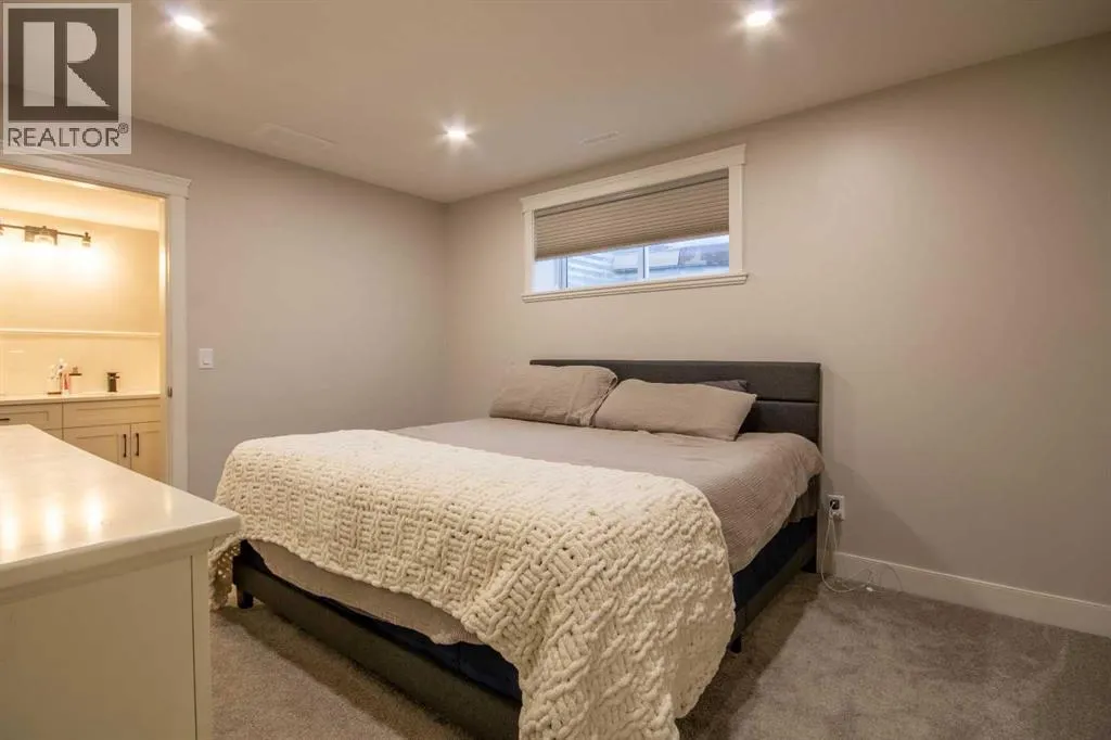 Back on market! Check out this charming, renovated home on a corner lot in a sought after Olds neighbourhood. Enjoy a private, beautifully landscaped yard with mature perennials, raised garden beds, and a paver stone deck designed for quiet outdoor living.Thoughtfully updated throughout with high end finishings, custom cabinetry, new flooring, and renovated bathrooms, this home blends classic character with modern comfort.The main floor features a renovated kitchen with custom cabinets, gas range, and large island, plus a cozy den with built ins and a window seat, main-floor laundry, and a bright sunroom overlooking the backyard. Natural light fills the home.Upstairs offers two generous bedrooms and a five piece bathroom with soaker tub. The lower level provides a cool, quiet retreat with a primary bedroom and ensuite, an additional bedroom, a rec room, and in floor heating.RV parking and an oversized single garage with tandem doors and loft storage complete this Olds charmer. (id:27476)