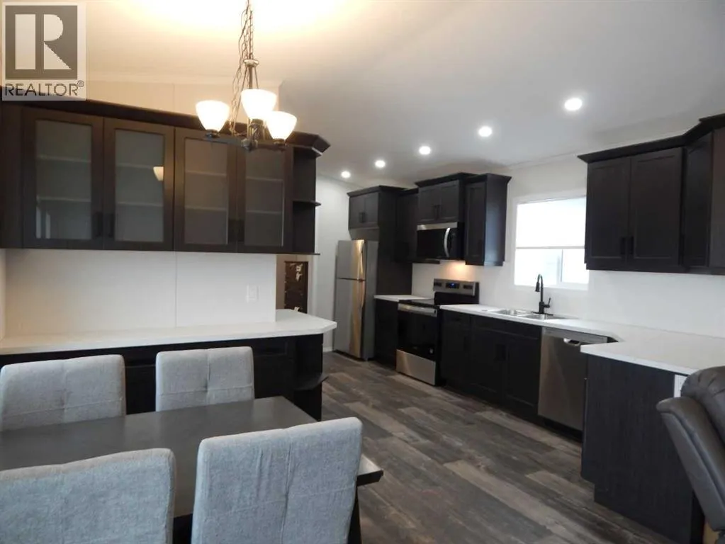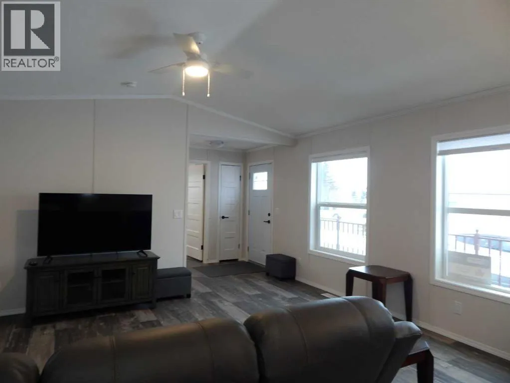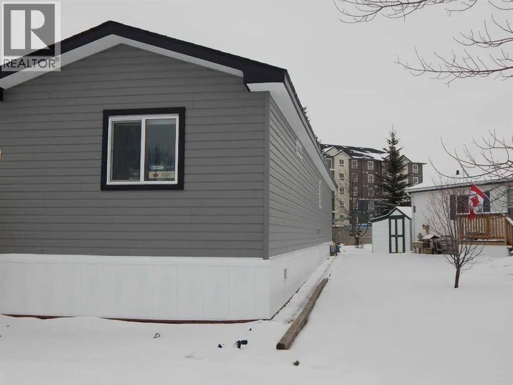 Wow! This is rare opportunity to own a NEW home in the Silverlynx adult living community. Beautiful Moduline Homes Mansura model recently was placed at it's new address of #11 5210 65 Avenue Olds. Plan to be impressed with the modern warm tones and lay out of this 2 bedroom home. The dining area and kitchen blend seamlessly with the living room making visiting easy and provides for an ideal flow. The chef of the house is sure to enjoy their brand new kitchen that is thoughtfully laid out and filled with plenty of cabinets, counter space, stainless appliances and pantry. Many windows thru-out allow for the natural light to stream in. The spacious primary bedroom with walk-in closet and a 3 pce ensuite boasting lots of cabinets, countertops and a stand alone shower stall with 2 seats. The 2nd bedroom is also well set up with a double closet and is located at the opposite end of the primary bedroom providing plenty of privacy. Conveniently set beside the second bedroom is a 4 pce bathroom. Lastly the laundry pair is found nestled in the utility room where you will find the hotwater tank and furnace as well as the back door. Outside is an oversized deck, a larger storage shed and parking pad for 2 vehicles. Conveniently located close to shopping, eateries, walking paths and numerous other amenities. Park Approval is a requirement of this park. It is a 55+ community with pet restrictions and they must be approved by Park Management. This is a modular home on a leased lot, current lot rent is $617.00/mo and 2025 taxes are $1,035.00. (id:27476)