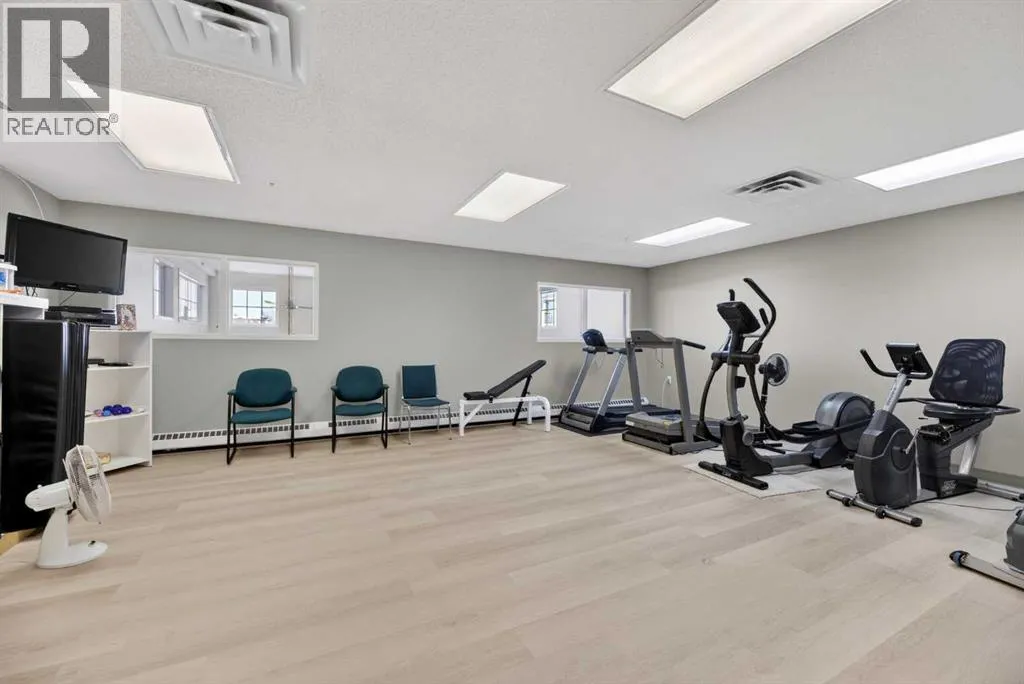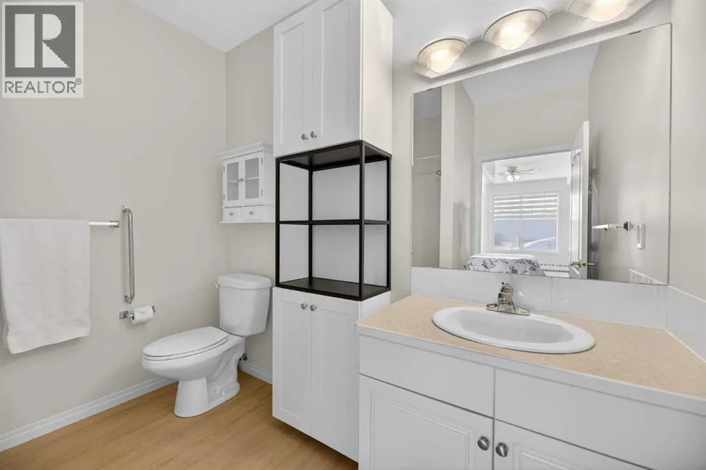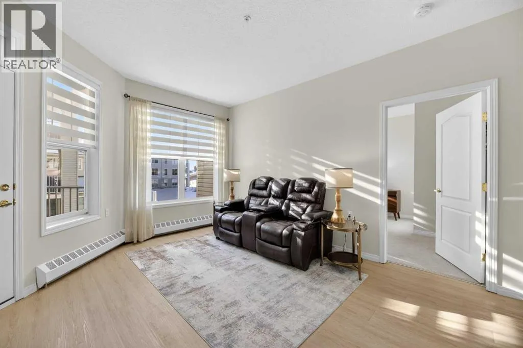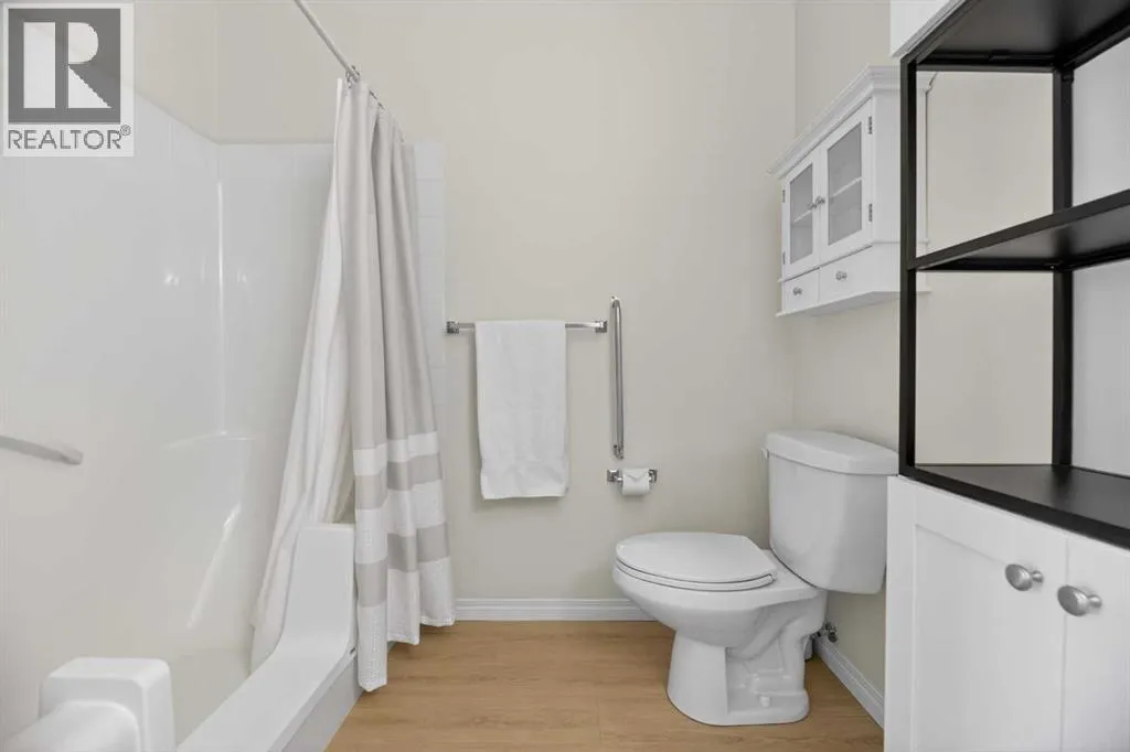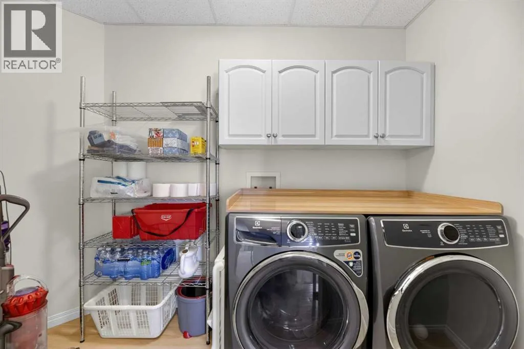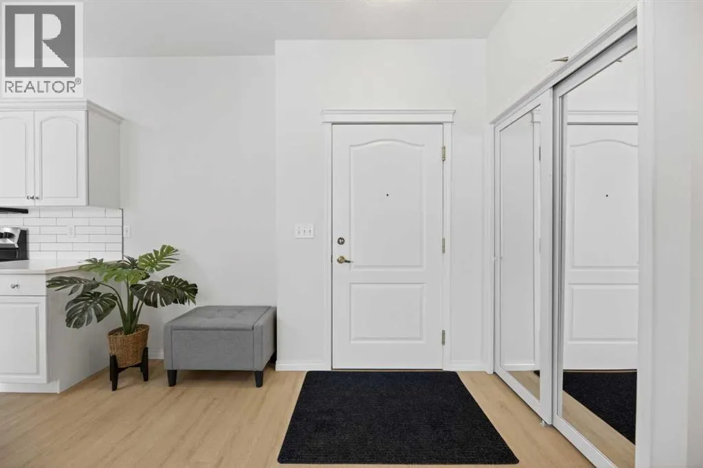 UPDATED, BRIGHT, MOVE-IN READY AND SURE TO IMPRESS LEGACY VILLAGE condo located in the HEART of Olds! Your tastefully updated & IMMACULATE second storey 2 BED + 2 BATH home with covered 9x7 balcony overlooking the west gardens/greenspace is the PRIME location in this sought-after and prestigious 55+ FRIENDLY & well-managed complex. Your new home also comes w/ ONE outdoor parking stall just steps from the front entrance. The 55+ complex has absolutely ALL of the LUXURY AMENITIES you would require including an owners' lounge with fireplace, a kitchen facility, dining room (seats 50), shuffleboard, billiards, workshop, well-equipped fitness room, puzzle/games room, library room, hair salon, and laundry facility for the bigger loads, etc... PLUS, you have access to TWO rental guest suites for only $65.00 per night when family or friends come to visit. As you enter your BRIGHT, warm and inviting condo you are greeted by a nice sized entrance with mirrored closet...your OPEN LAYOUT features the kitchen off to the side which is open to the living & dining areas that separate the bedrooms - absolute perfect set up for entertaining family & friends! Your LARGE primary bedroom retreat features a spa-like en suite w/ large walk-in tub & shower combo and extra storage cabinets. You will also love the storage your walk-in closet provides. Your second bedroom (or office) is the perfect size, and is located across from the main 3-piece bath. Enjoy the convenience of a generous sized laundry room w/ built-in cabinets, and full sized washer & dryer. The luxurious updates throughout your new home include NEW paint throughout, luxury vinyl plank, carpet, stainless steel appliances, quartz kitchen countertops, modern white subway tile back splash, beautiful spa-like washroom updates, baseboards, updated lighting, designer window coverings, outdoor sun shade on balcony, etc......YOUR NEW HOME LITERALLY HAS IT ALL! Sit back and relax whilst enjoying a nice drink on your covered bal cony that overlooks the beautiful garden area. This complex is ADULT LIFESTYLE at its absolute FINEST! Feel like being social? Each night the complex offers different social activities such as bingo, movie night, crib/cards, happy hour, etc.... Feel like going out? You are minutes away from all of the conveniences that family-friendly Olds has to offer --- grocery stores, clothing shops, restaurants, Olds College, historic theater, and all emergency services (Olds Hospital, etc.). Quick access to Highway 2, and Calgary airport is only 60 mins away! Don't miss out on the opportunity to wake up to the warmth and aesthetic pleasures of Legacy Village -- it feels like being on VACATION every single day! NOTE; CONDO FEES INCLUDE ALL UTILITIES -- PLUS CABLE!! Your unit also comes with it's own assigned storage locker! Enjoy a safe and quiet environment in your very well kept & well-managed complex-- not many units come available in this complex. You will LOVE this JEWEL OF A HOME! (id:27476)