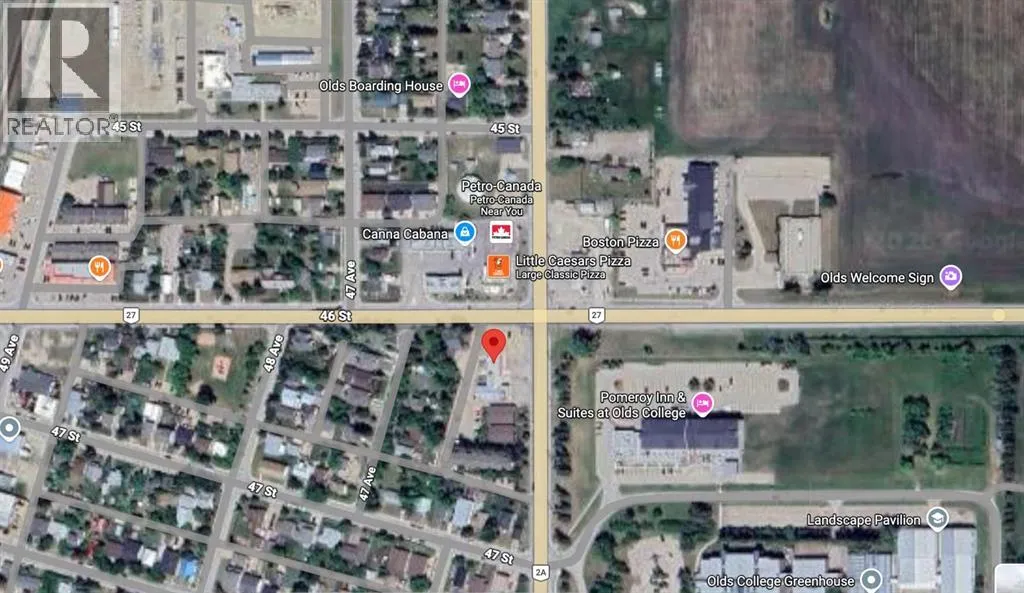 Prime commercial opportunity located at one of the busiest intersections in Olds. This ±0.65-acre CH-zoned property offers approximately 6,700 sq. ft. of commercial space with strong visibility and access. Half of the building is currently leased to a mechanic shop at $3,500/month including operating costs, with a secure lease in place until 2028 plus renewal options, providing immediate and stable cash flow. The remaining space is vacant, allowing for value-add or owner-user potential. CH zoning allows for a wide range of permitted and discretionary commercial uses, offering excellent flexibility for investors or developers. A solid income property with long-term upside in a growing market. (id:27476)