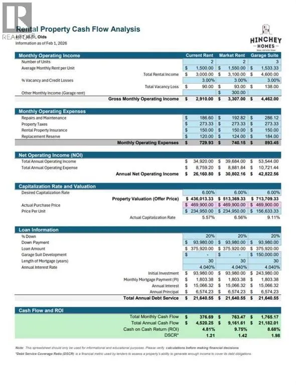 Great investor focused, cash-flowing investment opportunity. This bungalow is built for the investor who wants day-one revenue with clear upside: a fully legal basement suite plus a transferable development permit for a third suite in the garage (perfect for a room-by-room strategy with consistent rental demand tied to Olds College).Upstairs offers 3 bedrooms and 2 full baths (including ensuite). The legal basement suite includes 3 bedrooms and 1.5 baths. Both units have their own washer and dryer, and utilities plus day-to-day property care are tenant responsibility, keeping the operating model clean.Parking is a differentiator here: two off-street driveways set up private parking for each unit, with 2 stalls dedicated to the basement suite and 4 stalls plus the garage for the upper suite, plus street parking out front.Investors will appreciate the long-term optionality. The site carries higher-density zoning (historically R3, now consolidated into the Townâs Mixed Use framework), supporting future redevelopment or added density where approved. Current rents are below market, offering a straightforward path to increased cash return, and the approved garage suite adds a second lever (see attached cash flow scenarios). Finally, Olds has announced a proposed 1 GW âSynapseâ data centre development, a meaningful demand catalyst to watch as it progresses.Available vacant or fully tenanted, depending on your strategy. (id:27476)