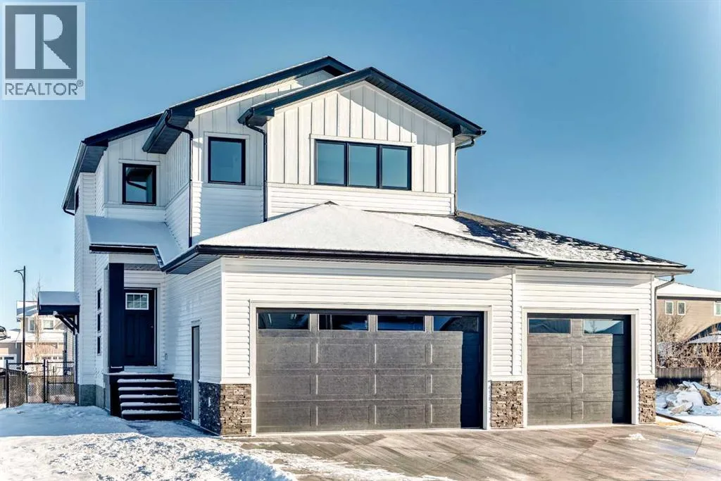 Welcome to this stunning, newly built 2-storey home that combines modern style with plenty of room for the entire family. Situated in a desirable and expanding community, this property offers eye-catching curb appeal along with well-thought-out interior features throughout, just steps from schools, beautiful walking paths, parks, and shopping centres. As you enter, youâre greeted by a spacious front foyer that opens into a bright, open-concept main floor. The inviting living room features a cozy fireplace and flows seamlessly into the dining area and contemporary kitchen, ideal for hosting family and friends. The kitchen showcases a large island, stylish finishes, and a convenient walk-through pantry. Just beyond the pantry, a generous mudroom provides direct access to the garage for added practicality. Upstairs, youâll find two well-sized bedrooms, a 4-piece main bathroom, and a convenient upper-floor laundry room. A spacious bonus/flex room offers additional versatility, perfect for a home office, playroom, or media space. The elegant primary suite includes a walk-in closet and a spa-inspired 5-piece ensuite complete with dual sinks, a relaxing soaker tub, and a separate shower. The basement is fully finished and features a separate side entrance. Basement is finished with another bedroom, full bathroom and family room area. The piping is roughed in for a wet bar or little kitchette. This home offers more than just a place to live, it provides a lifestyle. Donât miss the opportunity to enjoy a prime location with everything you need right outside your door! (id:27476)