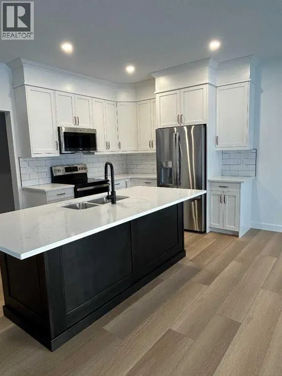 Modern Comfort Meets Thoughtful Design â Brand New Home in Olds. Welcome to 4 Williams Avenue, a beautifully crafted brand-new home offering the perfect blend of comfort, style, and convenience in the welcoming community of Olds. Thoughtfully designed with both functionality and modern living in mind, this home features 4 spacious bedrooms, 4 bathrooms, and bright open living spaces filled with natural light. The main floor welcomes you with a bright open-concept layout centered around a contemporary kitchen with a large island perfect for casual dining or entertaining. The adjoining dining area features a large west-facing patio door leading to a covered deck with a gas BBQ hookup, ideal for enjoying evening sunsets. The living room offers a warm and inviting atmosphere, perfect for relaxing or hosting guests. This level also includes a stylish 2-piece bathroom, a practical boot room, and access to the double attached garage, complete with in-floor heating, floor drain and pre-wired for an EV charger. Upstairs, the primary suite serves as a peaceful retreat, featuring a spacious walk-in closet and a sleek 4-piece ensuite. Two additional bedrooms share another well-appointed 4-piece bathroom, while a conveniently located laundry room adds everyday practicality to the upper level. The fully finished basement expands the living space even further. Built with energy-efficient ICF walls and in-floor heating, this level includes a cozy family room, a fourth bedroom, and an additional 4-piece bathroom. Throughout the home youâll find durable vinyl plank flooring and elegant quartz countertops, combining modern style with low-maintenance living. Enjoy beautiful horizon mountain views that create a stunning natural backdrop to everyday life. Built with sustainability in mind, this home is solar-ready, offering the opportunity for future energy-efficient upgrades. Located in a family-friendly community close to schools and amenities, this property offers an incredible opport unity to enjoy modern living in a growing town. Donât miss your chance, schedule your showing today and discover everything this beautiful home has to offer. (id:27476)