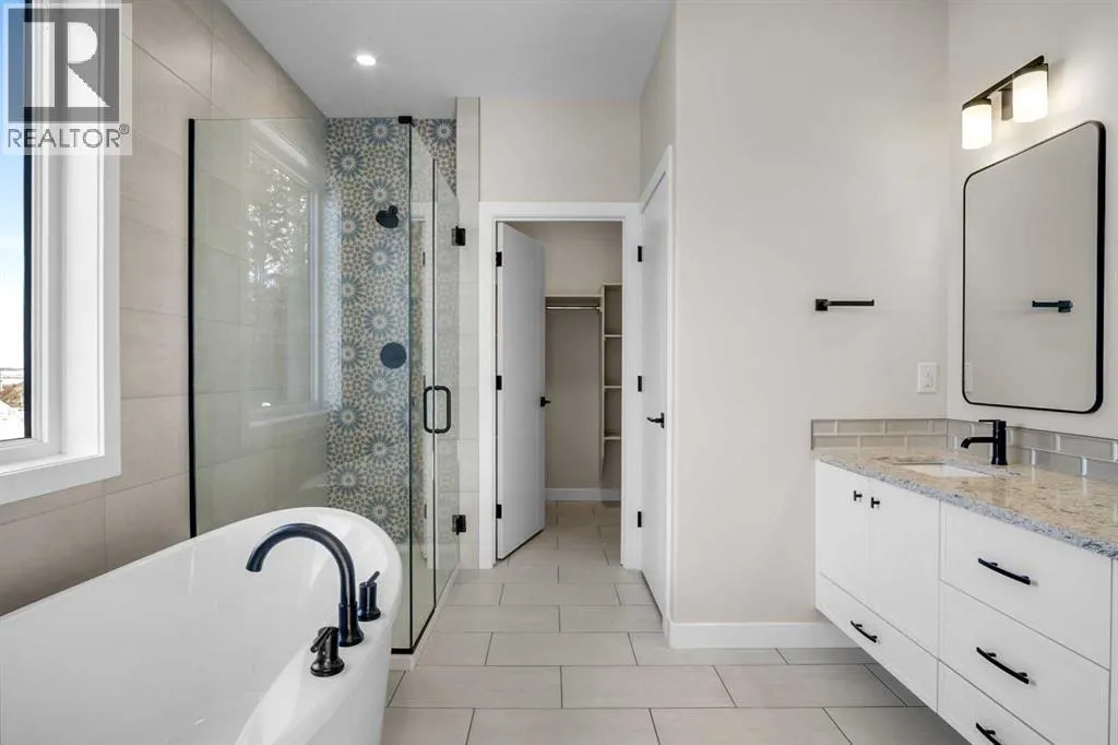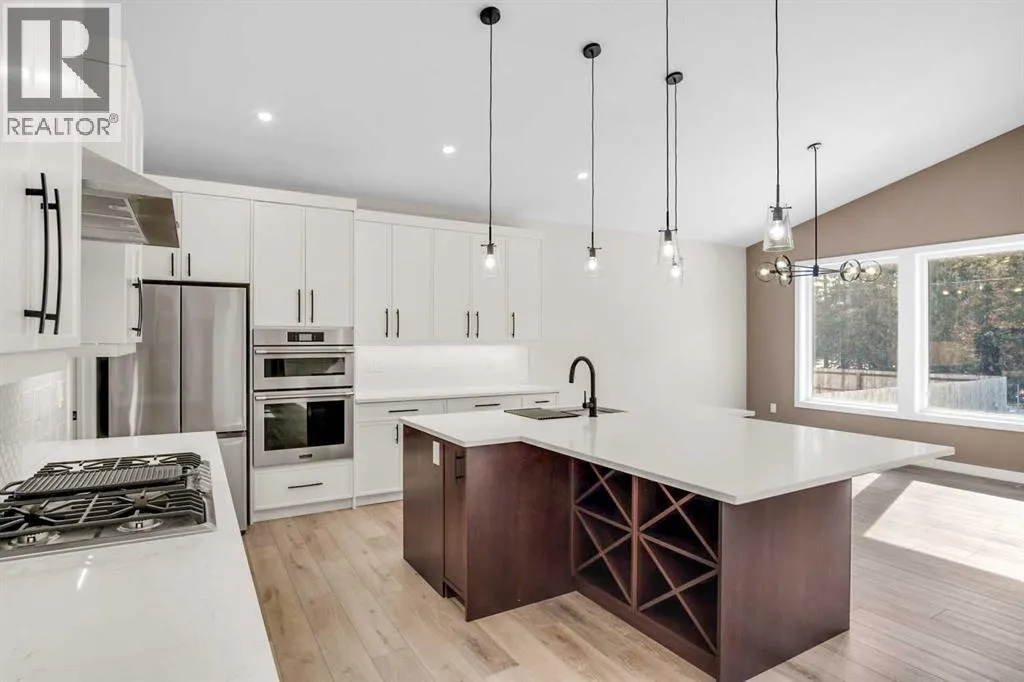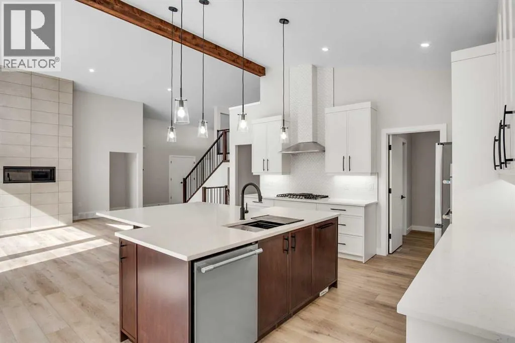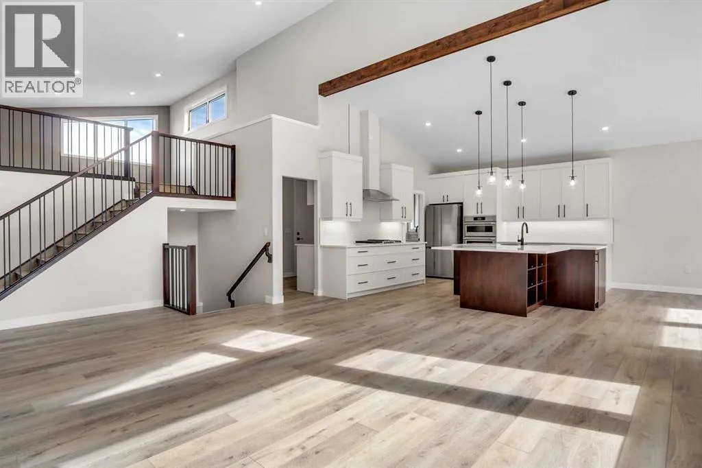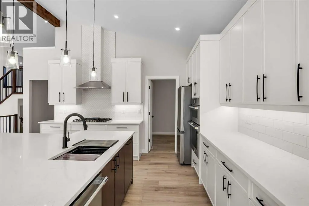Welcome to this beautifully crafted brand-new bungalow in the Vistas development. With a bonus room above the garage and backing onto a scenic walking path and Imperial Estates Acreages, this home offers both privacy and accessibility. From the moment you step through the grand 8-foot entrance door, you are welcomed into a meticulously designed 4-bedroom, 3-bathroom residence that blends contemporary style with everyday comfort. A mix of luxury vinyl plank, plush carpet, and ceramic tile flooring creates a seamless and sophisticated ambiance throughout. At the front of the home, a spacious bedroom is perfectly positioned near a beautifully appointed 4-piece bathroom, ideal for guests or a private home office. The primary suite is a sanctuary, boasting a generous walk-in closet and a luxurious 5-piece ensuite with a standalone soaker tub offering breathtaking mountain views, a dual vanity, and a separate water closet for added privacy. Above the heated triple-car garage, a versatile bonus room provides endless possibilitiesâwhether a charming playroom, a refined home library, or a serene music retreat. The gourmet kitchen is an entertainerâs dream, featuring sleek quartz countertops, a gas cooktop, double wall ovens, a built-in dishwasher, and an oversized island with seating on all sides. A butlerâs pantry, complete with a secondary sink and ample shelving, connects to the adjoining laundry room, ensuring effortless organization. The living room exudes sophistication, centered around a floor-to-ceiling tiled gas fireplace, while oversized windows flood the space with natural light. Step outside onto the no-maintenance composite deck, complete with modern railing and a gas BBQ hookup, perfect for seamless indoor-outdoor entertaining. The fully developed basement is an exceptional extension of the home, featuring 9-foot ceilings, in-floor heating, a spacious mechanical room, abundant storage, a large open living area, a stylish 4-piece bathroom, and two additional wel l-sized bedrooms. Completing this remarkable home is the heated triple-car attached garage, offering ample space for vehicles, hobbies, and storage. The front yard is beautifully landscaped with lush sod and will have a planted tree in the spring, adding to the homeâs striking curb appeal. This residence is a true masterpiece of design and craftsmanship. Donât miss the opportunity to make this extraordinary home yoursâschedule your private viewing today! (id:27476)