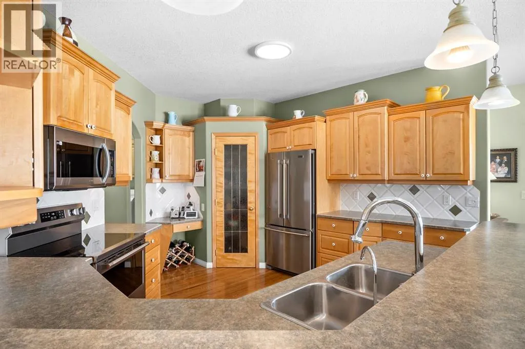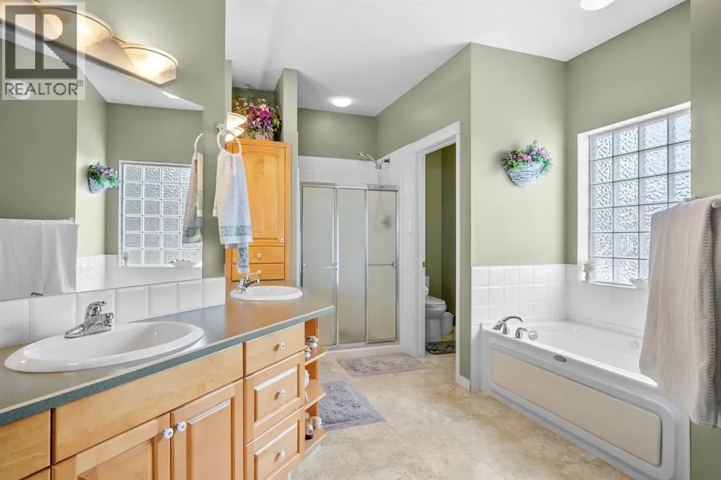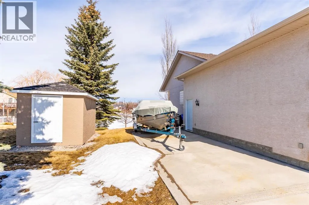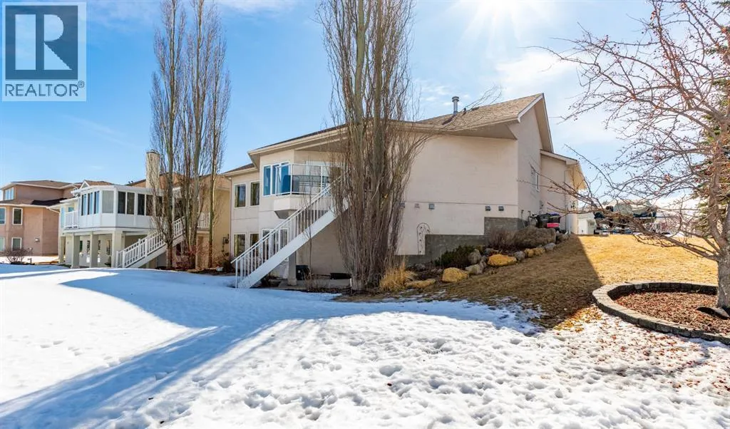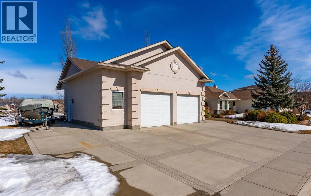 Stunning Waterfront Walkout Bungalow in Prestigious Established Community!Welcome to this exceptional, custom-built bungalow, perfectly situated in a sought-after, mature high-end neighborhood, backing directly onto picturesque waterfront and scenic walking paths. This beautifully designed home offers the perfect blend of luxury, comfort, and location. Step inside the well-appointed, flooded with natural sunlight, main level featuring a spacious open-concept layout. Main level is complete with one generous bedroom, featuring 5pc ensuite, and a versatile denâideal for a home office or guest space. The home showcases premium craftsmanship throughout, with high-end finishes and meticulous attention to detail in every room. Main floor laundry is conveniently located with access to the oversized, attached garage. The fully developed walkout basement extends your living space with two additional bedrooms, a second den, and seamless access to the stunning outdoor settingâperfect for entertaining or relaxing while enjoying tranquil waterfront views. Exterior highlights include a timeless stucco finish, an oversized double attached garage, which is perfect for 2 large vehicles, and all the toys. Garage floors were recently professionally finished with an epoxy coating, creating a clean environment in spite of the current season. Appreciate the large driveway with ample space for RV or boat parking. This home truly has it allâluxury finishes, an unbeatable location, and breathtaking surroundings. A rare opportunity you wonât want to miss. This is a must-see property. (id:27476)