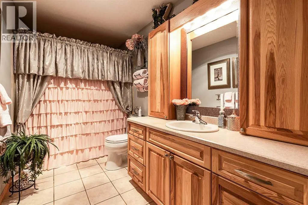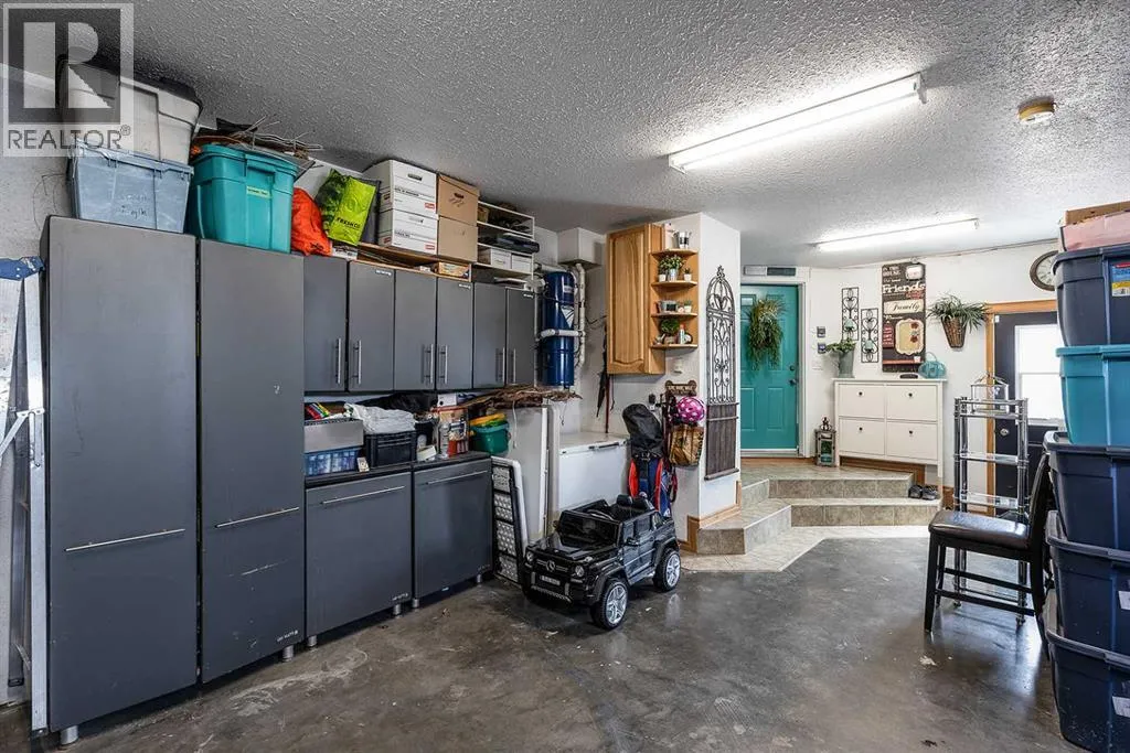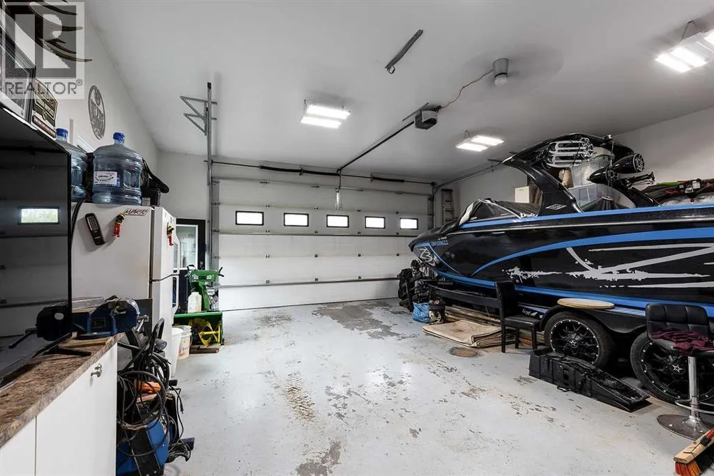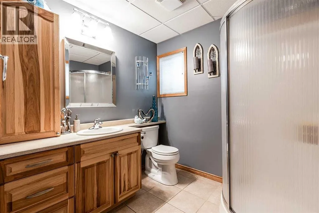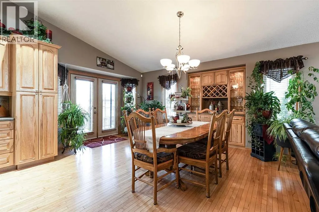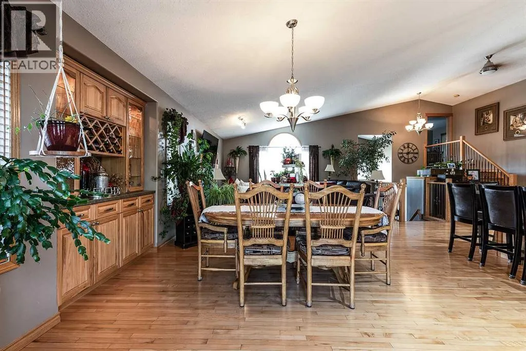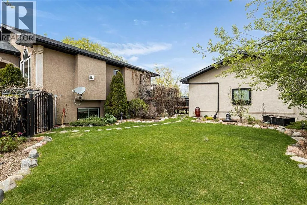 Discover luxury living in this exquisite 1940 sq ft modified bi-level residence, beautifully positioned on a generous double lot in Oyen, Alberta. Built in 2004 and meticulously maintained by its original owner, this home showcases a stunning stucco exterior complemented by new shingles, windows, and a garage door installed in 2023.Step inside to experience an inviting layout with three bedrooms on the upper level and two additional bedrooms downstairs. The highlight is the master suite above the garage, featuring a spacious walk-in closet and a 4-piece ensuite with a jetted tub and separate shower. The home's elegant interior is enhanced by radiant heated tile flooring with individual climate controls, rich hardwood, and plush carpeting in the bedrooms and lower level.Vaulted ceilings and a warm gas fireplace enrich the main living room, creating a welcoming atmosphere for relaxation and entertainment. The gourmet kitchen awaits with sleek maple cabinets, modern stainless steel appliances, and plumbing in place for a future gas stove, adding to its allure. A ready-to-install gas line for a BBQ just outside is perfect for culinary adventures.Practical amenities include an on-demand hot water system, a new central vacuum, and pre-wiring for a hot tub in the beautifully landscaped outdoor space. The fully fenced yard benefits from an underground sprinkler system, ensuring lush surroundings and easy maintenance.Completing this magnificent property are the garages: a double attached garage and a separate 28x32 detached garage, each fully insulated and heated. The attached garage features radiant floor heating, ideal for Alberta's cooler months. With ample space for vehicles, a workshop, or storage, and additional RV parking with electrical hookup, this home meets all your needs with unmatched style and functionality. (id:27476)