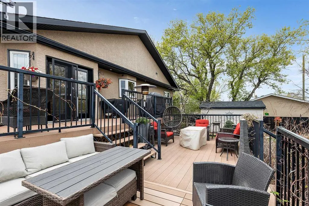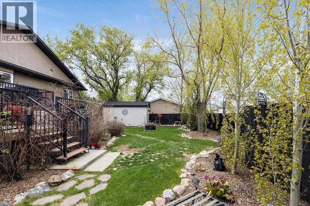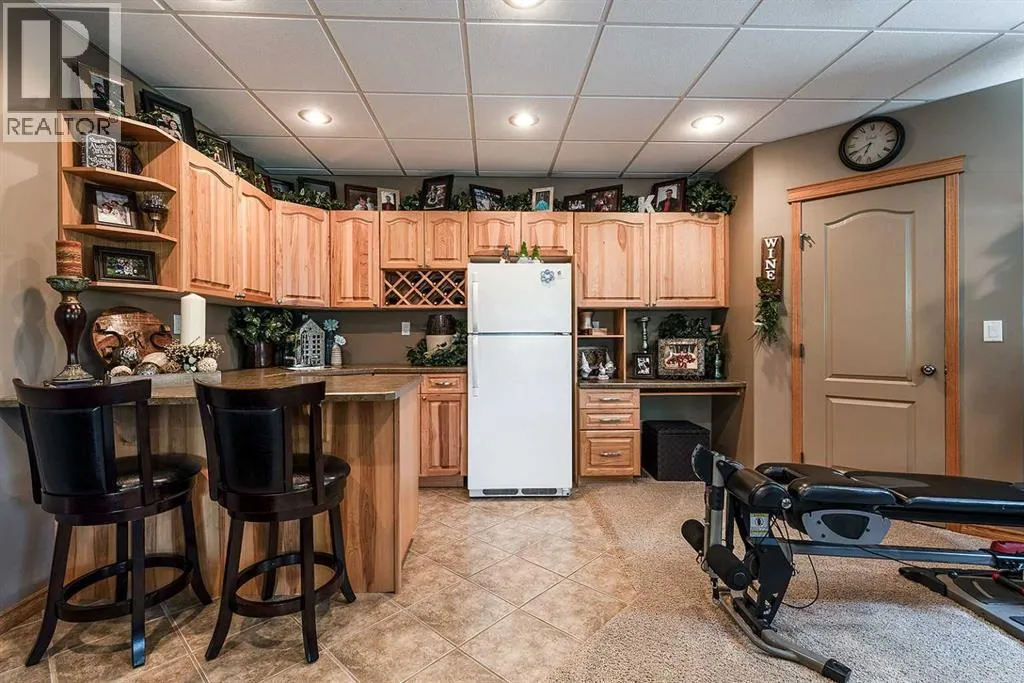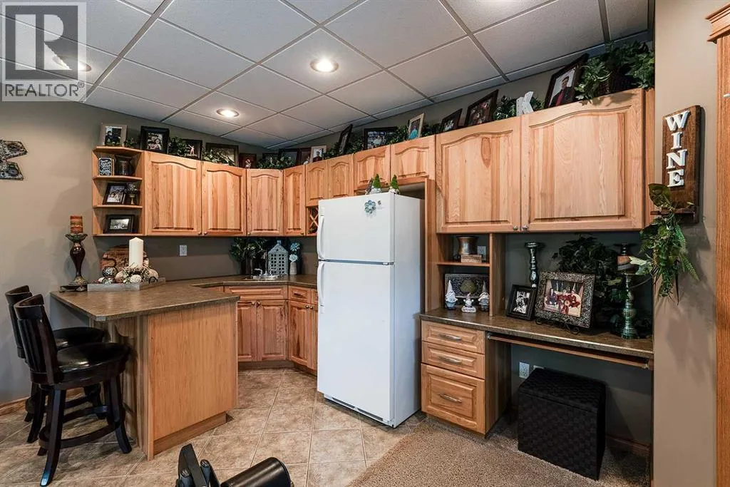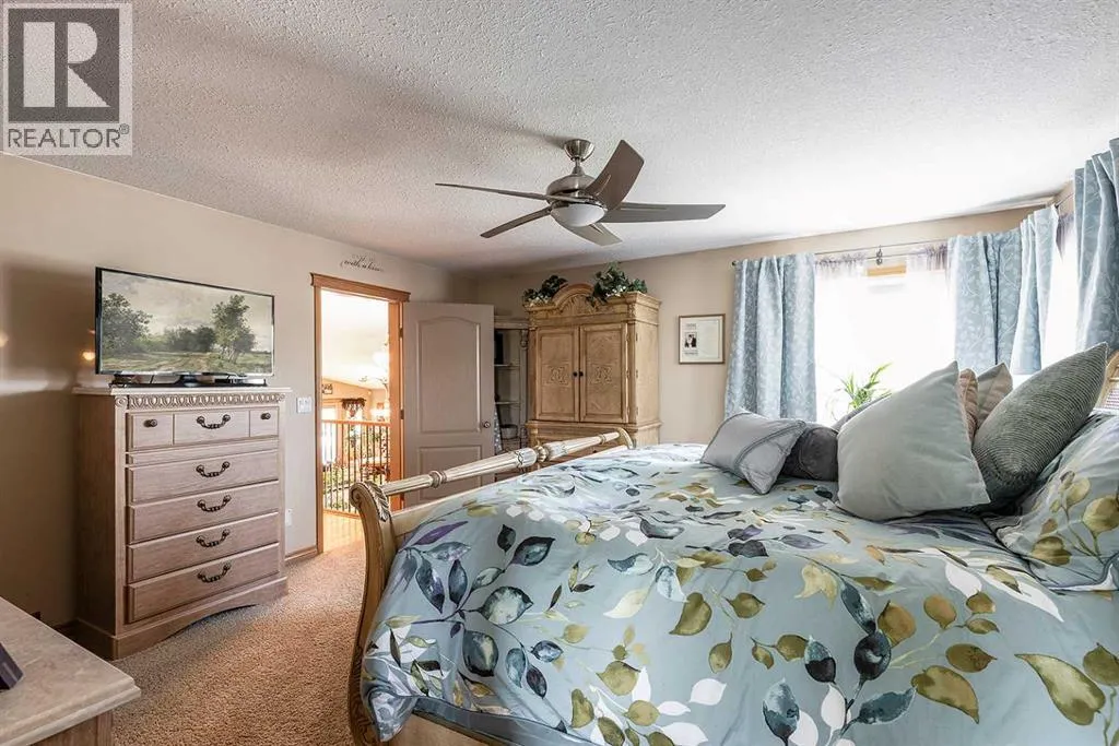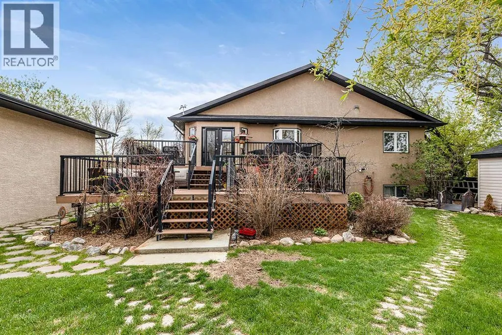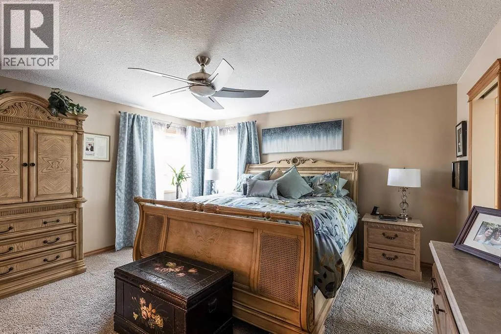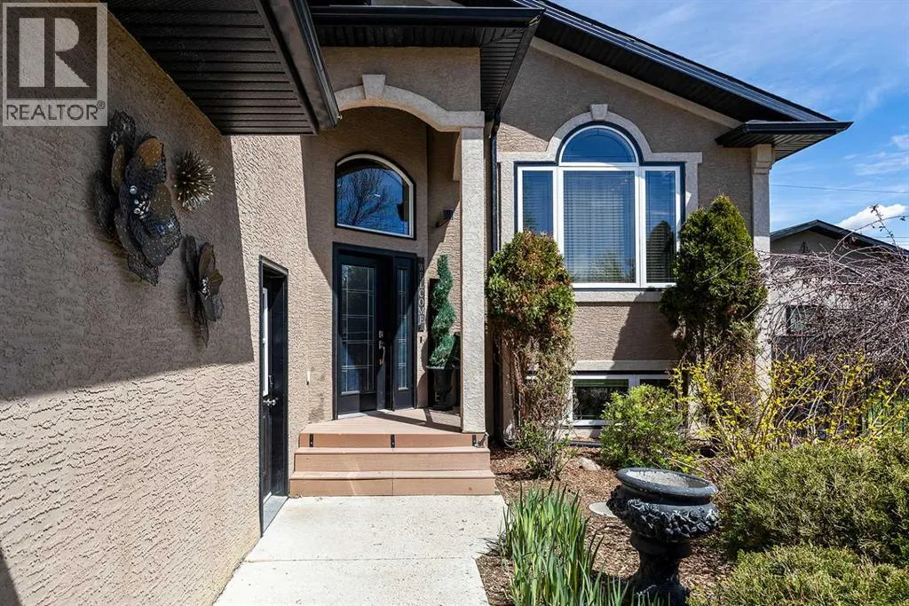 Discover luxury living in this exquisite 1940 sq ft modified bi-level residence, beautifully positioned on a generous double lot in Oyen, Alberta. Built in 2004 and meticulously maintained by its original owner, this home showcases a stunning stucco exterior complemented by new shingles, windows, and a garage door installed in 2023.Step inside to experience an inviting layout with three bedrooms on the upper level and two additional bedrooms downstairs. The highlight is the master suite above the garage, featuring a spacious walk-in closet and a 4-piece ensuite with a jetted tub and separate shower. The home's elegant interior is enhanced by radiant heated tile flooring with individual climate controls, rich hardwood, and plush carpeting in the bedrooms and lower level.Vaulted ceilings and a warm gas fireplace enrich the main living room, creating a welcoming atmosphere for relaxation and entertainment. The gourmet kitchen awaits with sleek maple cabinets, modern stainless steel appliances, and plumbing in place for a future gas stove, adding to its allure. A ready-to-install gas line for a BBQ just outside is perfect for culinary adventures.Practical amenities include an on-demand hot water system, a new central vacuum, and pre-wiring for a hot tub in the beautifully landscaped outdoor space. The fully fenced yard benefits from an underground sprinkler system, ensuring lush surroundings and easy maintenance.Completing this magnificent property are the garages: a double attached garage and a separate 28x32 detached garage, each fully insulated and heated. The attached garage features radiant floor heating, ideal for Alberta's cooler months. With ample space for vehicles, a workshop, or storage, and additional RV parking with electrical hookup, this home meets all your needs with unmatched style and functionality. (id:27476)