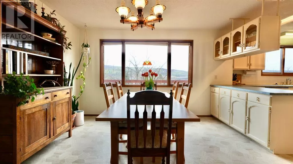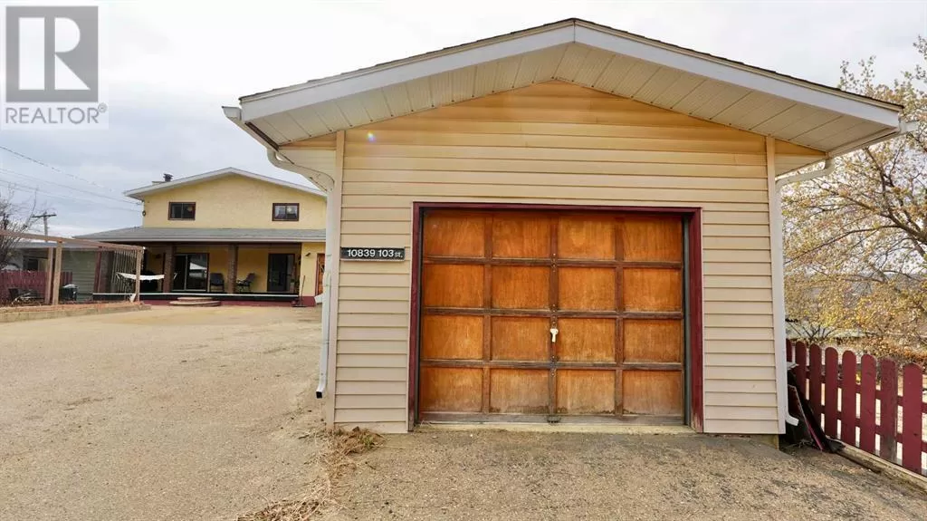 Stunning Home with Panoramic Views & Room to Grow! Perched high on a scenic hilltop, this full of character home offers breathtaking views over the town, rolling hills, and mighty Peace River. With timeless charm and generous living space, this 5-bedroom residence is perfect for families seeking comfort, style, and privacy. Step inside to discover a warm and inviting interior filled with natural light and rich character details. A spacious kitchen and dining room offer up the spectacular views that will never get old! Storage galore and with plenty of prep space, this heart of the home kitchen is sure to delight. Or enjoy the formal sitting room with fireplace or cozy family room-a great place for movie night and enjoying the twinkling lights of town. The upper level provides 4 of the 5 bedrooms which is a not too often found feature-4 bedrooms all on one level! The fully finished walk-out basement adds exceptional versatilityâideal for a home office, guest suite, or recreation area. There is bar area plus plenty of storage making this space easy to use and there is even a sauna offering you a relaxing escape to rest your tired body after a long day. Enjoy the convenience of a double attached garage, plus a separate single detached garageâperfect for extra storage, a workshop, or your weekend vehicle. Or use it like the current owners do and keep it for a home gym! Set on a spacious and private lot, the property is a peaceful retreat with lots of yard space and a fenced in garden plot allowing you to exercise your green thumb and grow your own produce. Donât miss this rare opportunity to own a truly special home with unmatched views and endless potential. (id:27476)