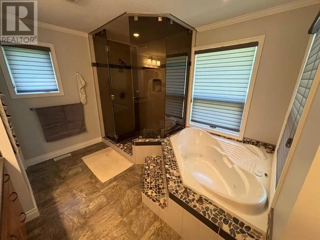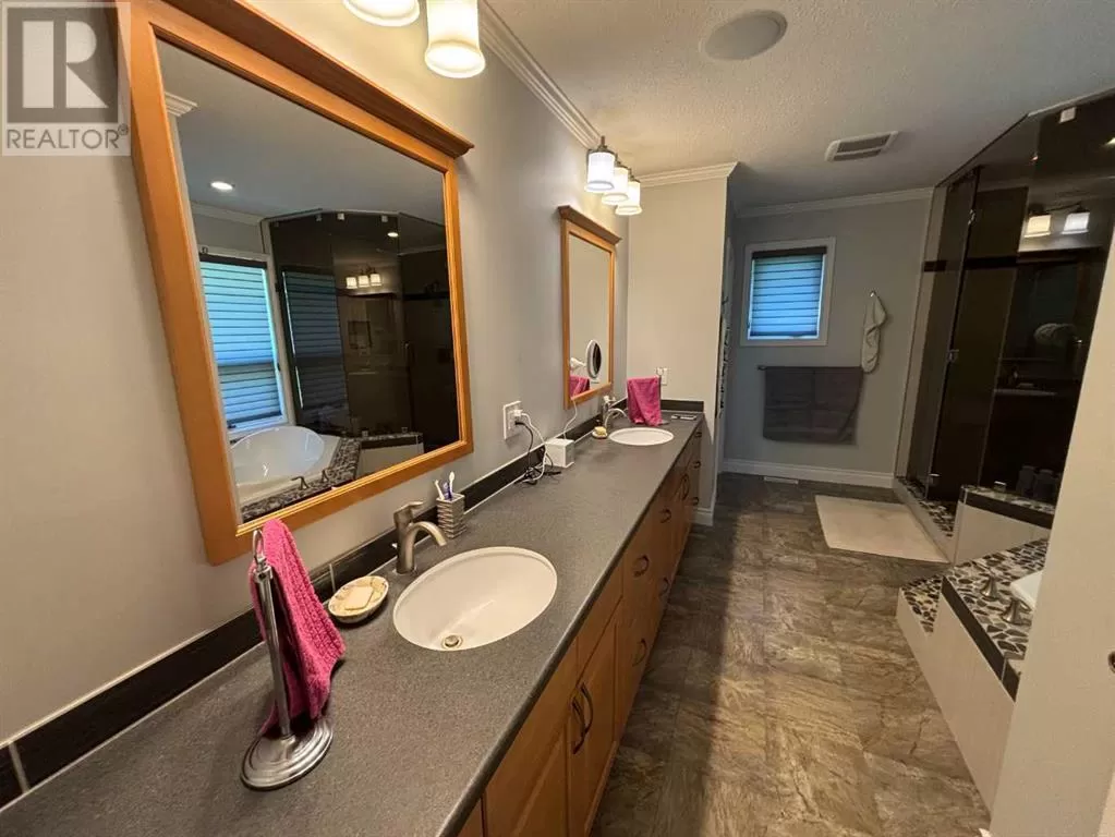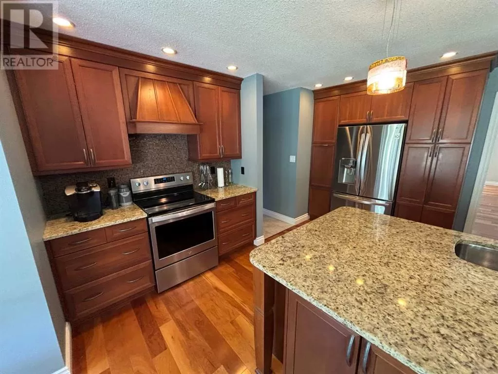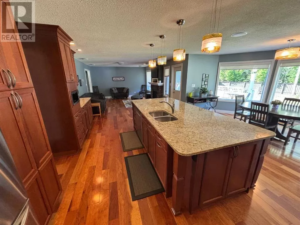 Tucked away on over half an acre in the Pines sits this very impressive bungalow that would be one of the largest in town. This property offers comfort and style with plenty of room to roam both inside and out. Some interior features start with the Grand entryway as you walk in. A fully updated kitchen with a huge Island, granite countertops and Cherrywood floors in the kitchen, den and formal dining area. Enjoy a large sunken livingroom with a beautiful fireplace as well as a second fireplace in the Den. Bedrooms are all a good size including a spacious primary with a nicely renovated 5 piece ensuite bath. Downstairs will impress with the expansive family room space and wet bar area with plenty of room for the largest of games room decor. A walk out door leads from the basement to the wide reaching back yard where you will find a garden bed, lots of trees, a fantastic fireplace area and a gigantic deck to relax and enjoy the view. Other great features to this property include beautiful stamped driveway and walks, in ground sprinkler system, air conditioned comfort and Much Much More! If you have been looking for something with a bit more space and move in ready, then this place has it all. Call for your appointment to view. (id:27476)