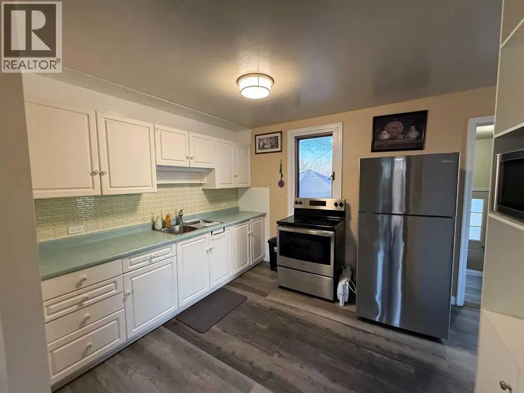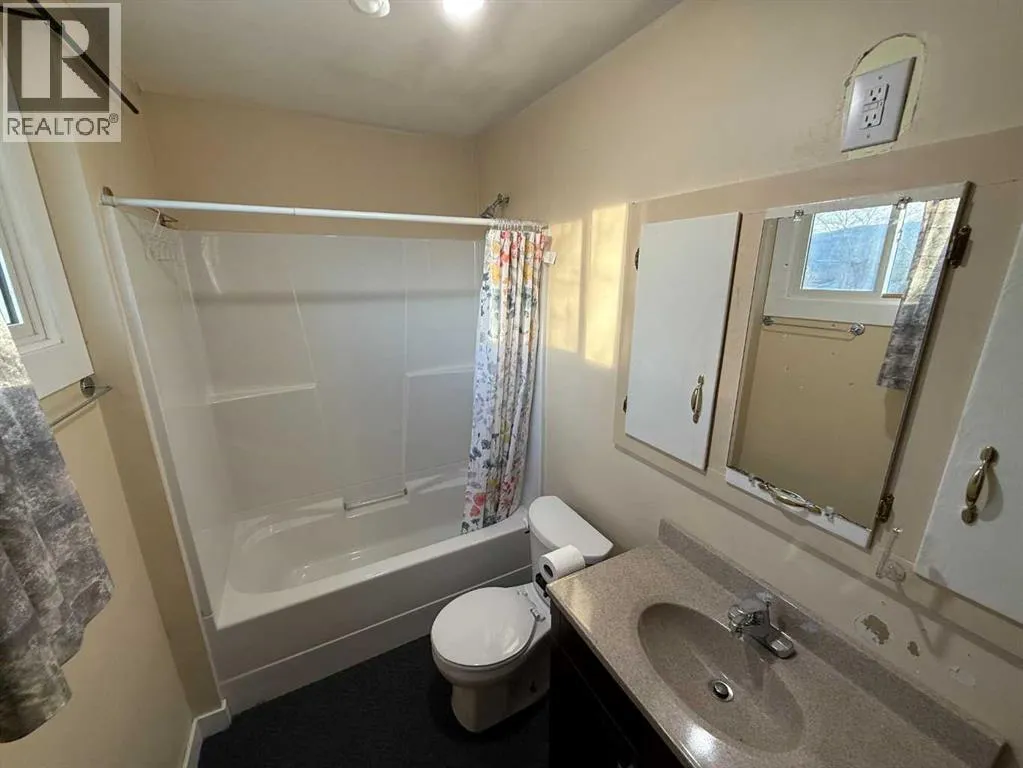 Discover this charming 1950s one and a half story home, nestled on two spacious lots. It features three cozy bedrooms upstairs, a main level bathroom, and an inviting open concept kitchen, living, and dining area filled with character. The partially developed basement would make a great suite or it could be added space for a large family, is nicely laid out with its own kitchen, bedroom, living room, and bathroom, ready for you to complete. There are also two driveways and a separate basement entrance. Additionally there is a versatile garage currently serving as a storage shed or workshop. Schedule a showing to take a look or check out the 360 virtual tour now available in the media section. Floor plans are available in the photos section. (id:27476)