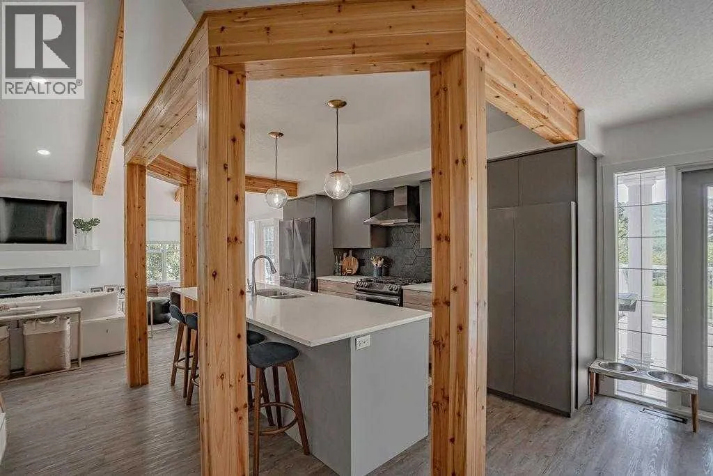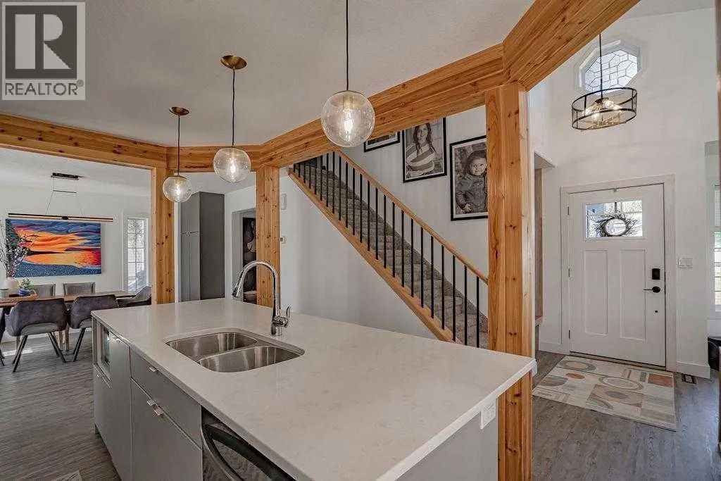 Everyone deserves to come home to a place thats straight out of a magazine.This riverfront property has been renovated from top to bottom, with new stylish kitchen, living room, new electric gas fireplace, new vinyl flooring, doors, vanities, trim, fixtures, front door, garage door/lift, windows and hardwares. You will find 3 beautifully styled bedrooms with 1 den down in the basement. There are 2 full bathrooms and 1 half bath on the main level. I absolutely love the kitchen which features beautiful black stainless appliances, gas stove, quartz countertops, under mount sink, soft closed cabinets and a breakfast bar. They have installed a wall pantry for additional storage which is tucked away in the large dining room. Living room showcases vaulted ceilings with lots of windows allowing the sun shine through all morning long! With all those windows we have you covered from the summer heat with the central air. Master bedroom features 2 of my favourite spots, the balcony and the soaker tub in the ensuite that overlook the river! Basement is fully developed with space to make a 4th bedroom, but for now its a great media room with a den. Finished and heated attached garage with large concrete driveway and rv parking. This home is situated on a .35 acre of a lot that backs directly onto the Peace River, but it has an amazing set up in the backyard for people who really utilize their yards. We have a nice fire pit area set up with a gazebo, garden shed and a large composite deck. There is a mature trees and space to add a garden. The yard is fully fenced and landscaped with irrigation. This home has had the shingles replaced. Call for more information on this property. (id:27476)