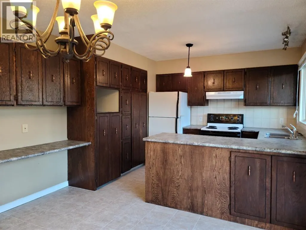 Riverside Living in Peace Riverâs Sought-After North End! Welcome to your next home in one of Peace Riverâs most desirable neighbourhoodsâjust steps from the river, scenic walking trails, schools, the pool, rec centre, and more. This spacious and well-maintained bi-level offers the perfect balance of comfort, functionality, and location. Step inside to a bright and inviting main floor, where an oversized living room is flooded with natural light from a stunning bay window showcasing beautiful views of the river valley. The adjoining eat-in kitchen features updated flooring, plenty of cupboard space, and patio doors leading to the back deckâideal for BBQs, entertaining, or simply enjoying your private outdoor space. Upstairs, youâll find two generously sized bedrooms, including a large primary suite complete with a walk-in closet and convenient vanity sink. The fully developed lower level is warm and welcoming, with large above-grade windows that create an open, airy feel. This level offers a cozy family room with a charming brick feature wall and fireplace, two additional spacious bedrooms, and a combined bathroom/laundry area featuring your very own saunaâa rare and relaxing bonus. An additional exterior entrance adds flexibility and potential to suit your needs. Outside, the home continues to impress with a single attached garage complete with mezzanine storage, a large driveway with ample parking, and updated shingles for added peace of mind. With its unbeatable location, functional layout, and room for the whole family, this is a property you wonât want to miss. Book your showing today and experience North End living at its best! (id:27476)