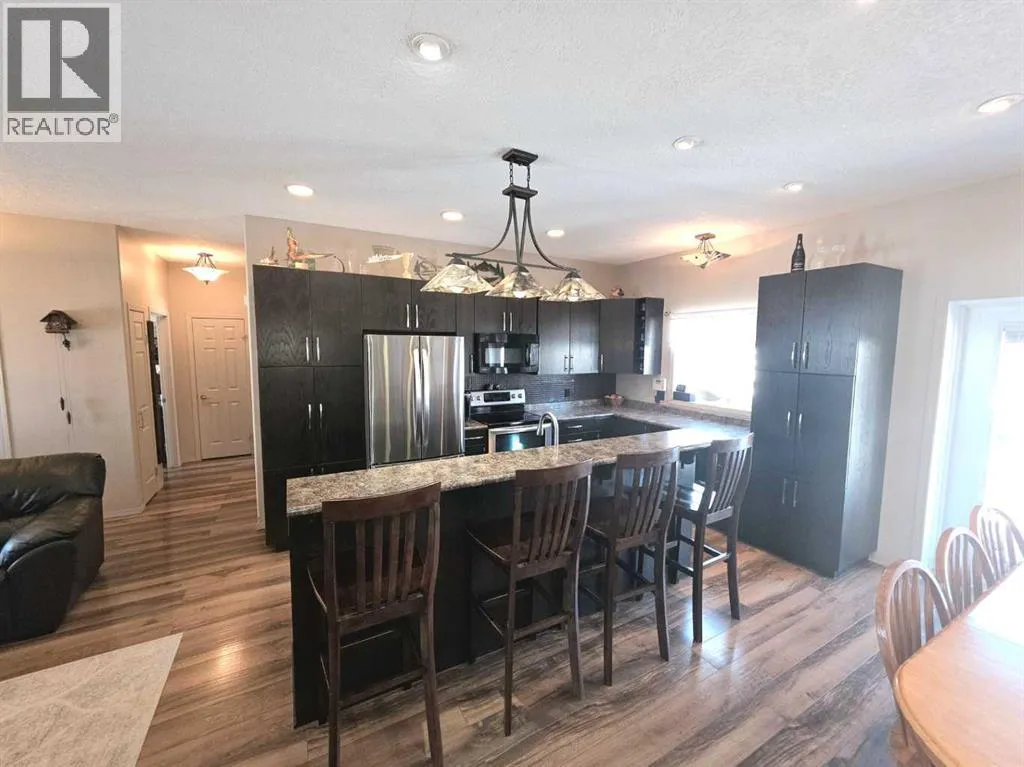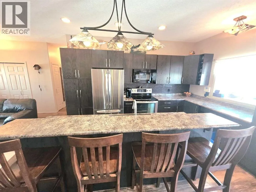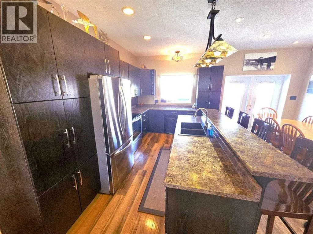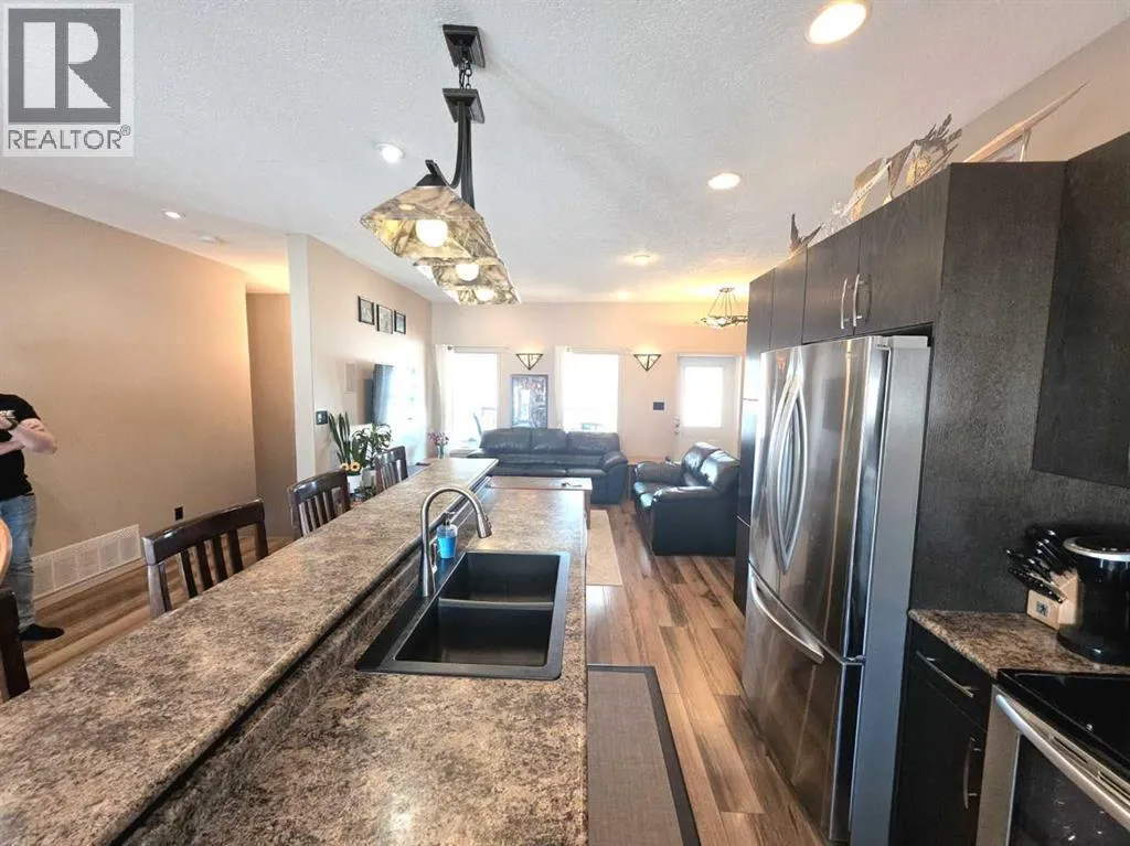 Welcome to Saddleback Ridge in Peace Riverâone of the areaâs most desirable newer subdivisions! This well-maintained 1,300+ sq. ft. home, built in 2008, offers a perfect blend of comfort, style, and location. Ideally situated close to major box stores, grocery shopping, the hospital, and medical clinic, this property delivers convenience for the whole family. Step inside to a bright and inviting main floor featuring a trendy kitchen with modern finishes, ample cabinetry, and a functional layout that flows seamlessly into the dining and living areasâperfect for everyday living and entertaining. The home offers four spacious bedrooms and three bathrooms, including a large master suite complete with a private 4 piece en suite and large walk in closet. The fully finished basement adds valuable living space with a recreation area, additional bedrooms, 3 piece bathroom and plenty of storage. There has been recent updates to the furnace and the hot water tank Outside, enjoy a large fenced yard with a generous garden area, ideal for those with a green thumb. Relax or entertain on the rear deck or unwind on the welcoming front porch. The heated double car garage provides comfort and convenience year-round with excellent mezzanine storage as well This is a fantastic opportunity to own a move-in-ready home in a great neighborhoodâperfect for families or anyone looking for space and modern living in Peace River. (id:27476)