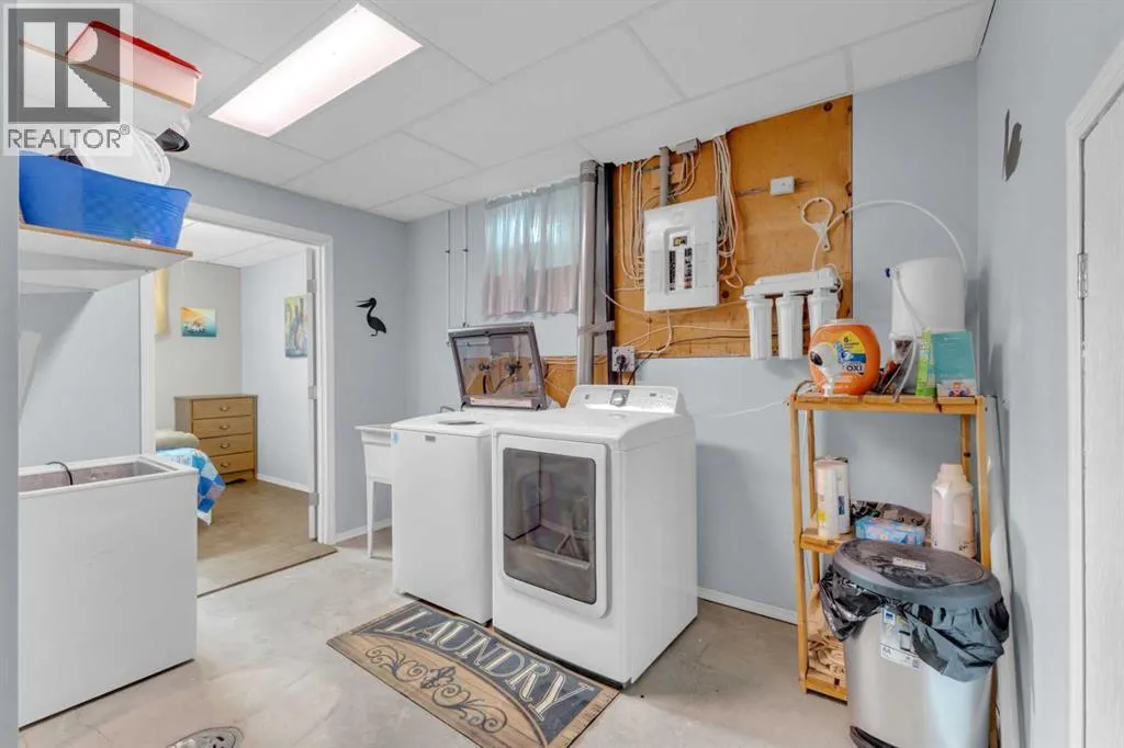 This charming property is tucked away on a private 0.49 acre lot at Pelican Point, surrounded by mature trees, and offering the perfect opportunity for comfort, space, and tranquility AT THE LAKE!! Don't let the reported age of this home fool you! A new basement poured in 2002, with concrete styrofoam block for extra insulation, and infloor heat. A Bungalow was moved on, and then extensively renovated. This well-cared-for home features 5 bedrooms, providing ample room for family and guests alike. As you enter, youâre greeted by a cozy living room complete with a fireplace, and classic hardwood flooring, for an inviting space to gather and relax. The adjoining dining area offers plenty of room for family meals and entertaining, seamlessly connecting to the kitchen, which serves as the heart of the home. The kitchen is equipped with all appliances, attractive maple cabinetry, cork flooring and plenty of counter space for meal prep and creativity. The main floor hosts two spacious bedrooms and a full bathroom. A versatile den adds a unique touch, perfect for an office, reading nook, or additional storage. Downstairs, youâll find a generous recreation area that can easily adapt to your personal lifestyle, whether as a family room, hobby area, or workout space. Three additional bedrooms and another full bathroom complete the lower level, along with a laundry area conveniently located in the utility room. Central air conditioning is an added feature that you will love in the summer. Outside, the newer covered rear deck offers a peaceful retreat to unwind and take in the natural surroundings. The landscaping goes above and beyond! It literally feels like a park with so many perennials, shrubs, and groomed flower beds. There is also a tarped shed, storage shed, and play centre included in the fenced backyard. This property is only a 5 minute walk to the playground and beach, and 10-15 minute walk to the boat launch. You are also only 15 minute to the lovely town of Bashaw w hich boasts two grocery stores, liquor stores, police station, fire department, school and a vibrant business core. Neighboring cities including Camrose, Wetaskiwin and Stettler are all within an hour to Pelican Point. Recent updates include the replacement of 2 hot water tanks in February 2026. This amazing turn key, 4 season property, combines privacy, practicality, and a great opportunity for year round living or a fantastic summer home! (id:27476)