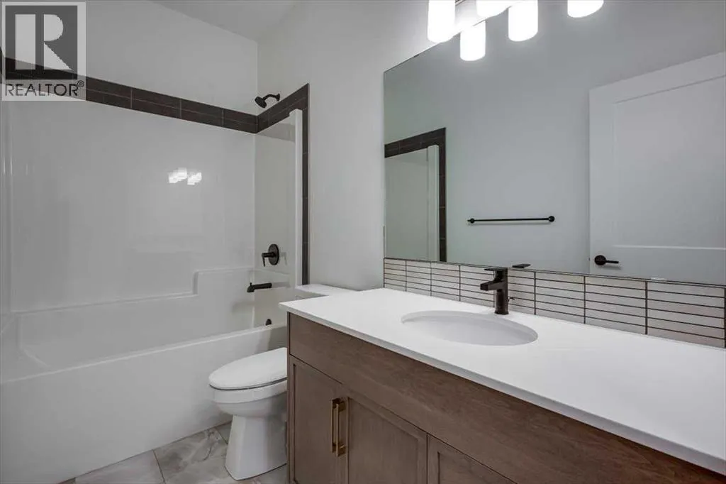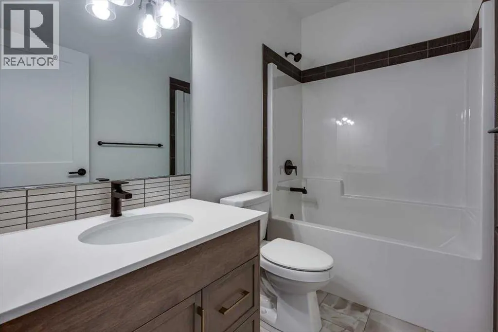 IMMEDIATE POSSESSION! PRICE JUST REDUCED!! Move into your new home and start summer right! This brand new FULLY FINISHED modified bi-level built by Asset Builders Corp. (Winner of the 2024 Builder of the Year) is located in the Oxford subdivision, which is conveniently located across the road from the Rec Centre & New School or only a short walk to groceries, restaurants & fuel, close to Highway 2 for those who commute & a 9 min drive to the Red Deer! 4 bedroom, 3 bath home is the perfect size home for your family with double attached garage & back yard w/back lane for any RV's, boats or space for Fido! Step up on the 5'x6' verandah into this spacious entryway that you will appreciate. Up to the main level which features natural light streaming though many triple paned windows throughout the home. Kitchen features quartz countertops & 4 upgraded appliances. The open floor plan on this level is great for entertaining & families with the nice flow between the great room w/pretty electric fireplace & dining & kitchen. Plus a full bath & bedroom on this main level, perfect for a home office. Upstairs is the nice sized primary bedroom with a full ensuite & walk in closet with window for extra light. Downstairs is super bright & has 2 good sized bedrooms, family room area & another full bath. Underfloor heat roughed in. Sunny south facing Back deck is 16'x10' w/metal railing & nice sized yard, perfect for a gardener or sun worshipper. GST is included with any rebate to builder. (id:27476)