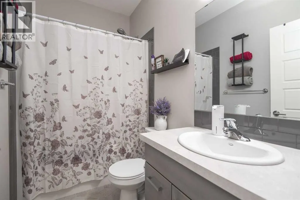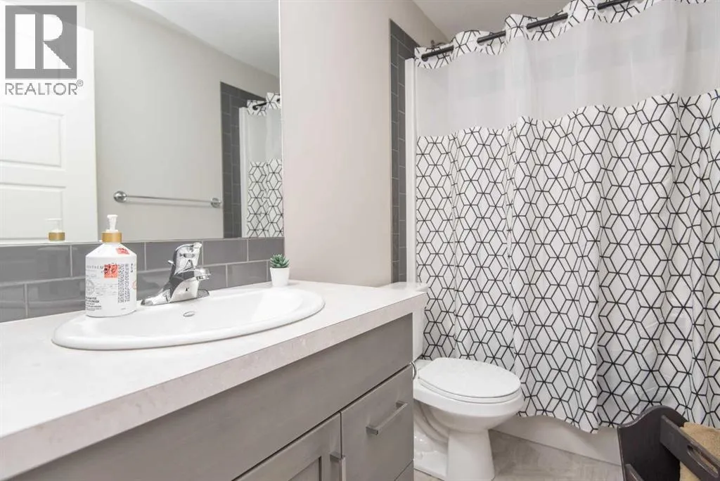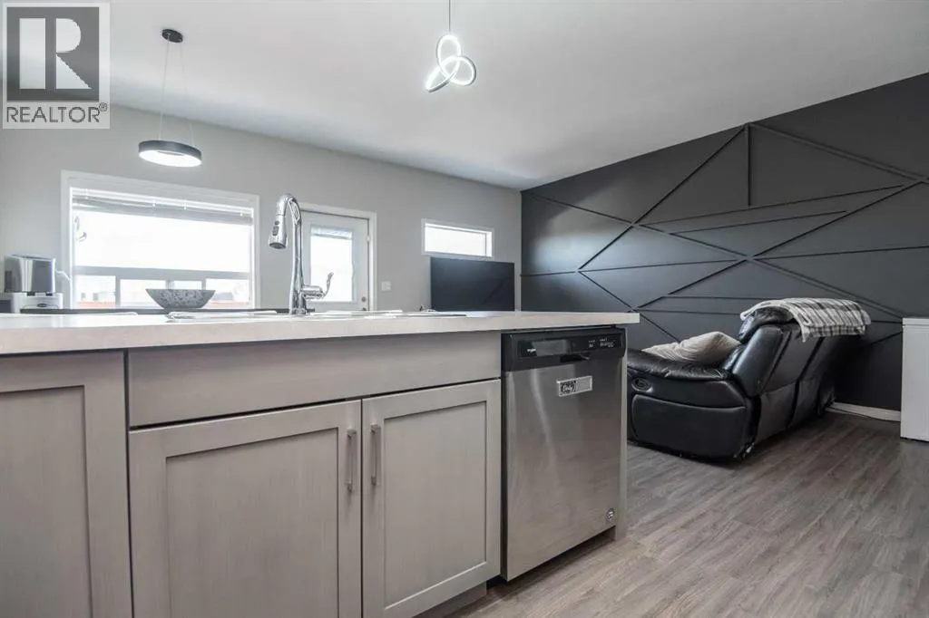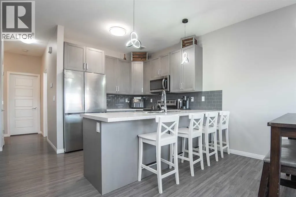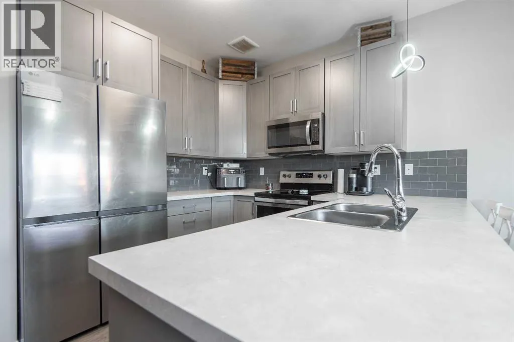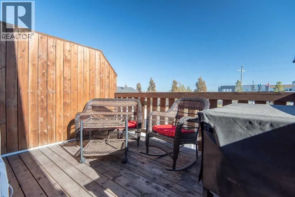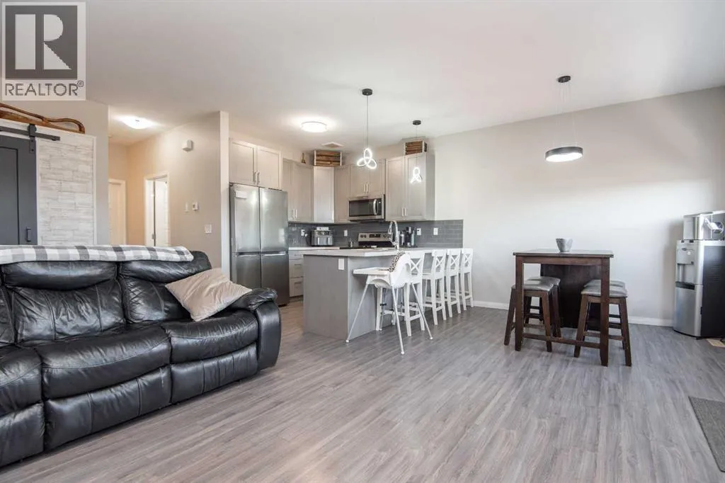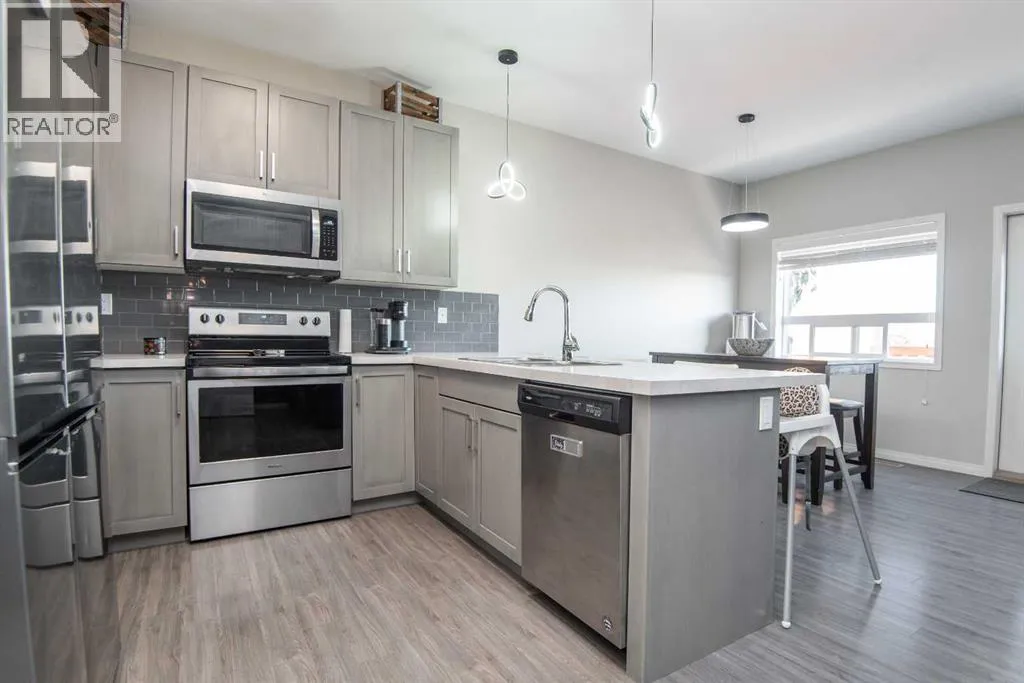 Welcome to your next move in the beautiful and growing community of Penhold. Built in 2018, with 1396 sq ft of total living space, this modern and airy bi-level town home offers the perfect blend of comfort and style. With 3 bedrooms and 2 bathrooms, the home features a bright open-concept layout accented by fresh, neutral tones and large windows that fill the space with natural light. The kitchen, with its stainless steel appliances, gleaming tile backsplash, and easy-to-maintain cupboards, flows seamlessly into the surrounding living areas, creating a warm and inviting atmosphere that is ideal for both relaxation and entertaining. Enjoy durable laminate flooring throughout the main living spaces and soft carpeting in the bedrooms for added comfort. Outside, youâll find a fully fenced back yard and comfortably sized deckâperfect for kids, pets, or summer BBQsâand convenient off-street parking. Backing schools and the Multiplex is the final cherry on top for this move-in-ready home. Whether youâre a first-time buyer, downsizer, or investor, this move-in-ready home combines modern design with practical living in a friendly community. (id:27476)