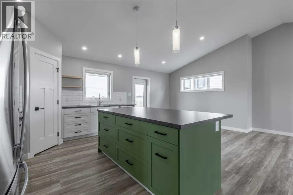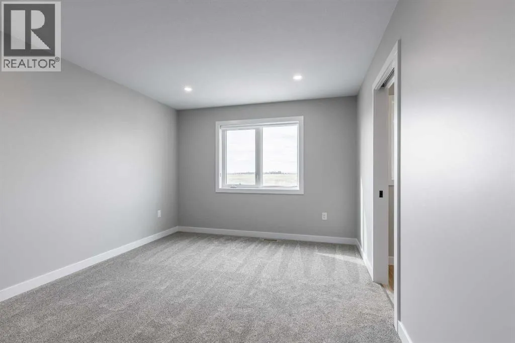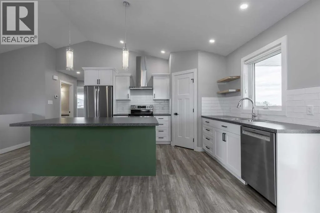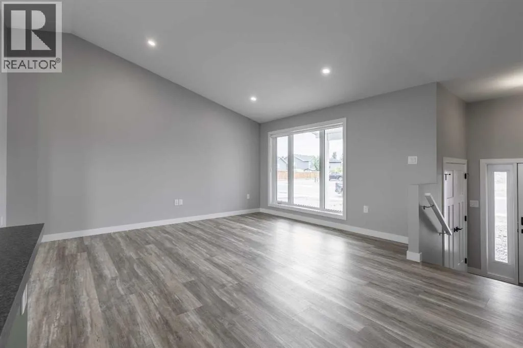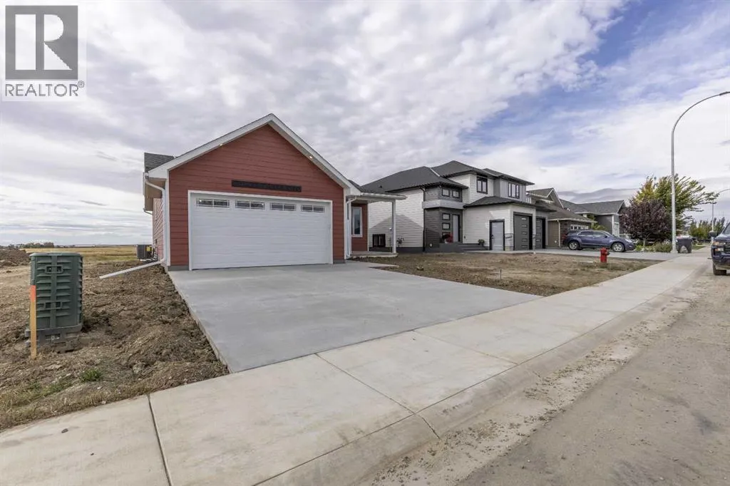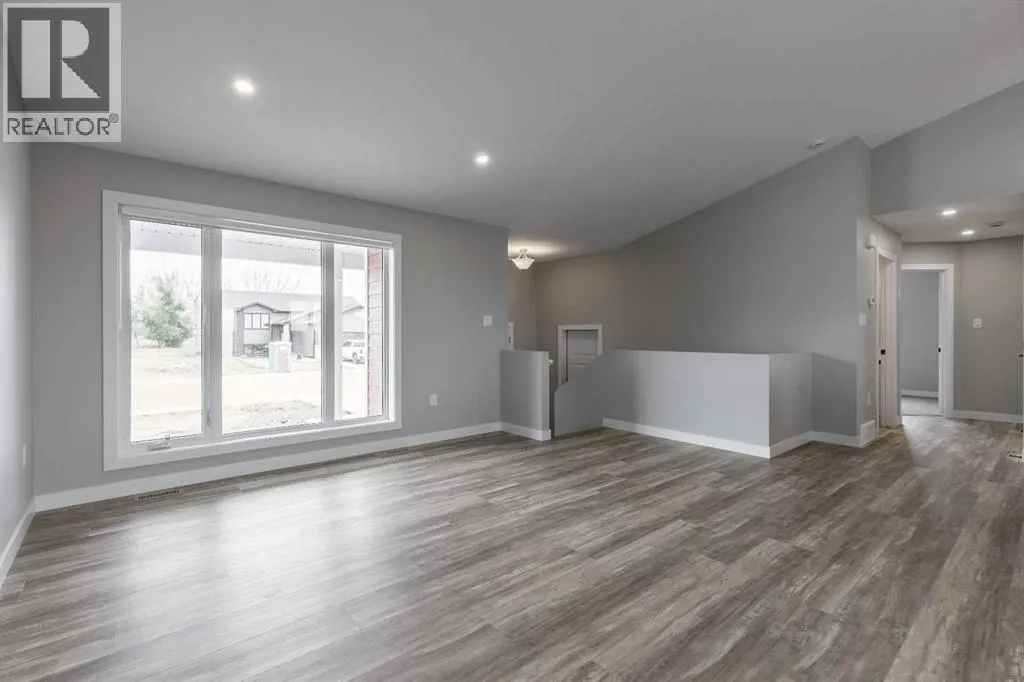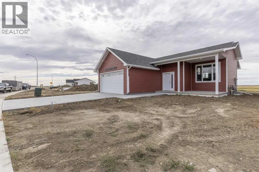 Have a look at this beautiful, brand-new, bi-level home in Picture Butte! If you've been waiting for a turn-key property with plenty of features and an ideal location backing onto open fields, this home could be the place for you. Eye-catching curb appeal draws you in, walking past the attached garage and a large covered front porch to the front door. Entering the main level, you'll find an open-concept living room, dining room, and kitchen complete with vaulted ceilings, corner pantry, a large island, and tons of natural light. Down the hall, a bedroom can be found alongside a full four-piece bath. The primary bedroom suite features a walk-in closet with custom barn door, and a three-piece bath, creating a relaxing retreat. Downstairs, a massive rec room is waiting for you to make the games room, home theatre, or lower suite you've always dreamed of! Two downstairs bedrooms, a four-piece bath, the laundry room, and a sizable storage room can be found nearby. The backyard features an amazing wide open view, ready for you to enjoy from your covered deck. The home is already equipped with air conditioning, a garage heater, and window coverings, ready for you to make the yard your own in the spring. If a beautiful bi-level home built with quality and comfort in mind sounds like the spot for you, give your REALTOR® a call and book a showing today! (id:27476)