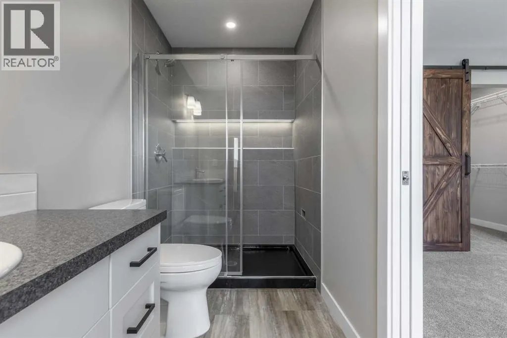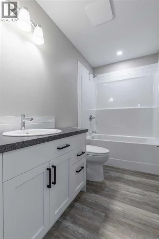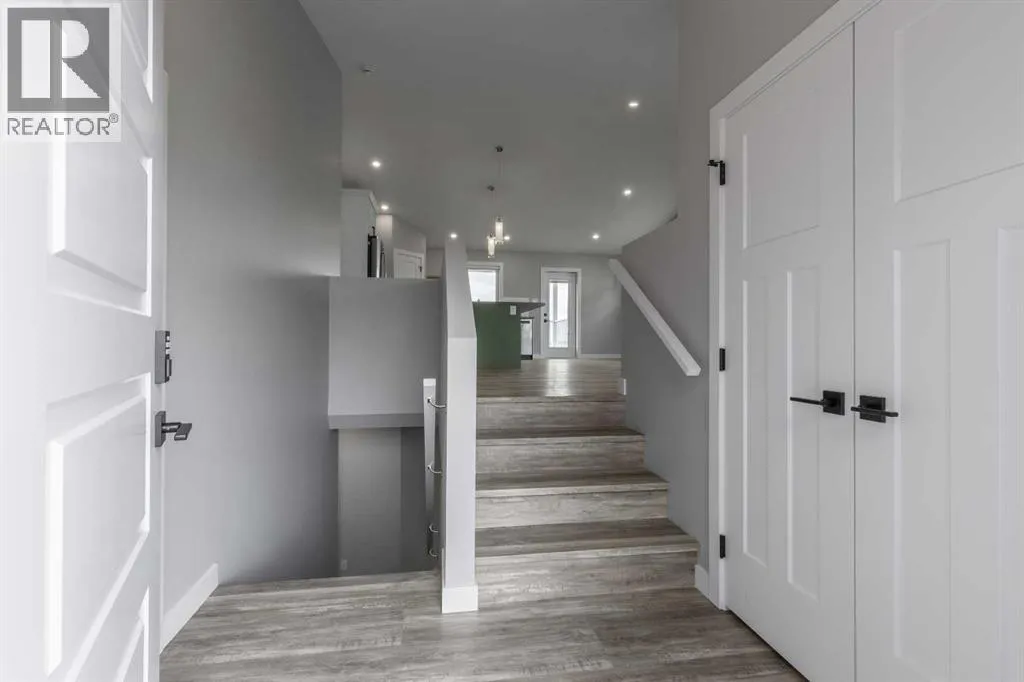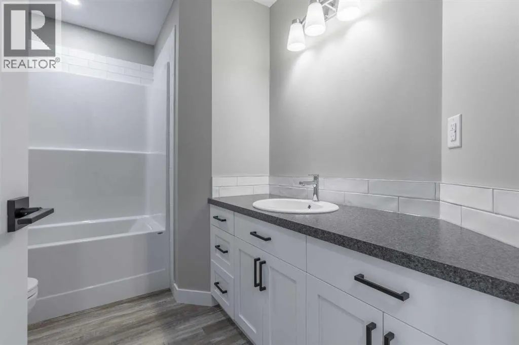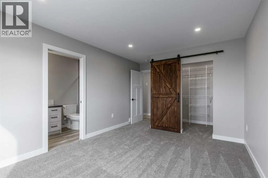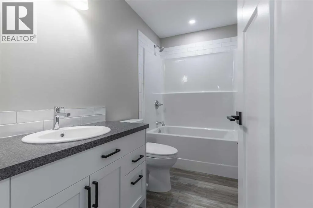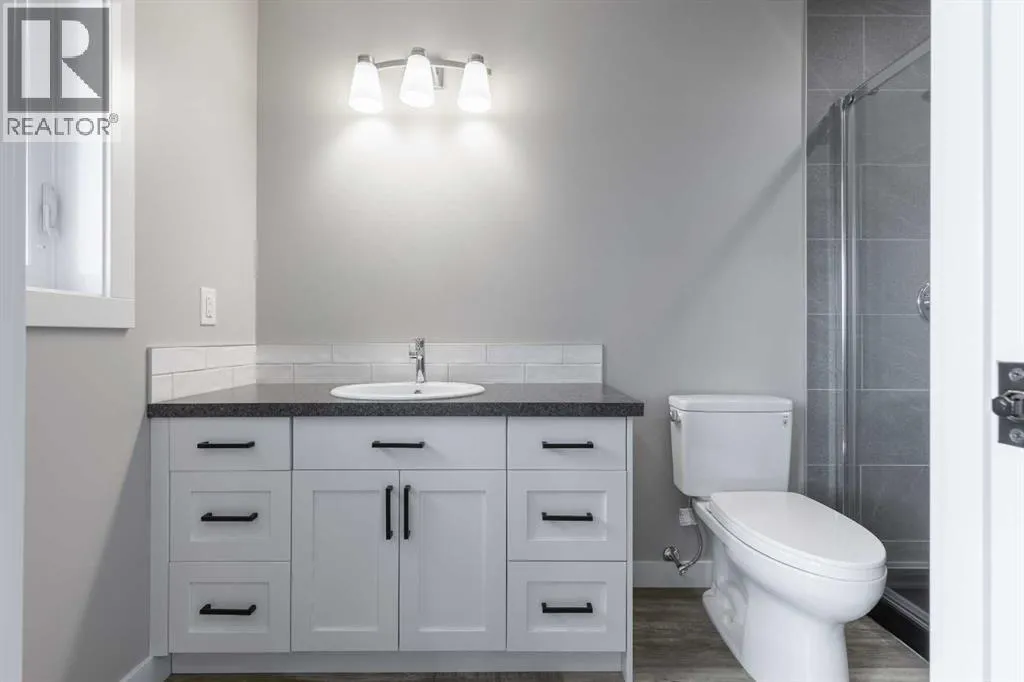 Have a look at this beautiful, brand-new, bi-level home in Picture Butte! If you've been waiting for a turn-key property with plenty of features and an ideal location backing onto open fields, this home could be the place for you. Eye-catching curb appeal draws you in, walking past the attached garage and a large covered front porch to the front door. Entering the main level, you'll find an open-concept living room, dining room, and kitchen complete with vaulted ceilings, corner pantry, a large island, and tons of natural light. Down the hall, a bedroom can be found alongside a full four-piece bath. The primary bedroom suite features a walk-in closet with custom barn door, and a three-piece bath, creating a relaxing retreat. Downstairs, a massive rec room is waiting for you to make the games room, home theatre, or lower suite you've always dreamed of! Two downstairs bedrooms, a four-piece bath, the laundry room, and a sizable storage room can be found nearby. The backyard features an amazing wide open view, ready for you to enjoy from your covered deck. The home is already equipped with air conditioning, a garage heater, and window coverings, ready for you to make the yard your own in the spring. If a beautiful bi-level home built with quality and comfort in mind sounds like the spot for you, give your REALTOR® a call and book a showing today! (id:27476)