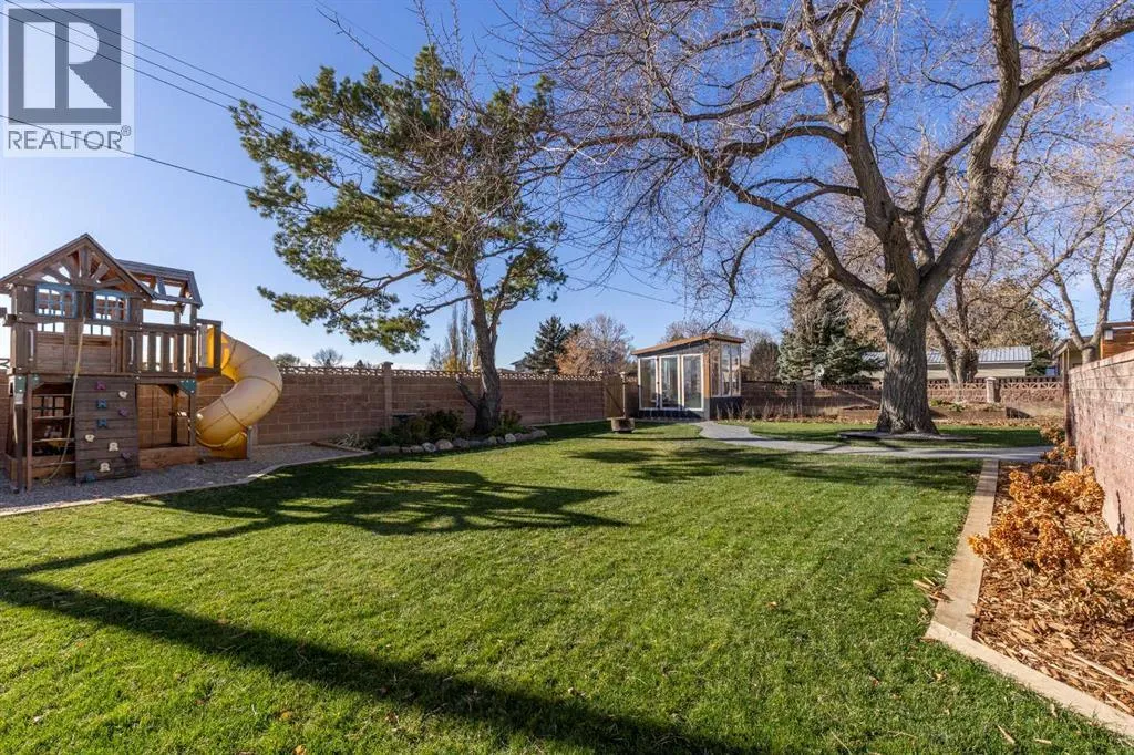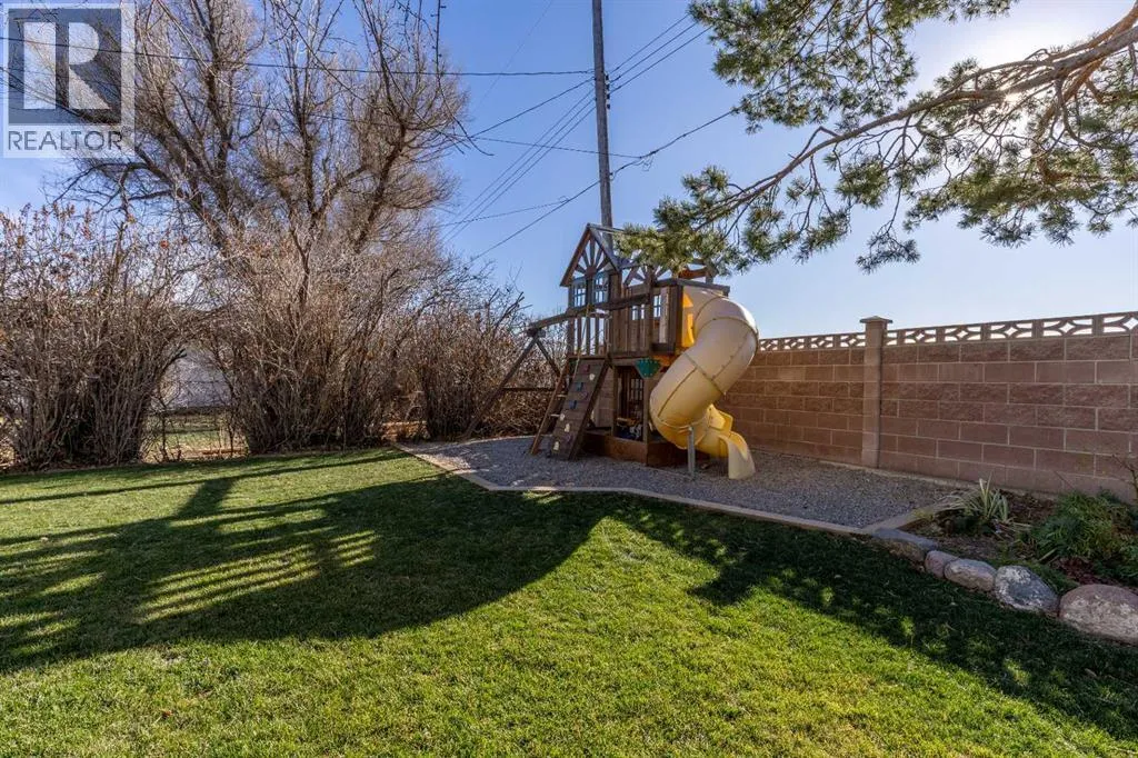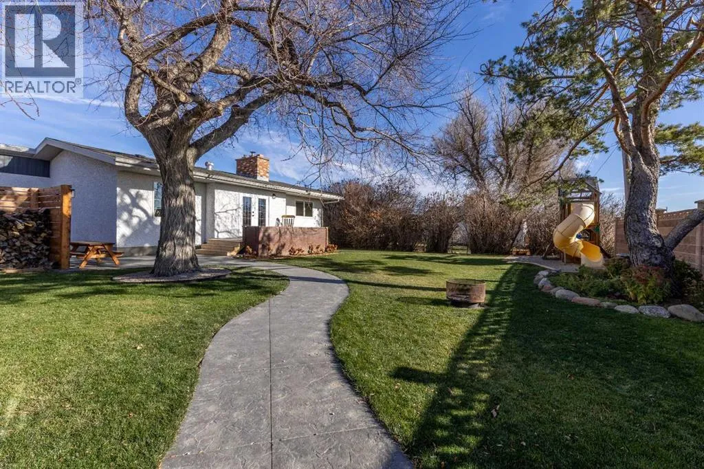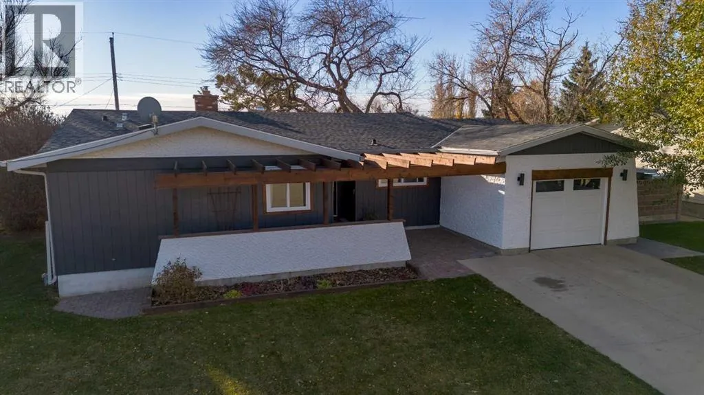 This stunning Picture Butte bungalow home is a must-see! Perfect for anyone who wants a turn-key property with plenty of curb appeal and a bright stylish interior with convenient features sure to be a hit with the whole family. This home boasts tons of upgrades such as a new furnace and A/C, a newer roof, new windows, new exterior cedar accents, newer appliances, new flooring, new lighting, and added exterior storage. Step inside through the spacious front patio with a cedar pergola and into the front foyer where the home opens up into a large, bright living room. A wood burning fireplace and plenty of room for seating creates the perfect spot to curl up in the cooler months, while easy access to the back yard and rear deck make this home ideal for hosting friends and family year-round. The dining room is framed by a large bright window so you can take in the south-facing sunshine and beautiful prairie views with no neighbors behind! The kitchen provides a convenient U-shaped layout and extensive cupboard storage to make meal prep a breeze. Down the hall, two bedrooms surround a full four-piece bath while the nearby primary bedroom features two closets and a two-piece ensuite bath. A huge rec room on the lower level would make a perfect play room, games room, or home theatre. A nearby bedroom, three-piece bath, large laundry room, and storage make this the perfect spot to set up a guest suite, craft room, or home office. Outside, the fully landscaped back yard features trees, garden plots, and plenty of space to spend quality time outdoors, with an inviting sheltered patio, shed storage, a greenhouse, a play center, and a single attached garage to store toys and vehicles. If an ideal family home with tons of upgrades and a bright, welcoming atmosphere sounds like the place for you, give your REALTOR® a call and book a showing today! (id:27476)