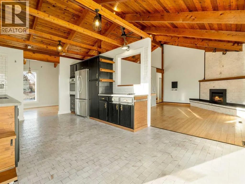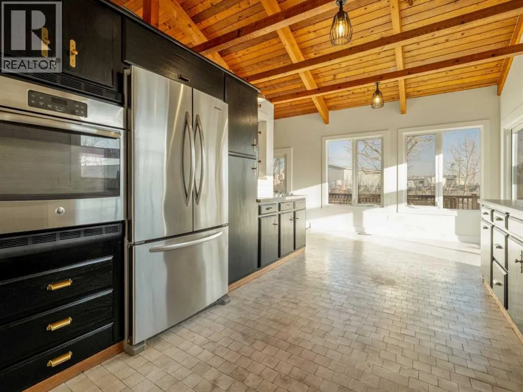 Large bungalow home on a cul-de-sac in Picture Butte with bonus room above garage and loft in primary bedroom. Home is being sold in "as-is, where-is" condition. Basement features a 2 bedroom legal suite and a 1 bedroom illegal suite. Home features vaulted ceilings with exposed beams. Nice floorplan with large living room, dining room, kitchen, breakfast nook, family room with gas fireplace(not working), mud room, 3 bedrooms, and 2 bathrooms on main. Primary bedroom also has laundry hookups, a 5 piece ensuite, and a loft with ladder for access. Large wrap around partially covered deck with access from breakfast nook and family room. Basement is developed with a 2 bedroom legal suite featuring good size living room with wood fireplace, 3 piece bathroom with laundry, and one of the bedrooms features a walk-in closet. There is also an illegal suite in the basement with a large bedroom, 3 piece bath, laundry room with some kitchenette features, & a sauna(not sure if working). Yard is fenced and landscaped with a separate dog run, paved basketball court area, and a good sized yard space. There is also a shed. Home is close to park and playground. Double garage for your vehicles and a good amount of parking on the driveway. (id:27476)
