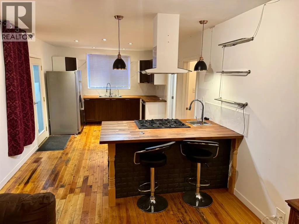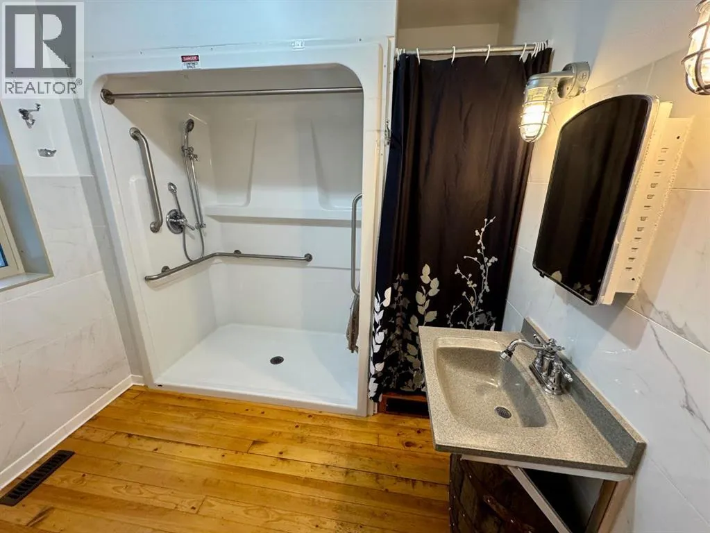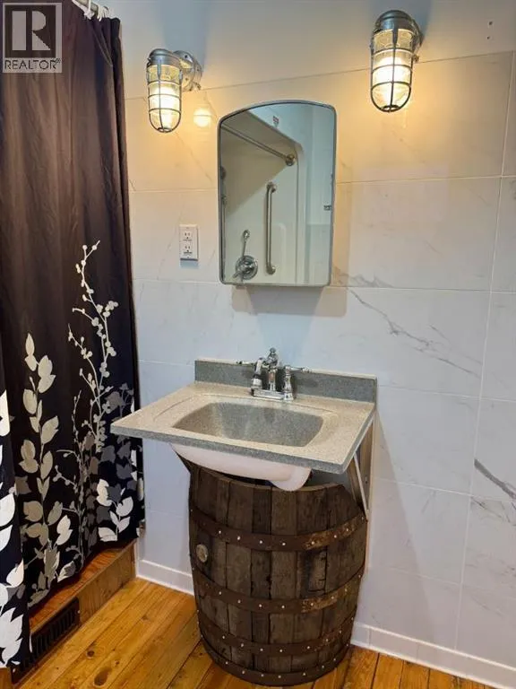 Unique home right on Main Street that's been nicely updated with new siding, some new windows, and new drywall. You have a nice kitchen with a gas stove and lots of prep space. The bedroom is spacious and so is the bathroom which features a large walk in shower and custom vanity. For extra living space you get a developed loft area that runs the length of the home land has 2 large skylights! Tons of storage in the basement where the laundry is and you'll see there is a newer furnace and on demand hot water. Outside you have a huge garage/shop as well as an extra storage shed. (id:27476)