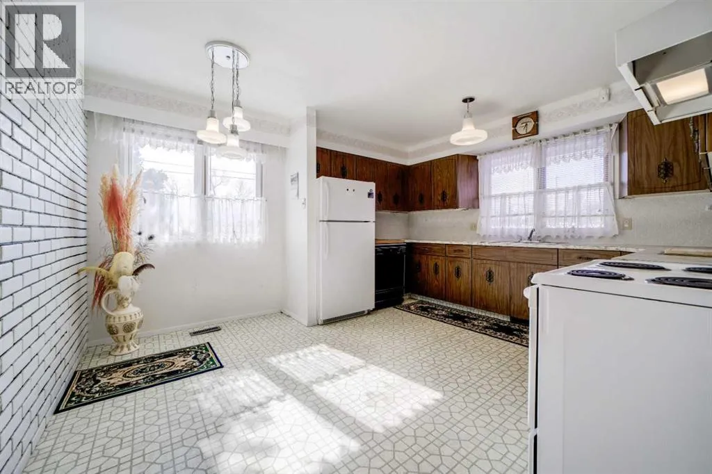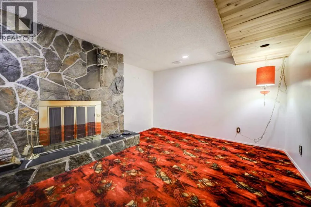 Step into a classic 1970s bungalow that feels like a time capsule, in the best way, where bold design choices and original finishes have been lovingly preserved! From the outside, this home has a low profile with a wide front lawn, accented by mature trees and a concrete walkway leading to the entrance. As you enter, youâre greeted by a spacious main floor with distinct yet connected living areas. The standout feature is the sunken living room - a signature 70s design -just a few steps down from the main level. It creates a cozy, defined space centered around one of the homeâs fireplaces, finished in brick and stretching from floor to ceiling. Plush, white carpeting and linoleum adds to the retro charm of this estate. The kitchen and dining areas carry their original finishes with pride, complimenting wood cabinetry, laminate counters and patterned backsplash. The formal dining room is just off the kitchen, ideal for family gatherings with an open view into the living room that keeps everything feeling connected. Down the hall are 3 bedrooms, each with their own personality but tied together by the home's cohesive vintage feel. The bathroom has an updated vanity, but retains some of its original character. The basement is where this home truly leans into its retro identity. Fully developed, it features a second fireplace in another sunken living room, making it the perfect hangout space. The highlight is the built-in bar area, complete with a faux leather "quilted" look. An additional bedroom and tons of storage space complete the lower level. Just let this space take you all the way back to the 70's! This home is absolutely worth a look, located away from the busy-ness of Main Street, but ideally within walking distance to all the right amenities. (id:27476)