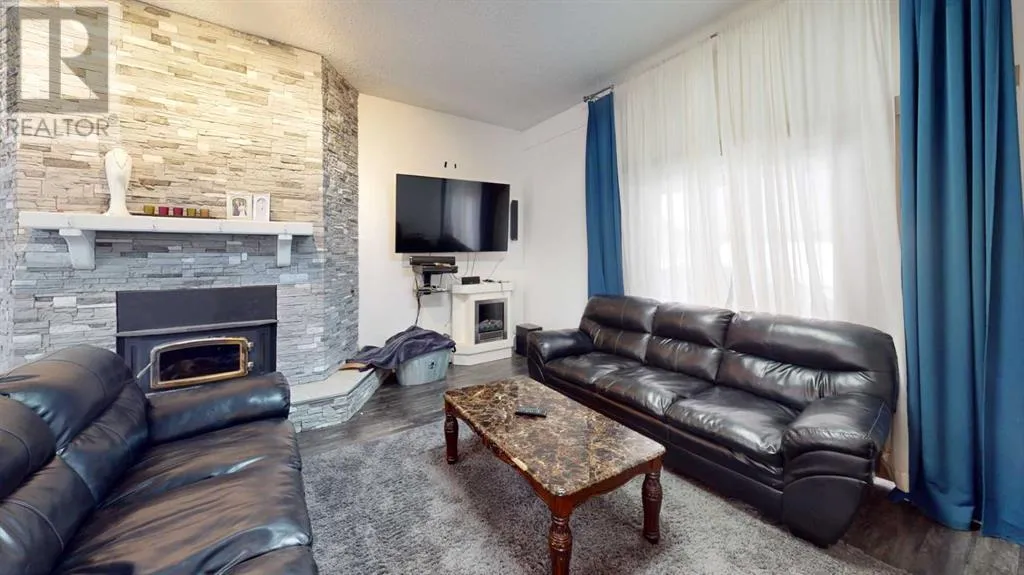 LISTED BELOW APPRAISED VALUE, this beautifully renovated home is nestled on 13.2 acres, literally 1 minute from the hamlet of Plamondon, along Hwy 858. This 1,747 sq.ft. home has undergone extensive updates, including new windows, new roof, flooring, a fabulous new kitchen and fresh paint throughout, giving it a modern and inviting feel. The chefâs dream kitchen is a true standout, featuring quartz countertops and custom cabinetry by Meldon Cabinets. It includes tons of storage, a large island with a kitchen sink and a breakfast bar, all open to the dining area, making it perfect for family meals and entertaining. The kitchen is undoubtedly the largest and most impressive space in the home! The living is also grand and anchored by a stone wood-burning fireplace and has patio doors leading to the expansive 16x50 carport, ideal for parking, relaxing in the shade, hosting BBQs, or enjoying outdoor activities with the kids. Step outside to find a gazeboâa serene spot for outdoor relaxationâa rock fire pit surrounded by a plum tree and apple orchard, plus an impressive kidsâ playset, perfect for keeping the little ones entertained. The property also boasts incredible outdoor amenities, including a 40x40 insulated shop with a 28x16 add on and custom-built crane inside, plus a few sheds for storage. The shop provides ample room for large trucks, and with its prime location, itâs a perfect spot for business operations. Just wait it gets even betterâ¦. there is a secondary residence! perfect for an elderly family member or as a rental unit to help with mortgage payments. Both the main house and the mobile home are serviced by municipal water. The house has a 2000-gallon septic tank, while the mobile home features its own tank and open discharge system. The main house includes three bedrooms upstairs, two full bathrooms, and a convenient half bath in the basement, along with two additional bedrooms (basement window sizes to be confirmed as proper Egress). This proper ty is the perfect combination of rural living and functionality. Whether you want to enjoy a giant acreage of 13.2 acres or run a business from home, this property has it all! (id:27476)