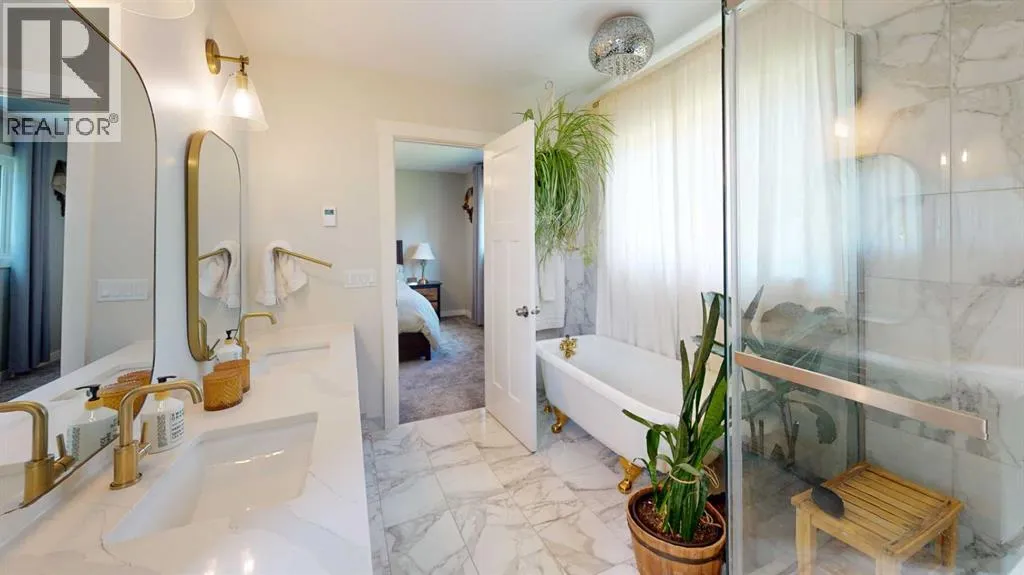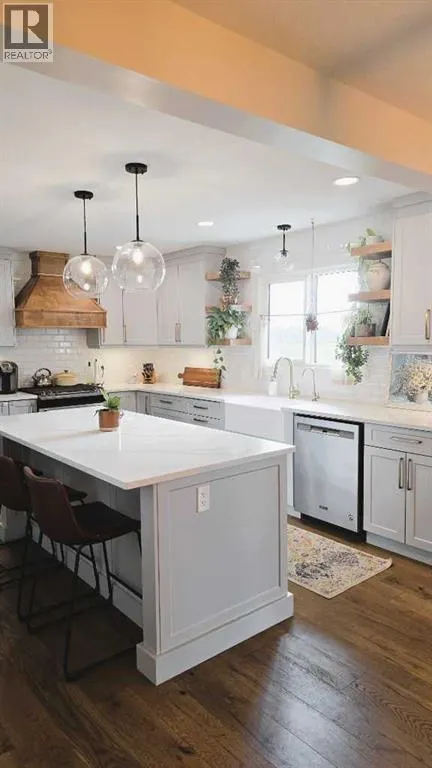 Back on the market and reduced in price here is a fully renovated farmhouse-style home offering modern comfort with timeless charm. Just 5 minutes south of Plamondon, the property spans 10 acres and features an oversized double garage, 4 bedrooms, 3 bathrooms, a fully finished basement, and high-quality finishes throughout. Step inside to find warm, wood-tone engineered hardwood floors that lead into a spacious, open-concept living and dining area. The beautifully designed kitchen is a standout with quartz countertops, a custom-made range hood, a farmhouse sink, and generous storage, including a walk-in pantry. Every detail has been thoughtfully considered, especially the stunning ensuite, which includes dual sinks, a glass shower, a soaker tub, a water closet, and heated floors for added luxury. The home is nearly completeâjust a few finishing touches remain. It also features a 3000-gallon cistern, septic pump-out system, and ample outdoor space for kids or animals to enjoy. (id:27476)