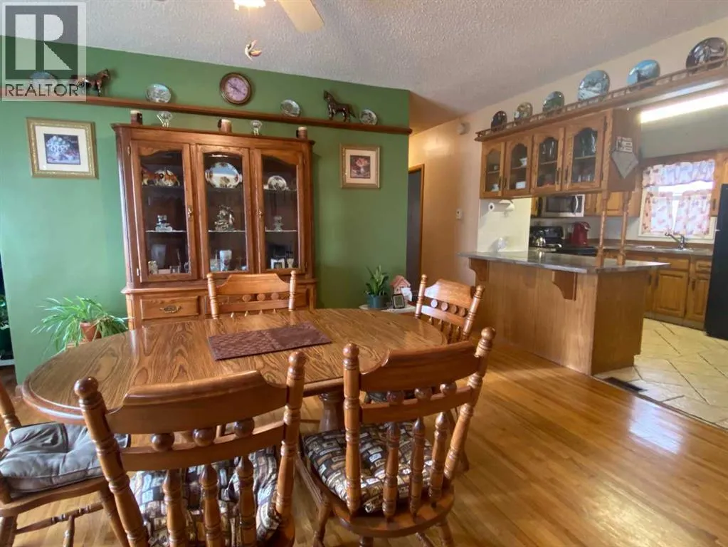 Welcome to this unique 1300 sq ft bungalow with a detached garage, nestled on 3.1 acres bordering the scenic Battle River, right in the heart of Ponoka! The main floor offers 4 bedrooms, 1 full bathroom, an oak kitchen, and a spacious dining/living room that showcases stunning views of the river. Beautiful hardwood floors accent the living area, with some newer windows adding to the homeâs charm and comfort. The basement features a large bedroom and a generous family/rec room, providing plenty of space to add one or two additional bedrooms if desired. Several basement walls have been newly drywalled and are at the mudding stageâready for your finishing touches. Thereâs also an abundance of storage throughout the home. The property is connected to town water and sewer services, while also offering its own wellâperfect for watering gardens and landscaping. Over the years, the owner has made significant improvements to the land, including clearing low brush and bringing in approximately 160 tandem loads of fill, creating a beautiful, elevated space for outdoor enjoyment. Nature lovers will appreciate the abundant wildlife, including deer, waterfowl, pelicans, herons, and even a resident eagle that frequently graces the property and river skies. This special property is full of potential and truly must be seen to be appreciated! (id:27476)